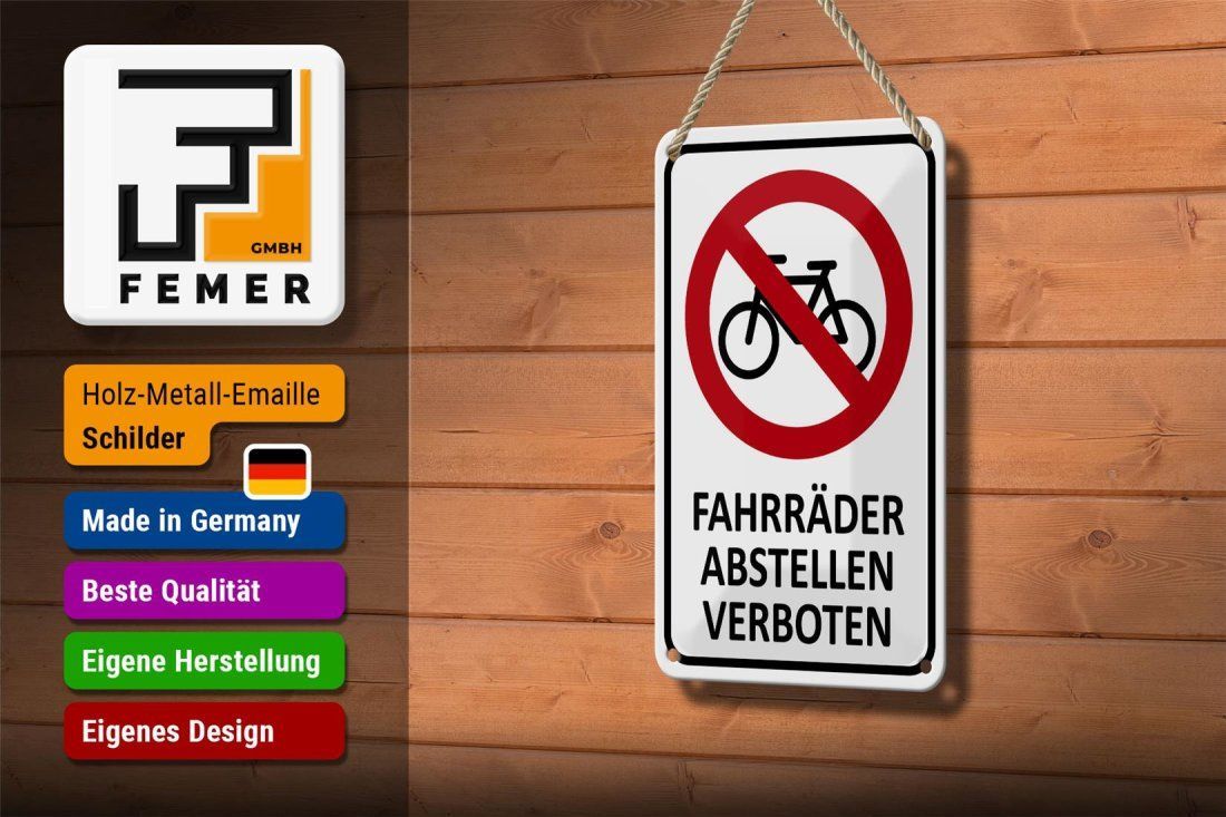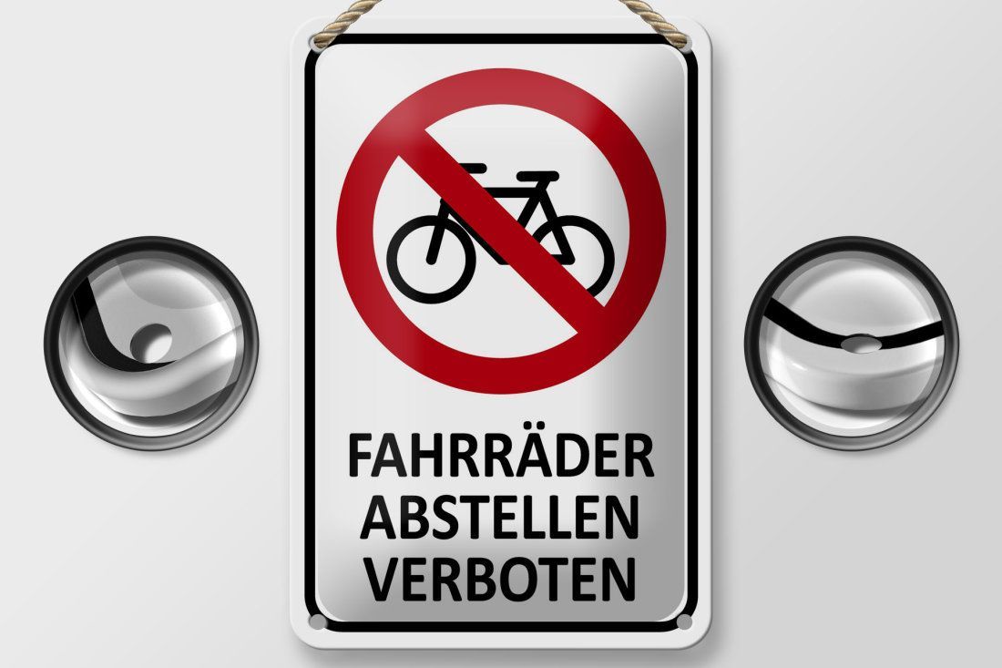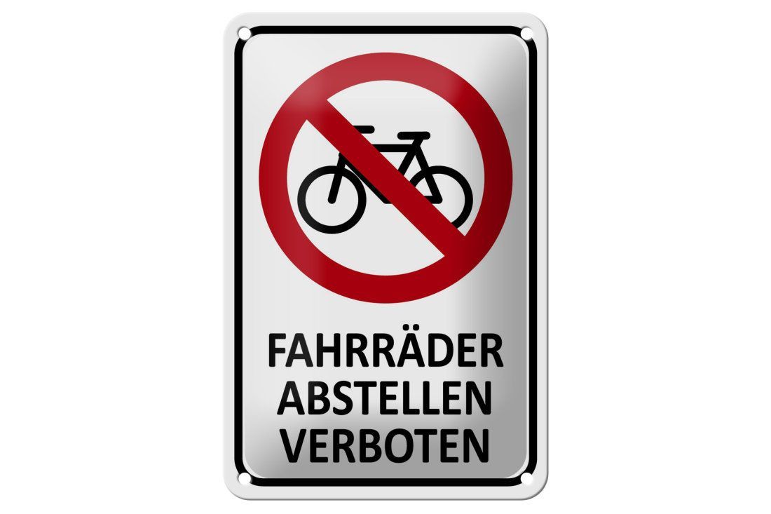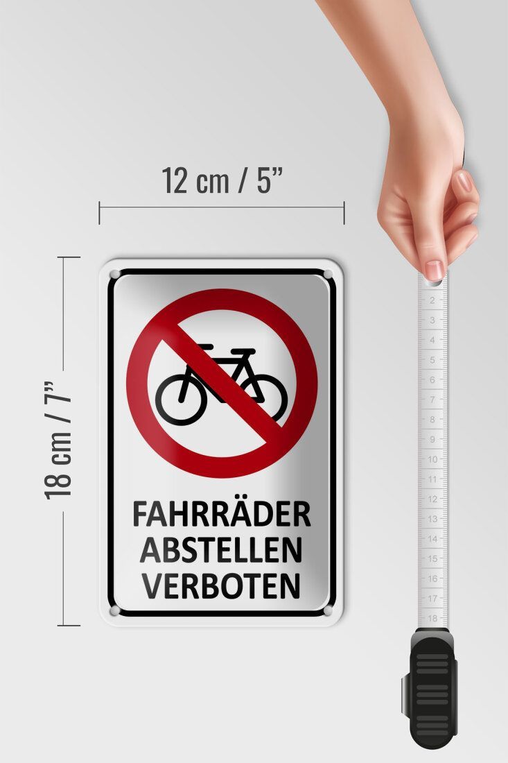Blechschild "Fahrräder abstellen verboten" Verbotsmotiv 12x18 cm weiß rot gewölbt