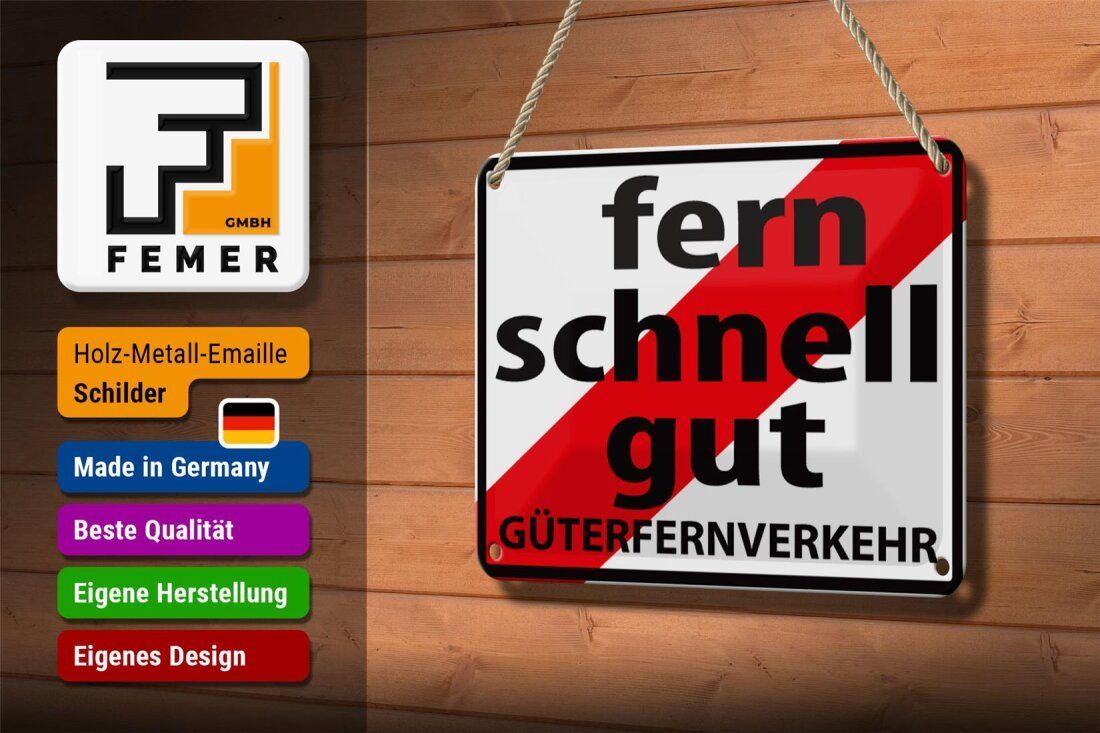 Blechschild Fern Schnell Gut Güterfernverkehr 18x12cm Industrie-Design gewölbt