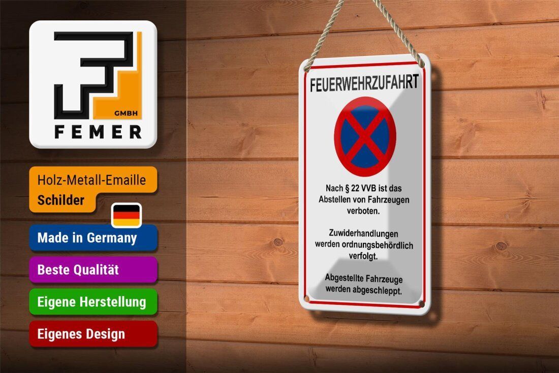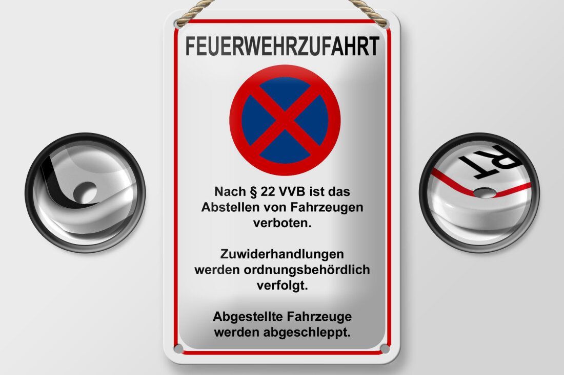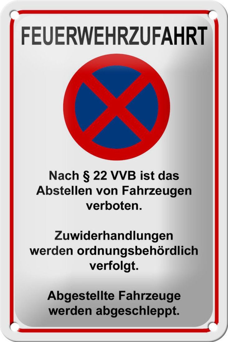 Blechschild Feuerwehrzufahrt Abstellen von Fahrzeugen nach §22VVB verboten 12x18 cm