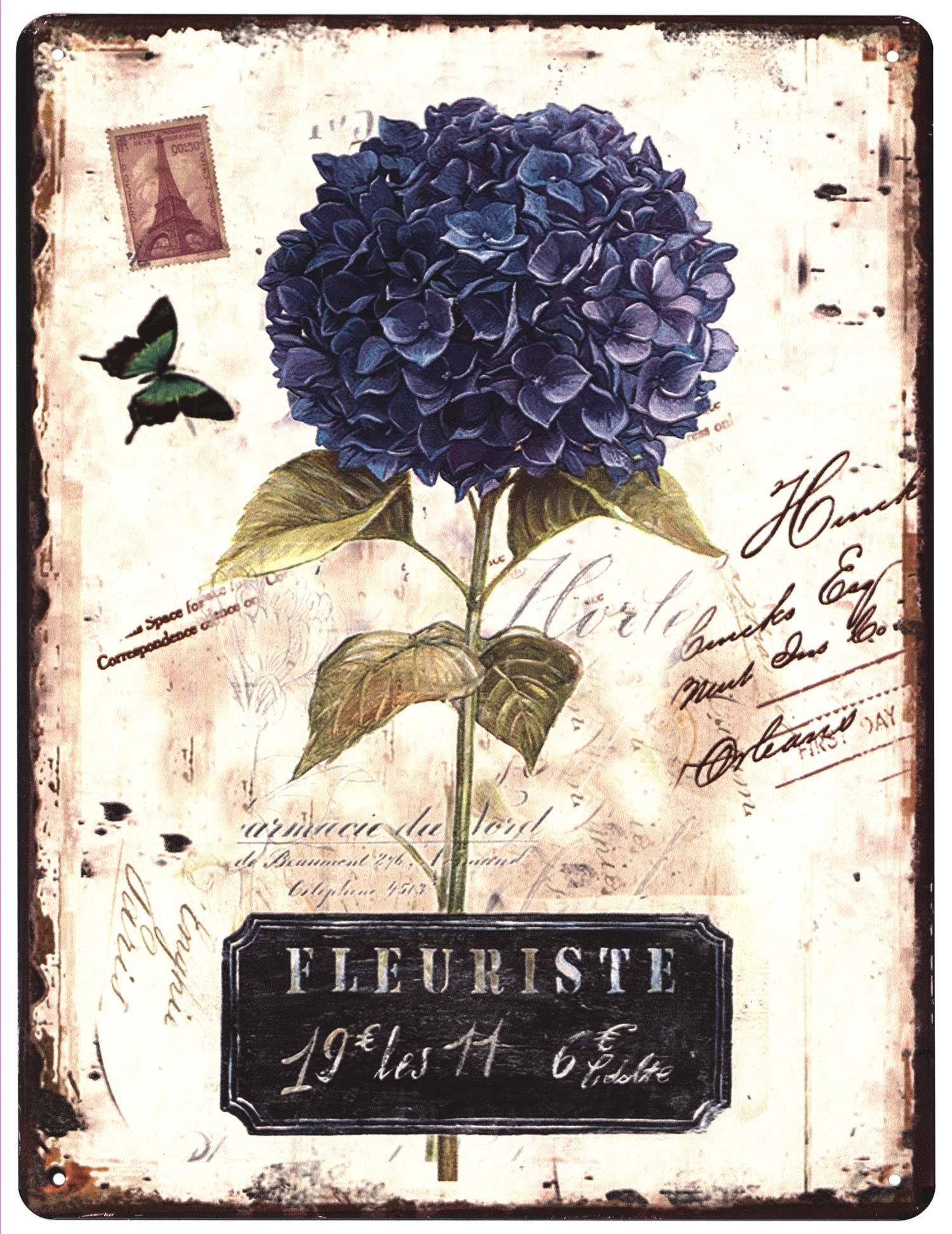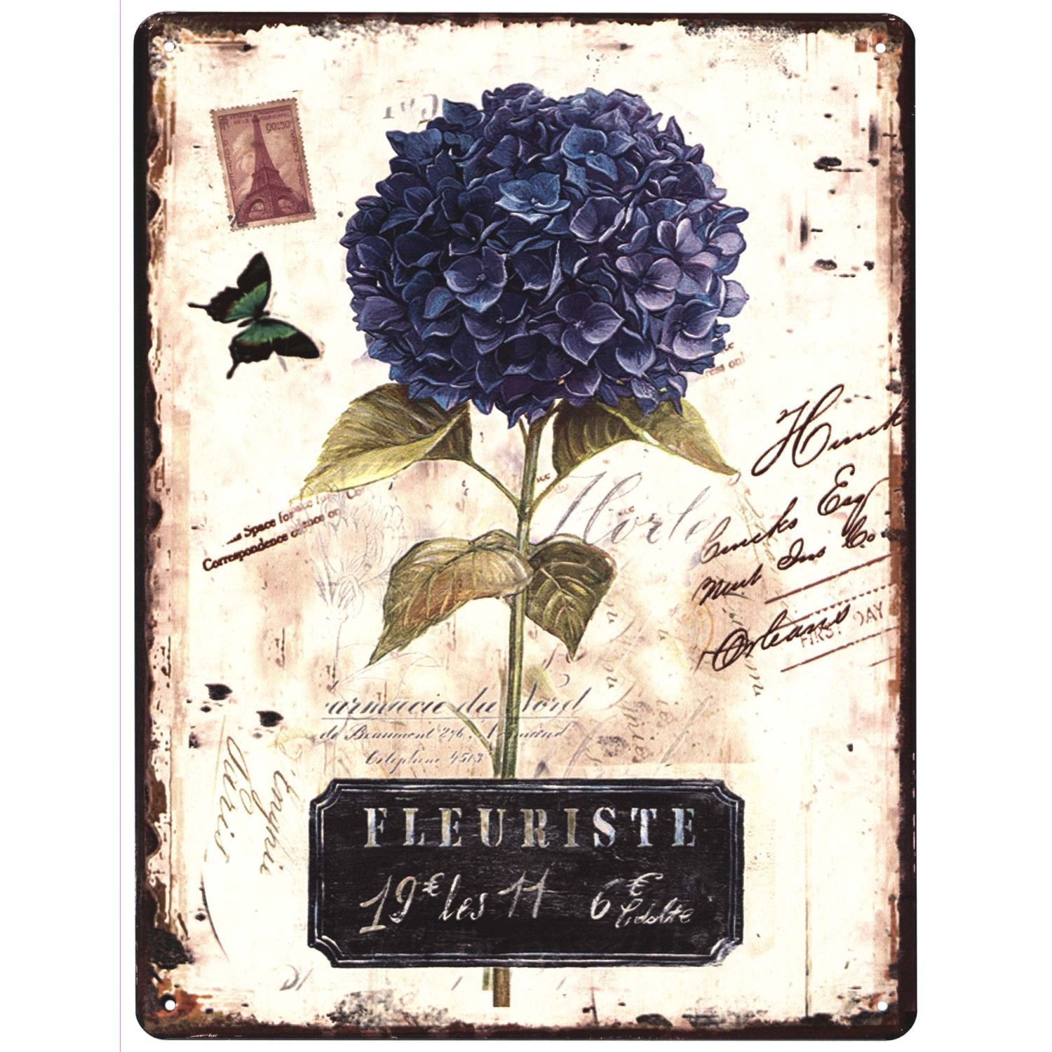 Blechschild Fleuriste Lila Blume Deko Schild Aufschrift Dekoration Druck 25 x 33