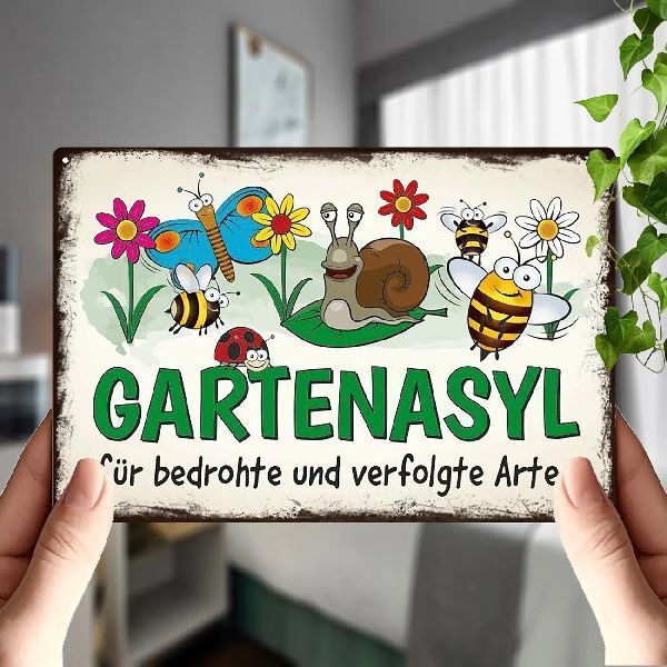 Blechschild Garten Asyl für bedrohte Arten Nostalgie Vintage Metallschild TE2530