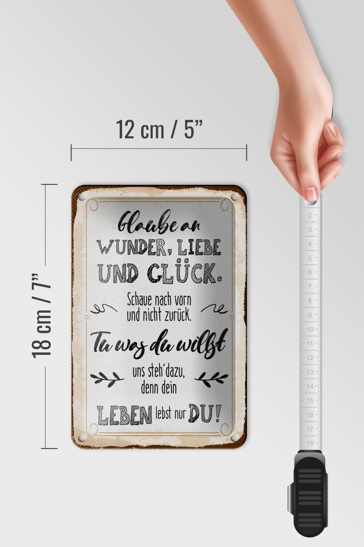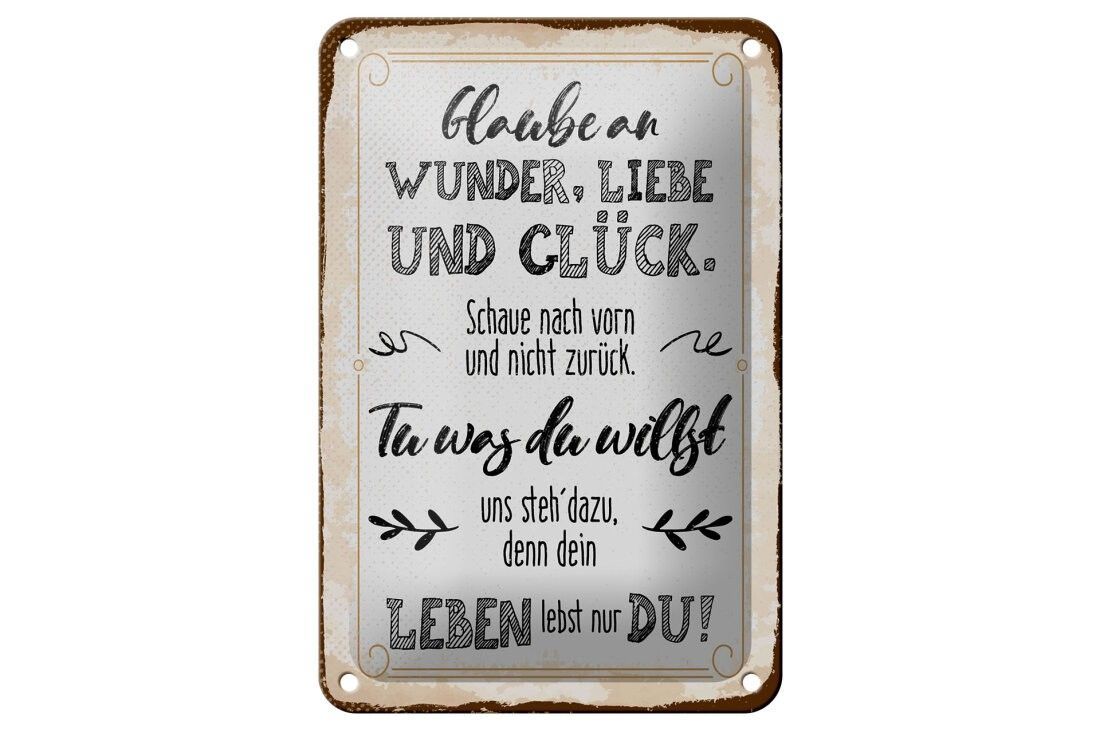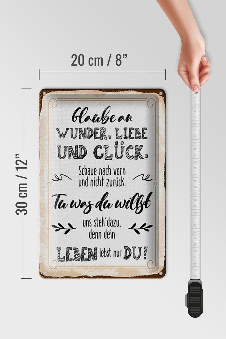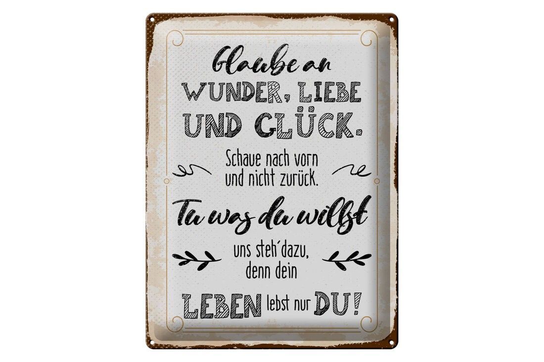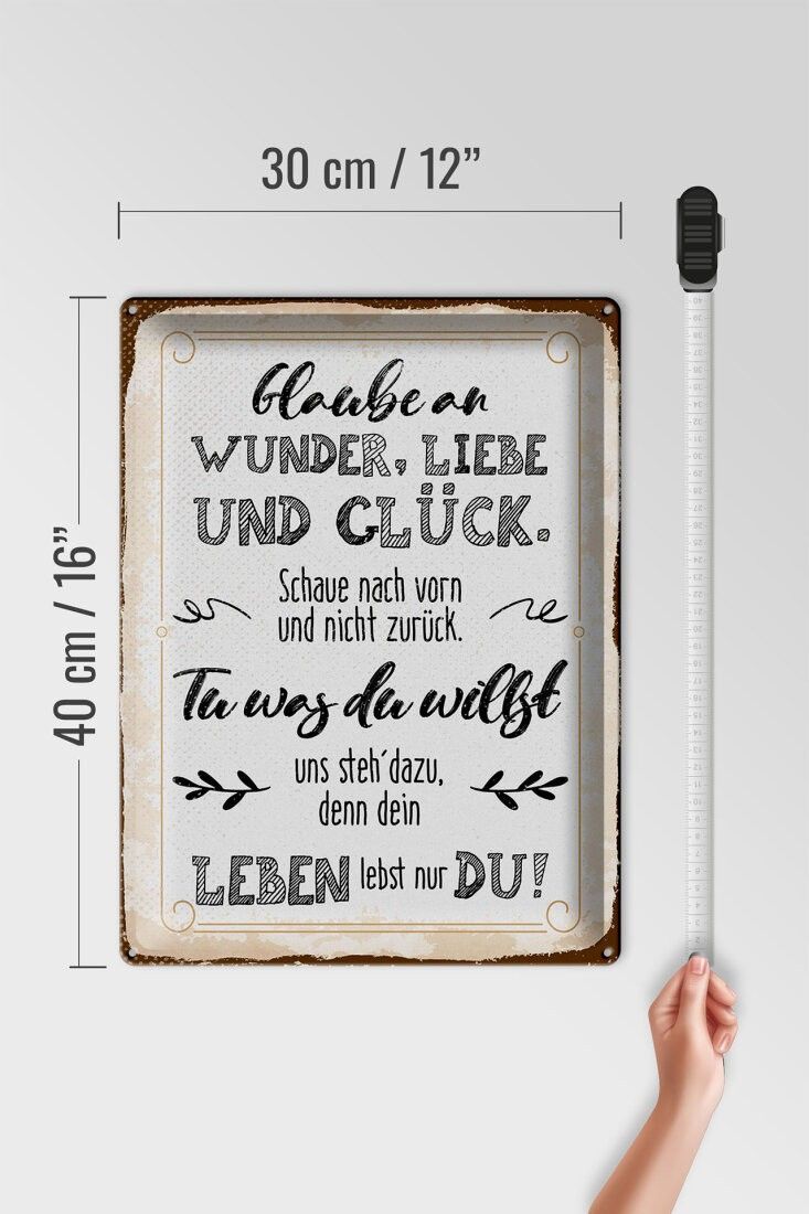 Blechschild Glaube an Wunder, Liebe und Glück, 3 vers. Größen, Spruch