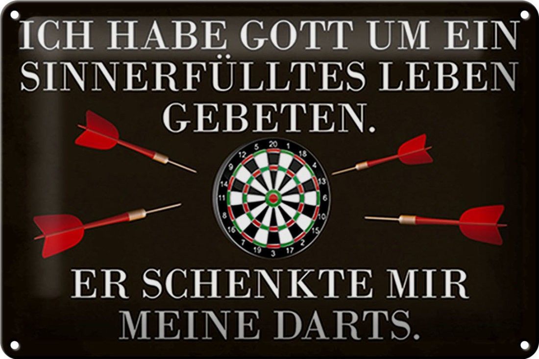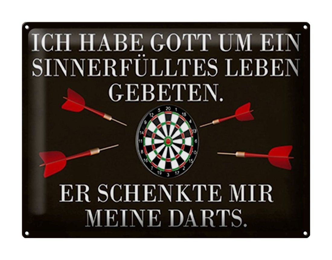 Blechschild Gott schenkte mir meine Darts, 3 vers Größen, Spruch Hobby Sport