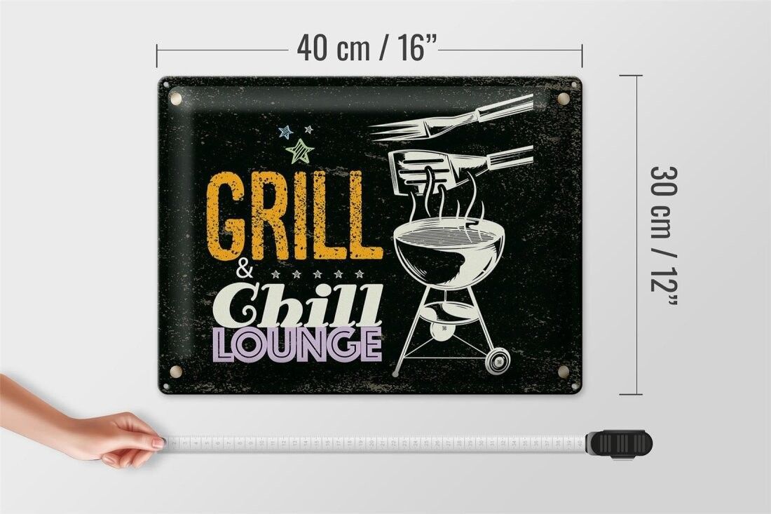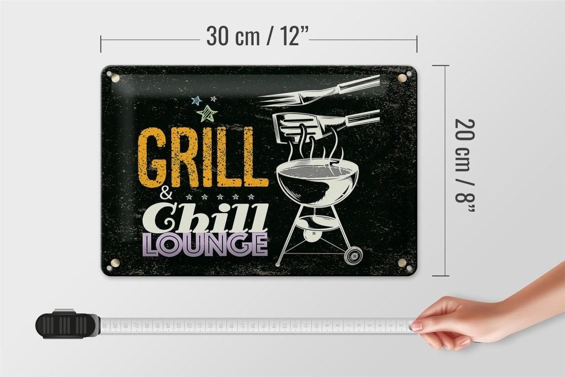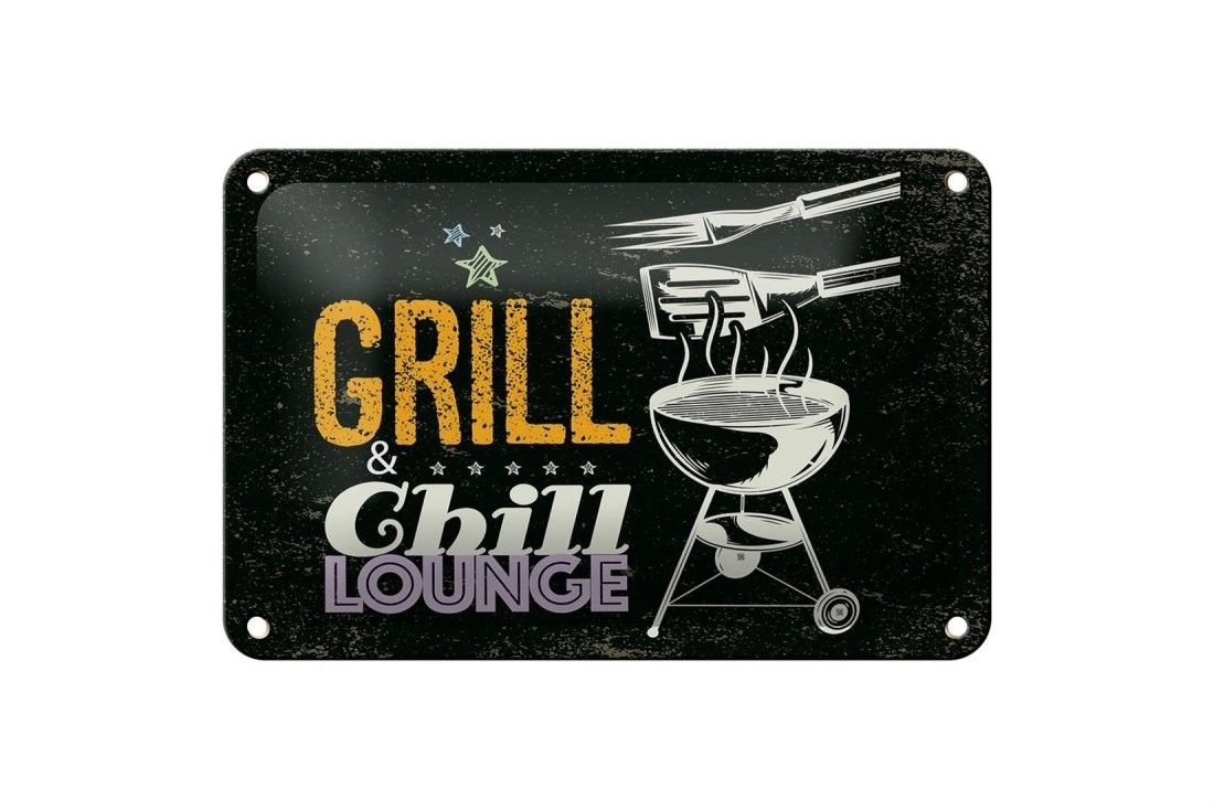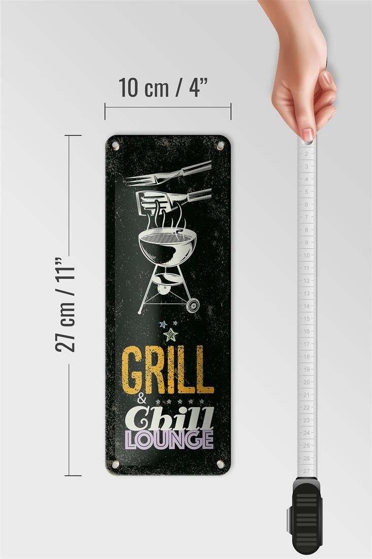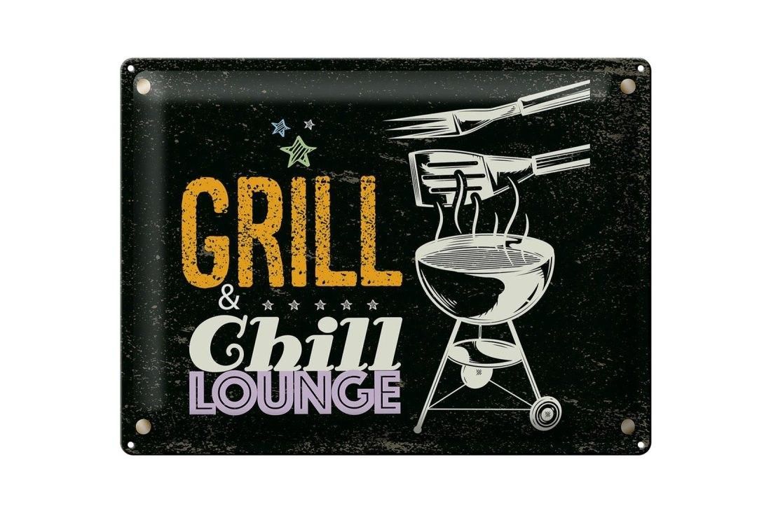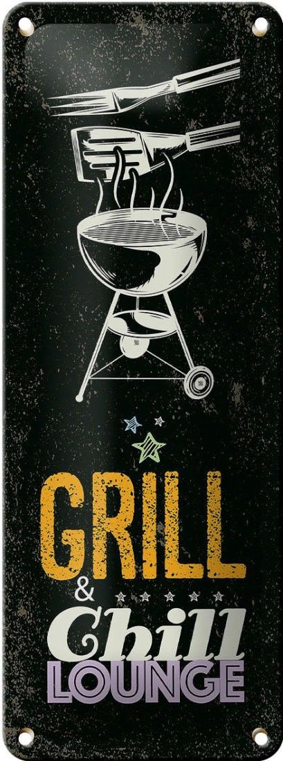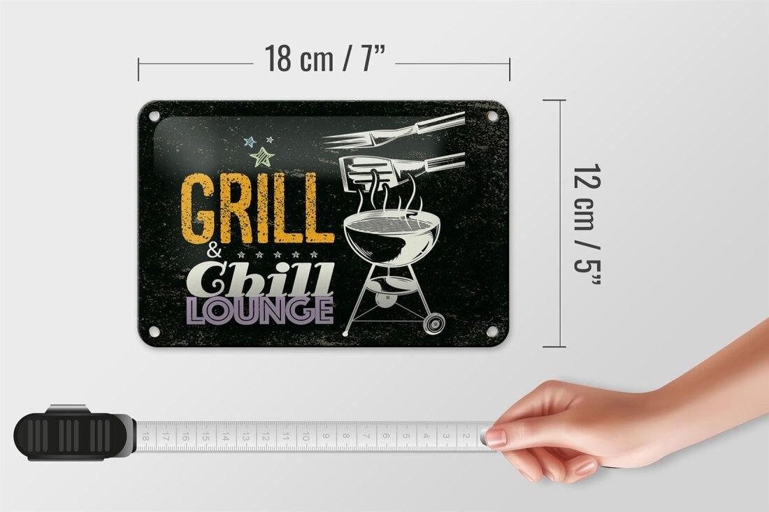 Blechschild Grill & Chill Fleisch Grillen, 4 verschied Größen, Blechschilder