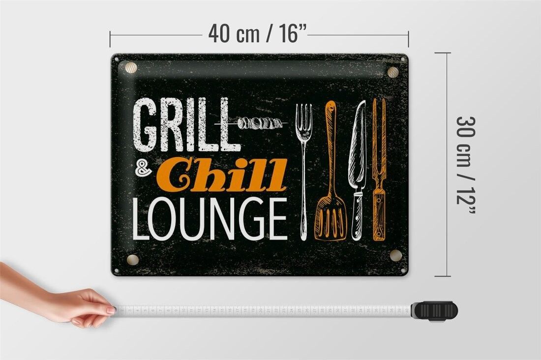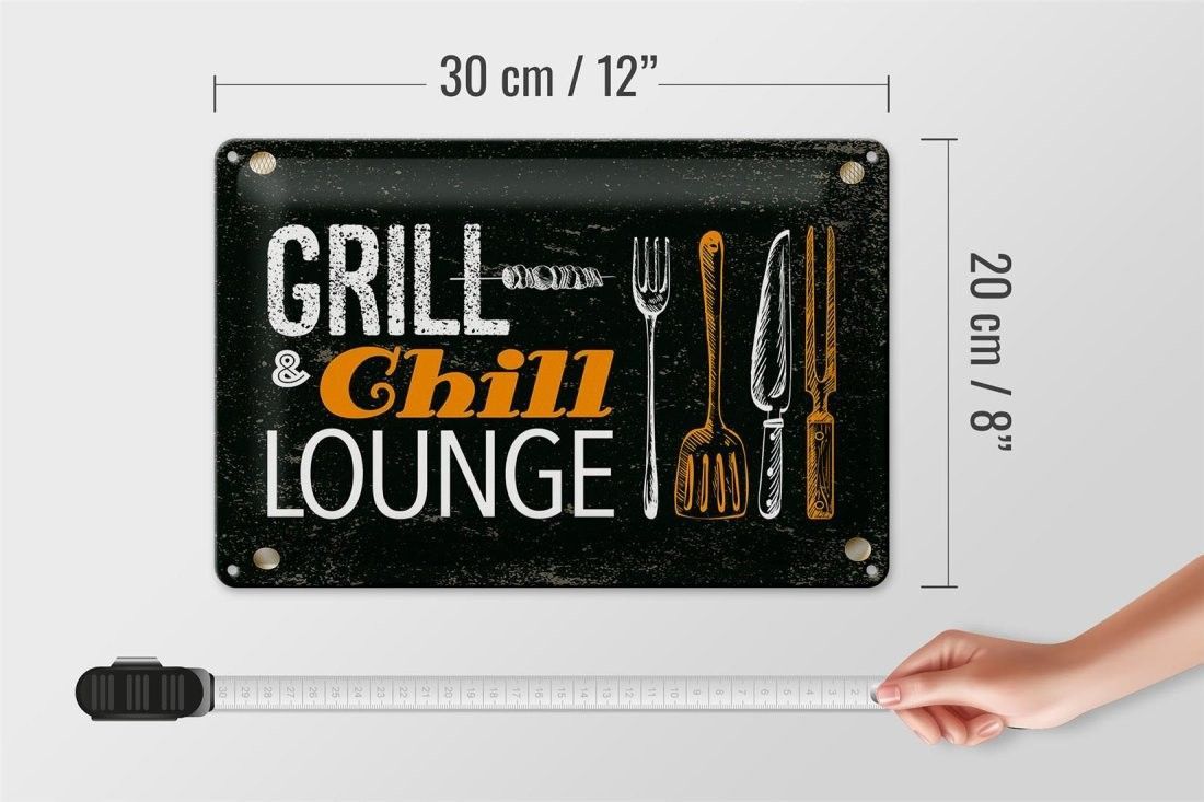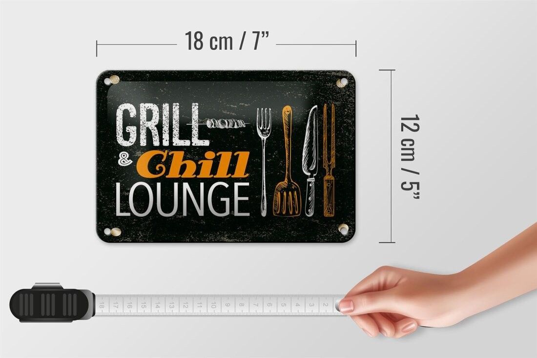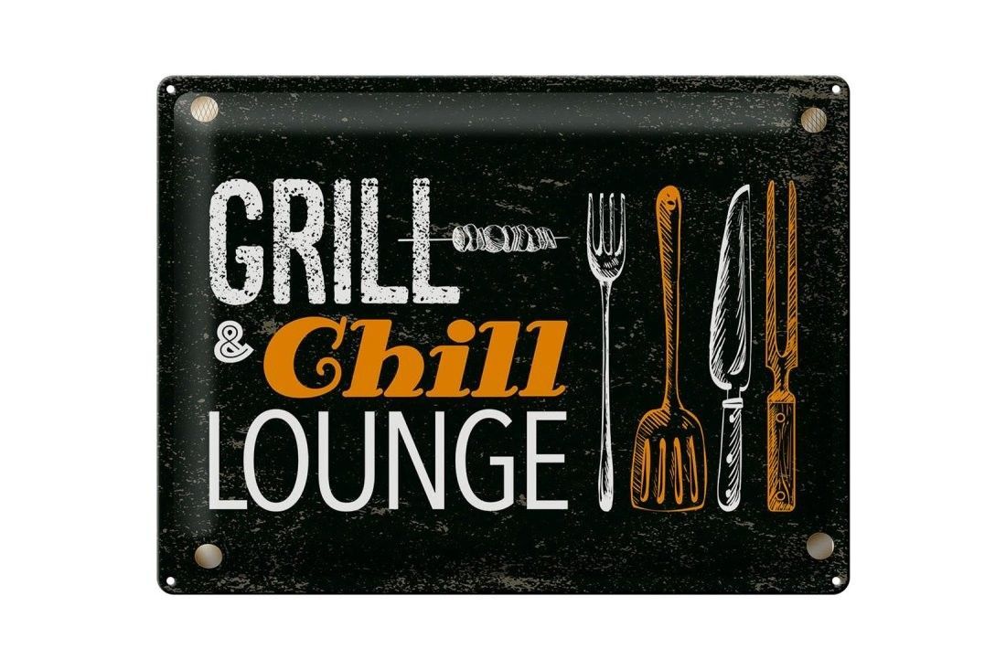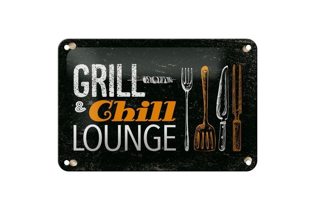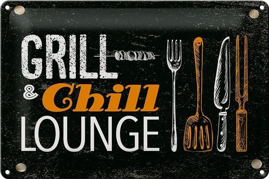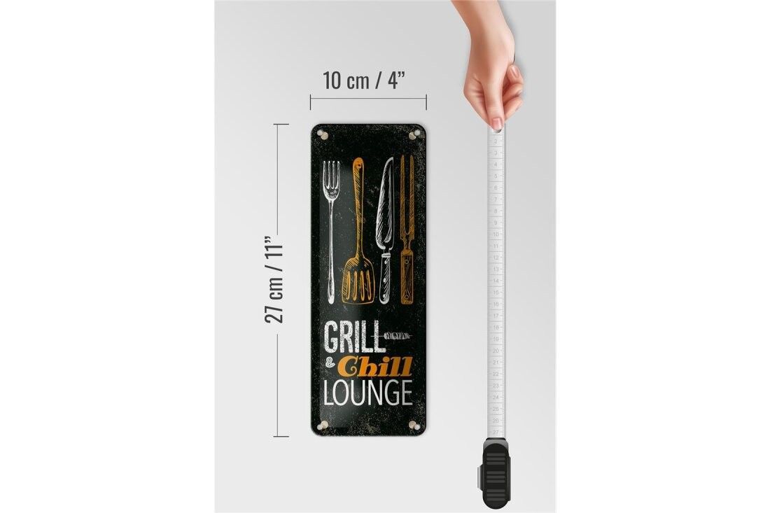Blechschild Grill & Chill Fleisch Grillen, 4 verschied Größen, Blechschilder