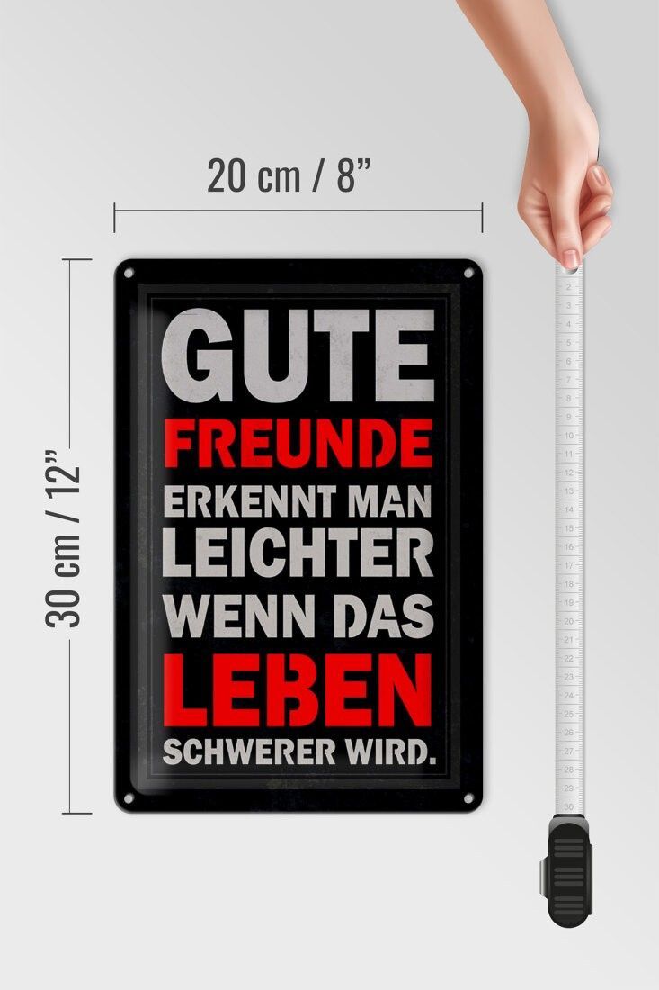 Blechschild gute Freunde erkennt man, 3 verschied. Größen, Deko Spruch