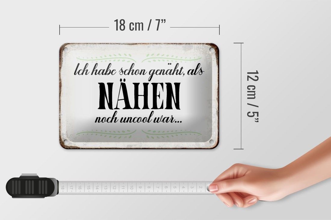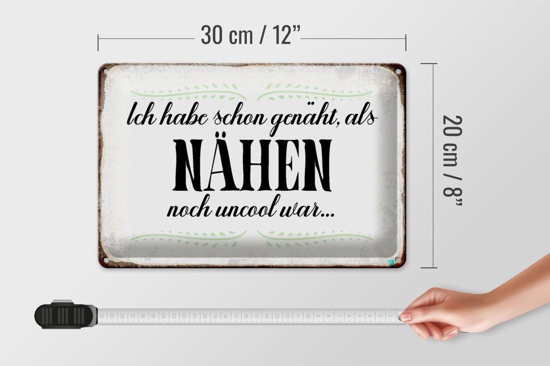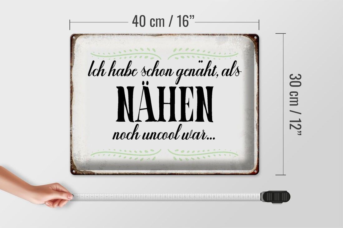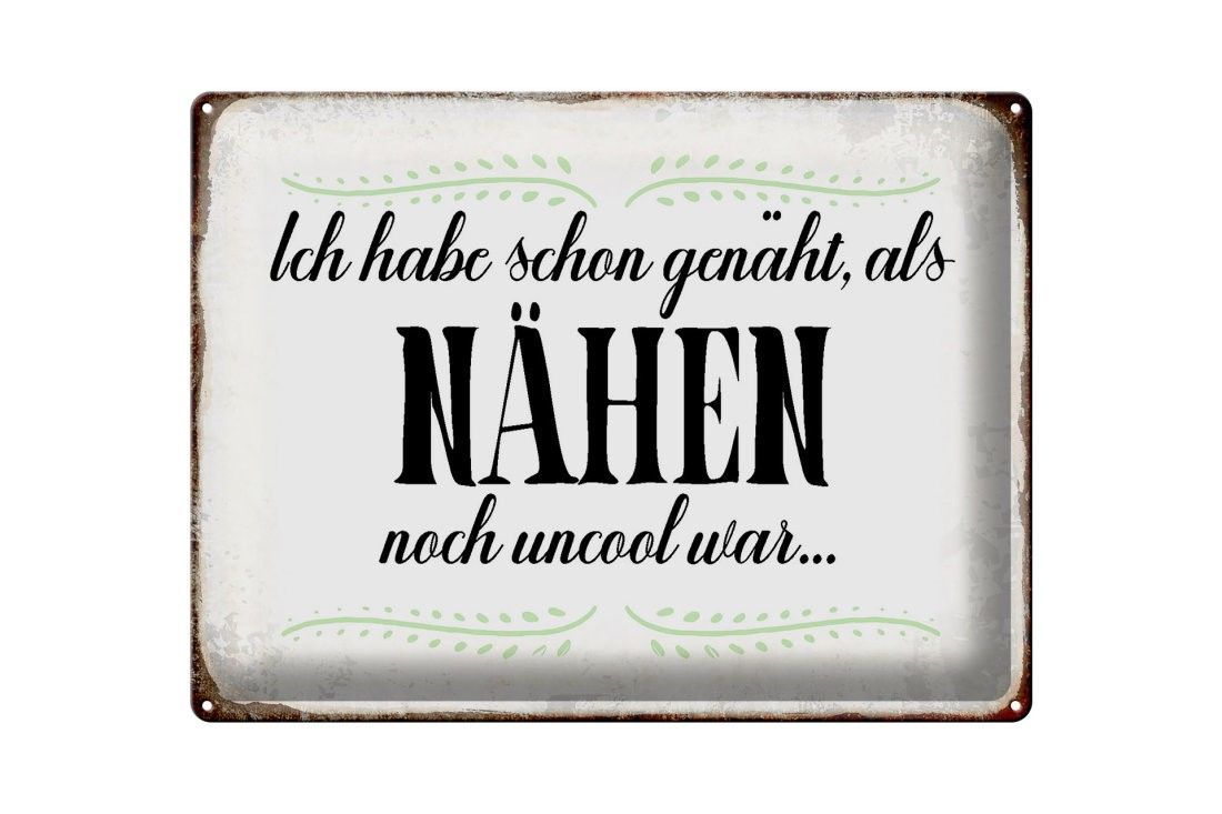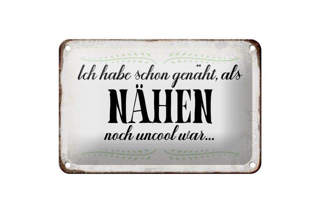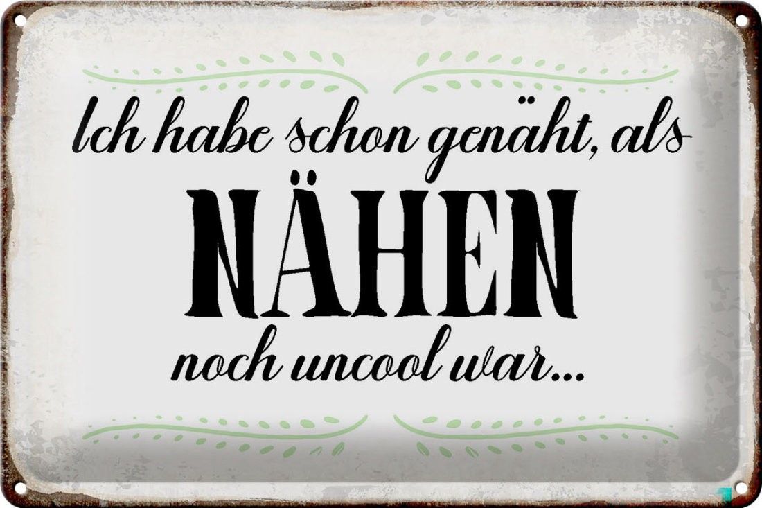 Blechschild habe schon genäht als Nähen noch, 3 verschied Größen, Spruch Hobby