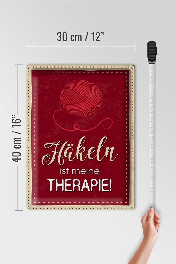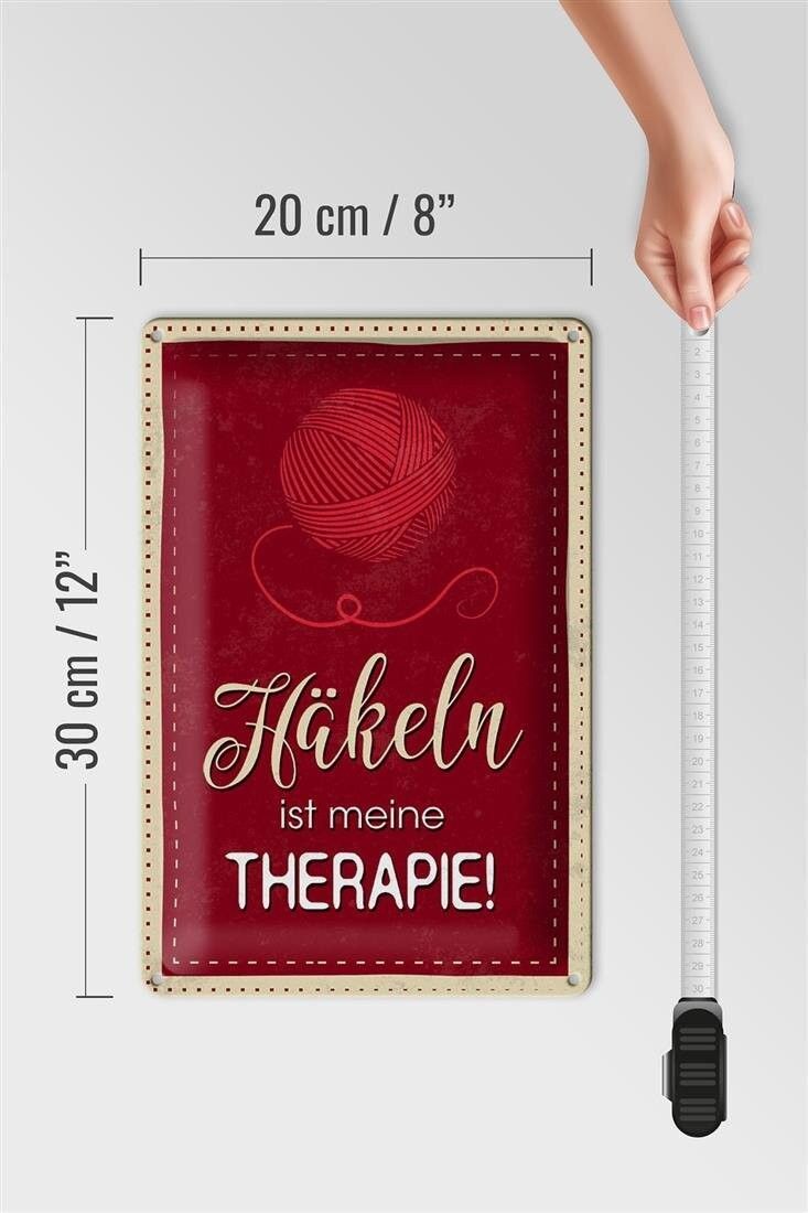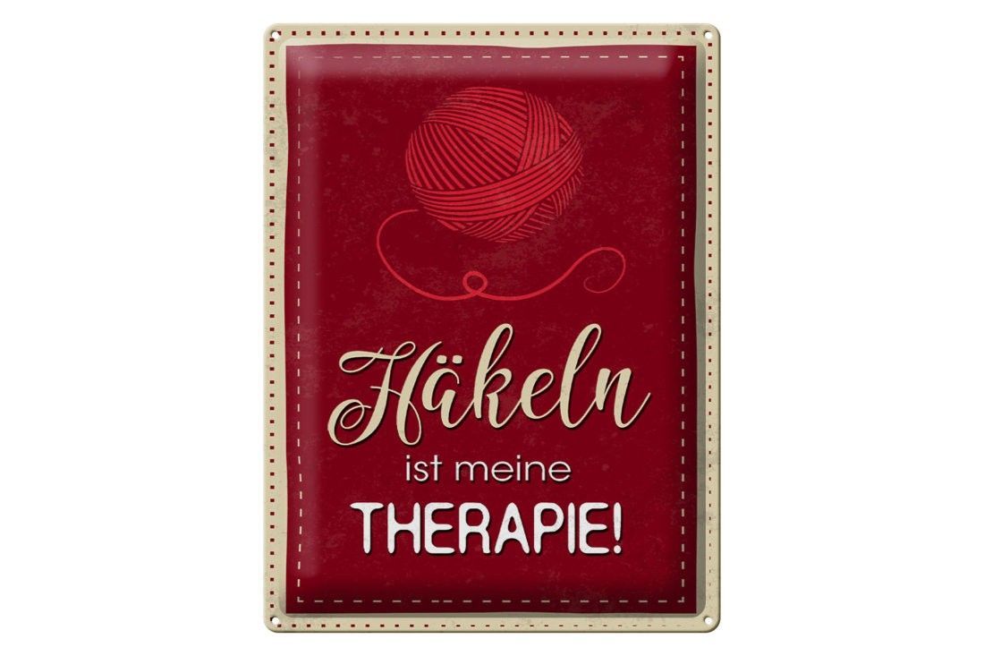 Blechschild Häkeln ist meine Therapie, 3 verschied Größen, Spruch Hobby