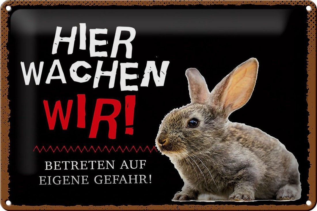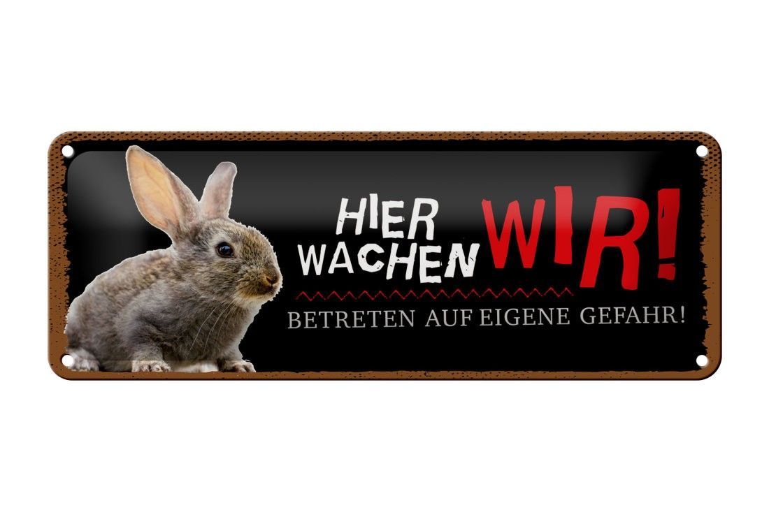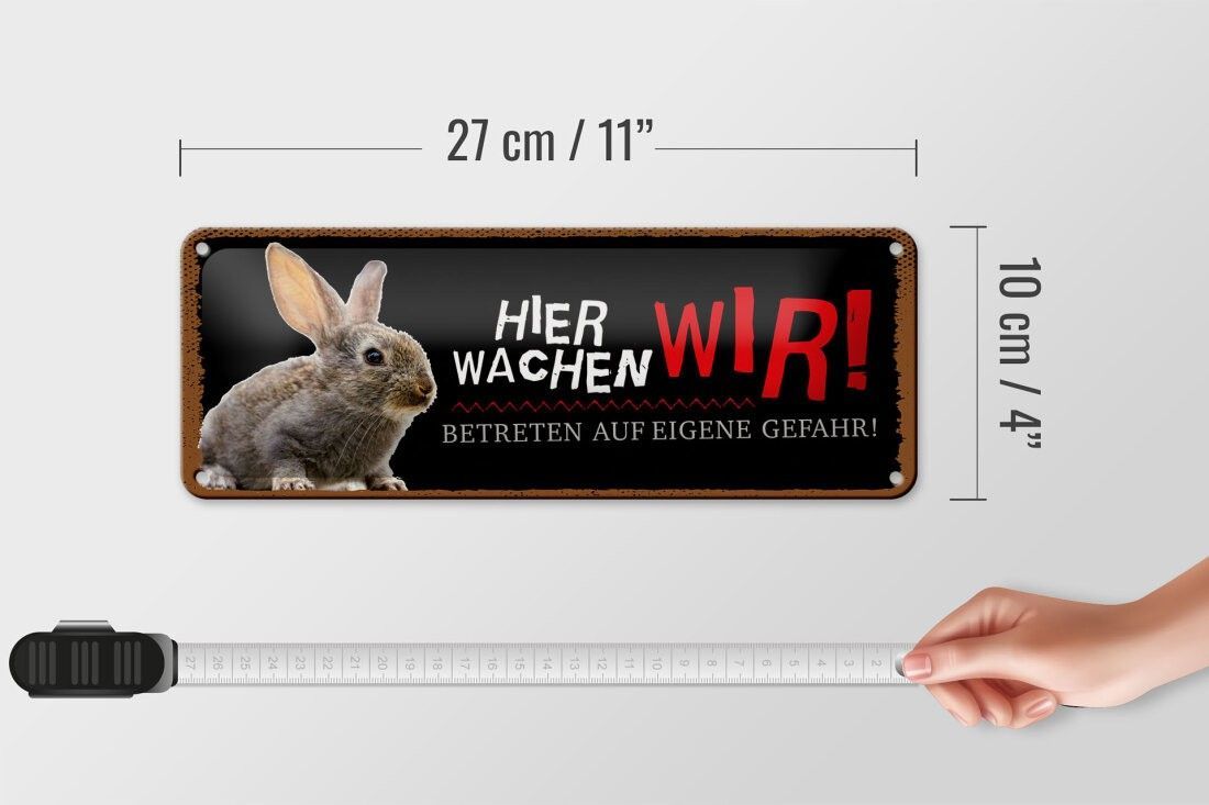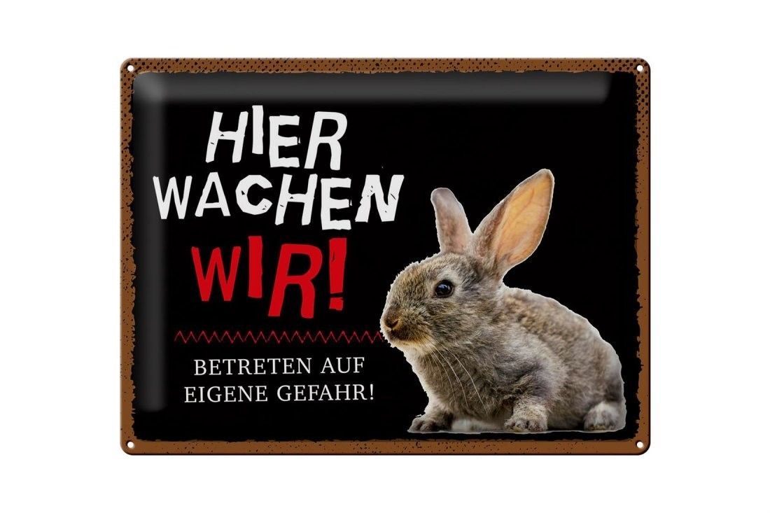 Blechschild Hase hier wachen wir, 4 verschied Größen, Blechschilder Spruch Hasen