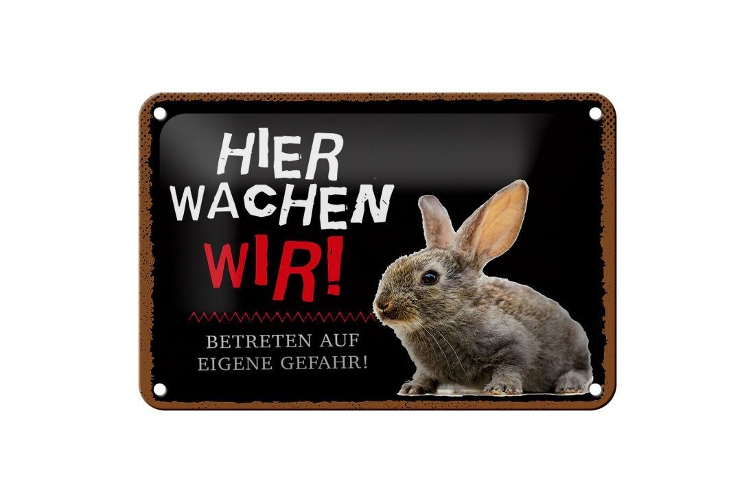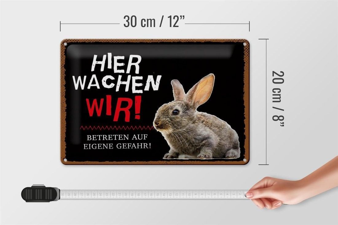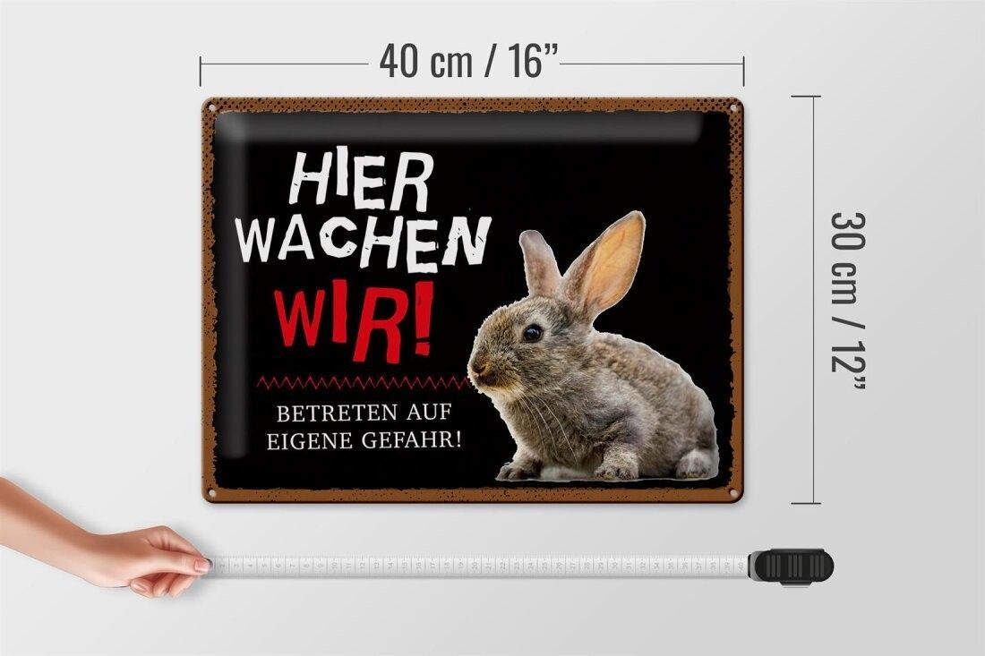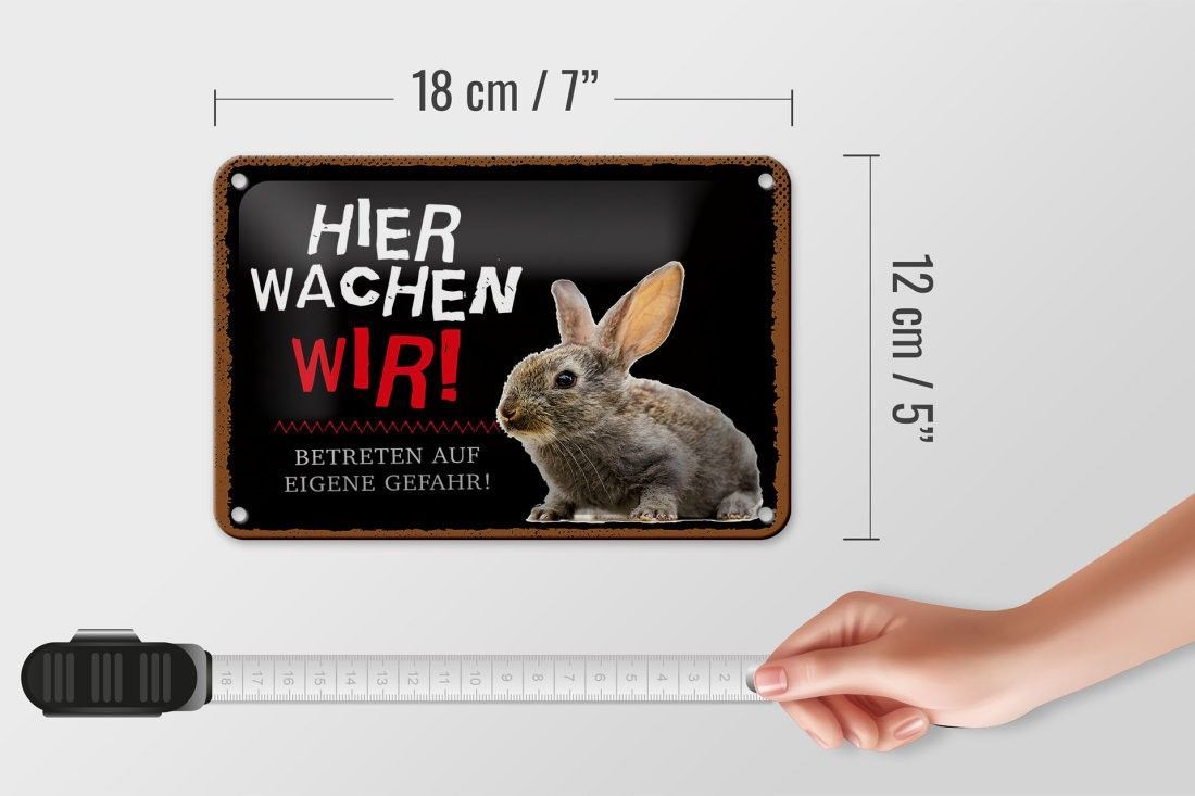 Blechschild Hase hier wachen wir, 4 verschied Größen, Blechschilder Spruch Hasen