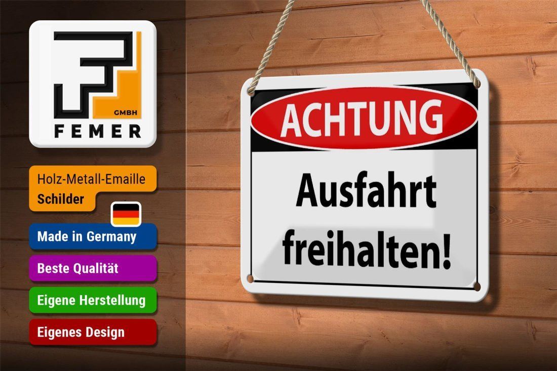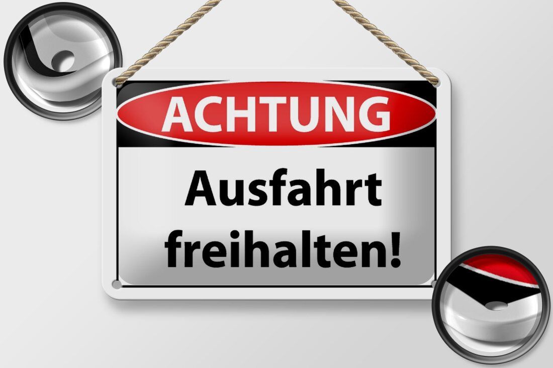 Blechschild Hinweis "Achtung Ausfahrt freihalten!" 12x18cm weiß schwarz rot gewölbt