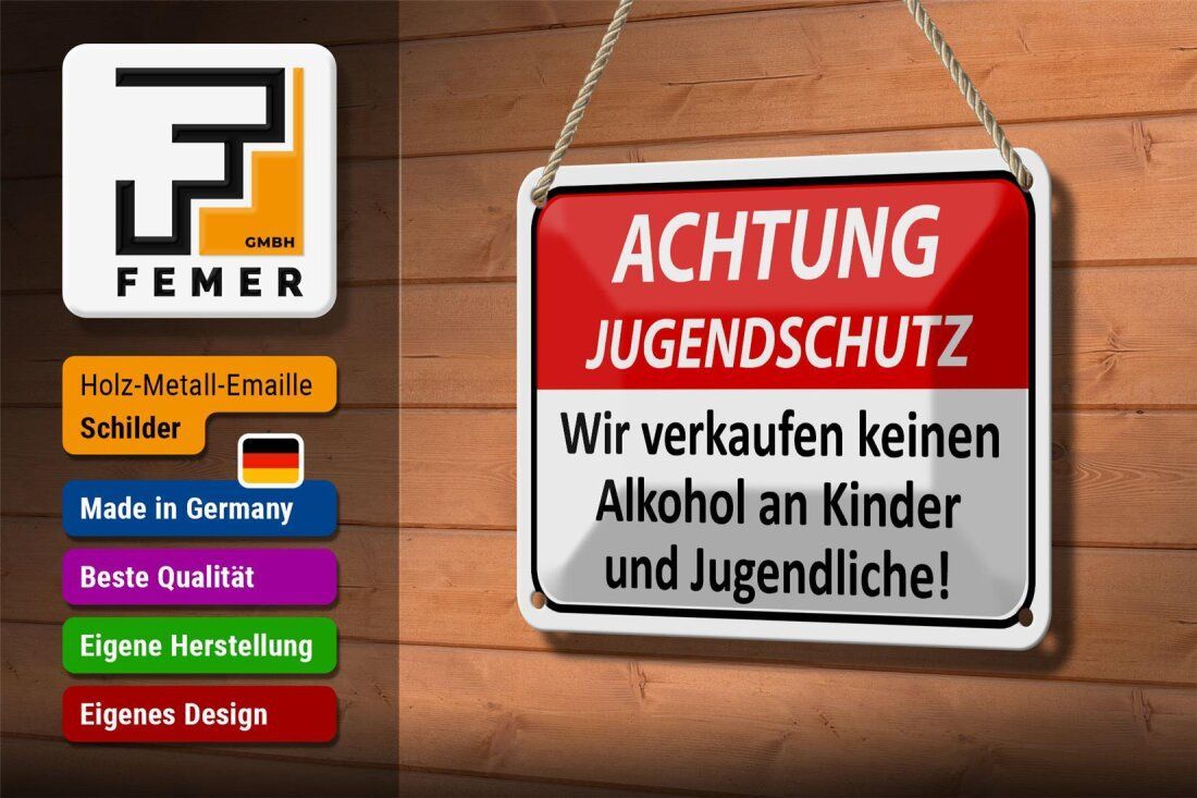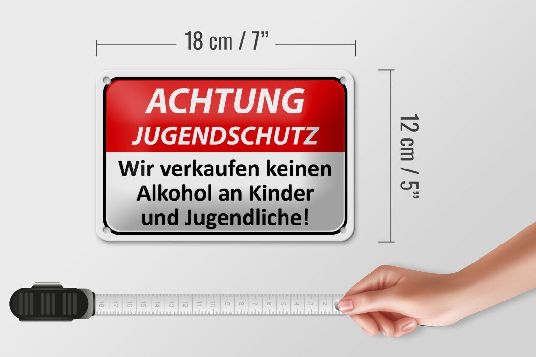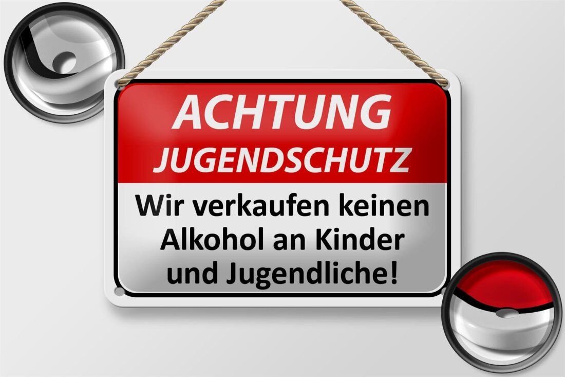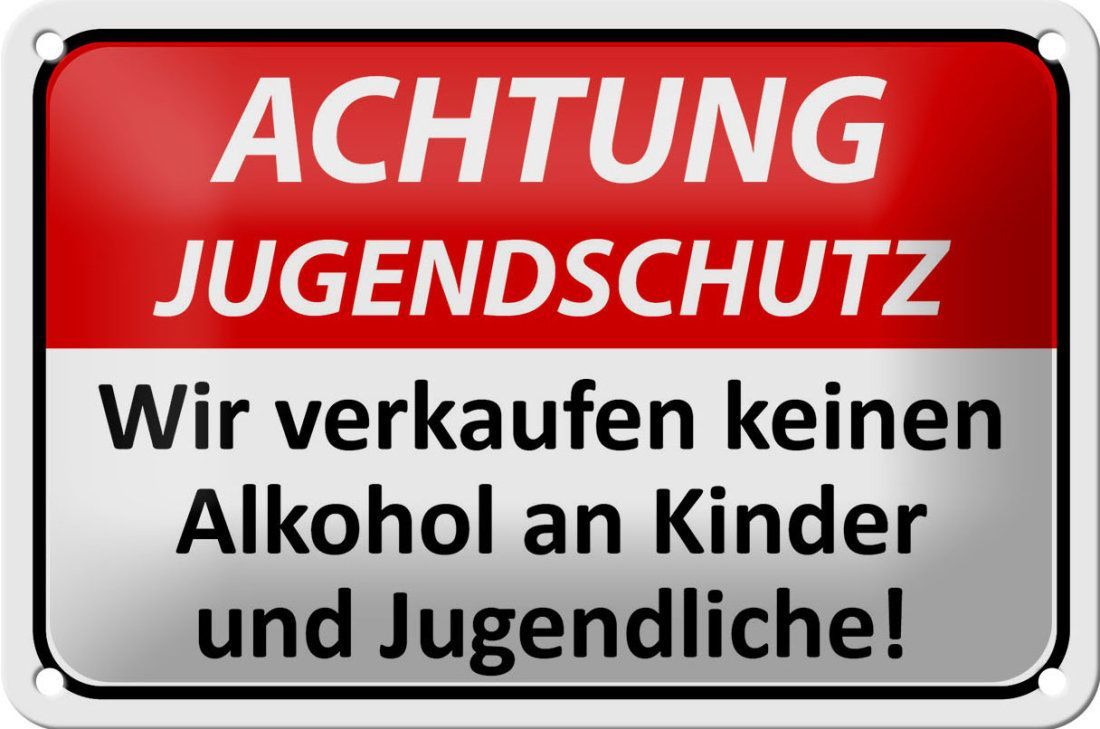 Blechschild Hinweis Achtung Jugendschutz kein Alkohol 18x12cm rot weiß gewölbt