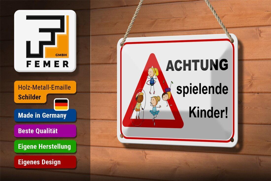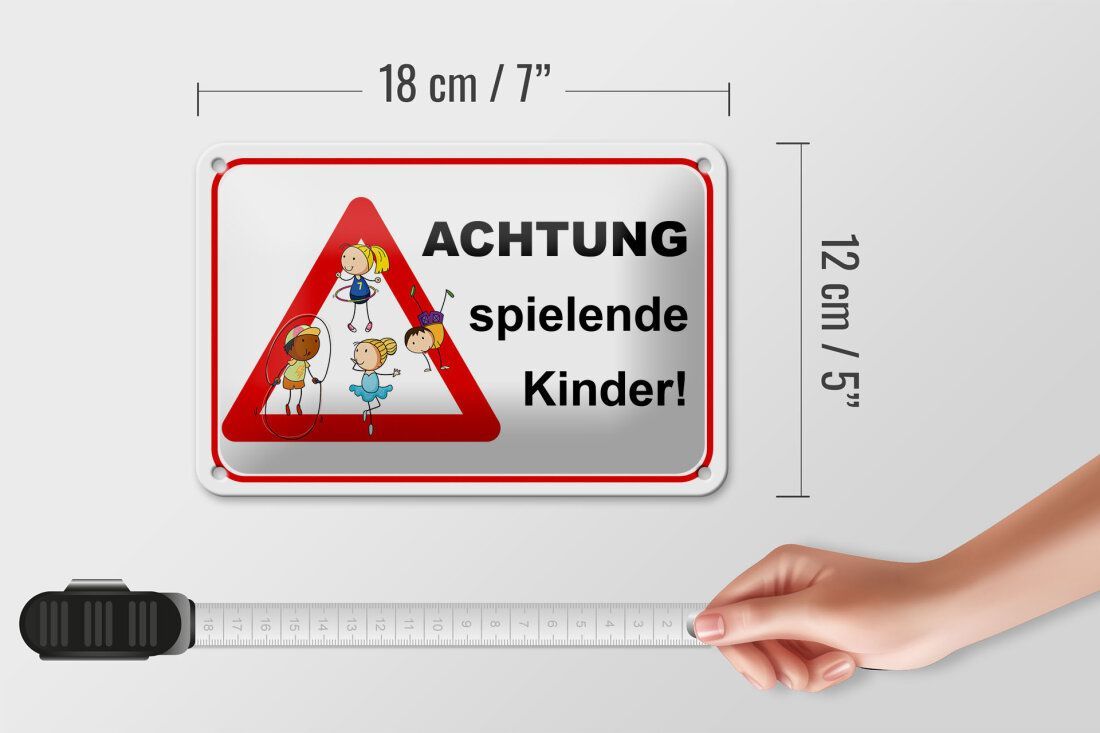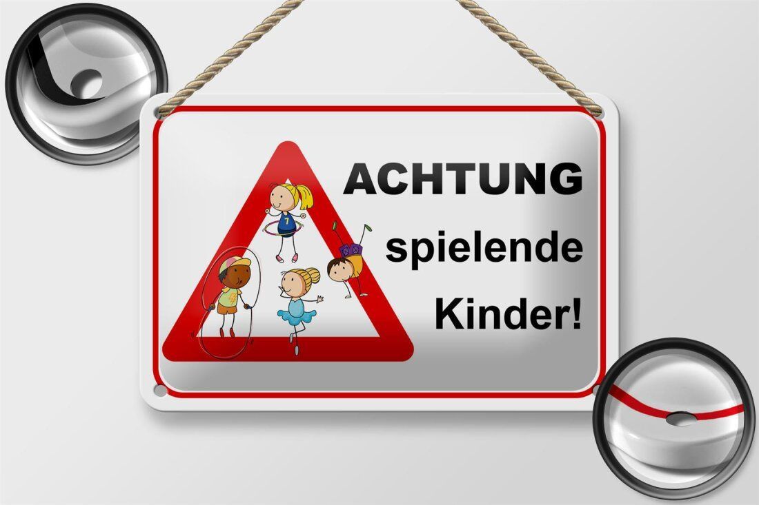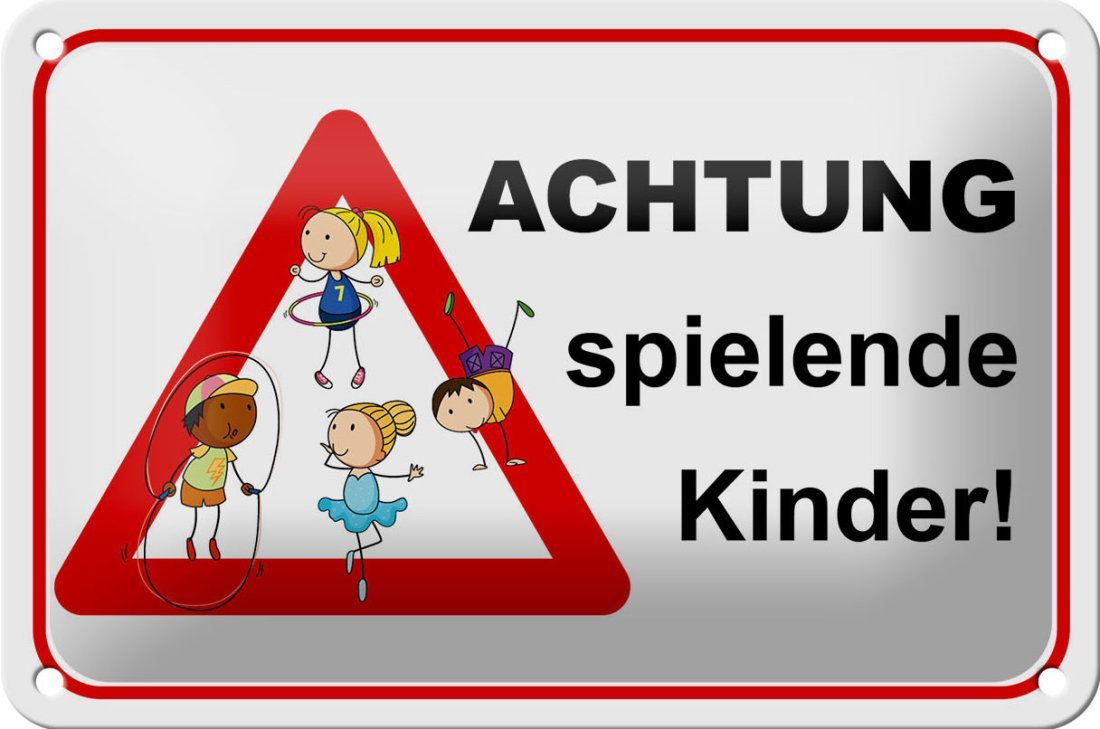 Blechschild Hinweis "Achtung spielende Kinder!" 18x12cm weiß rot gewölbt