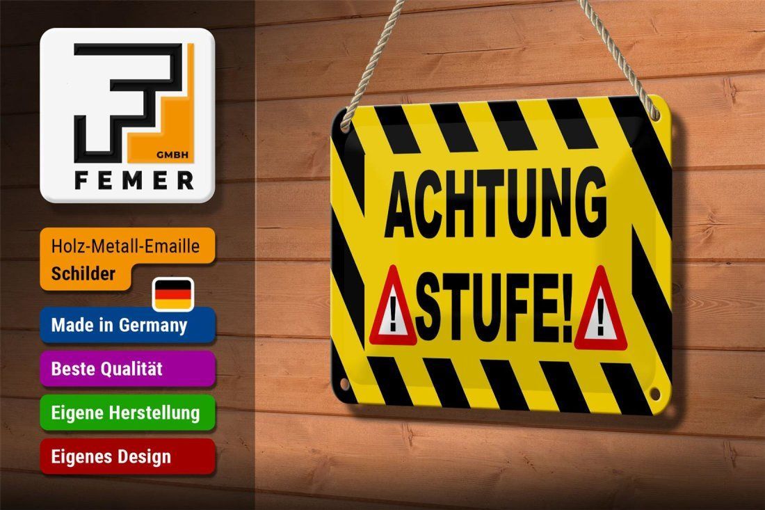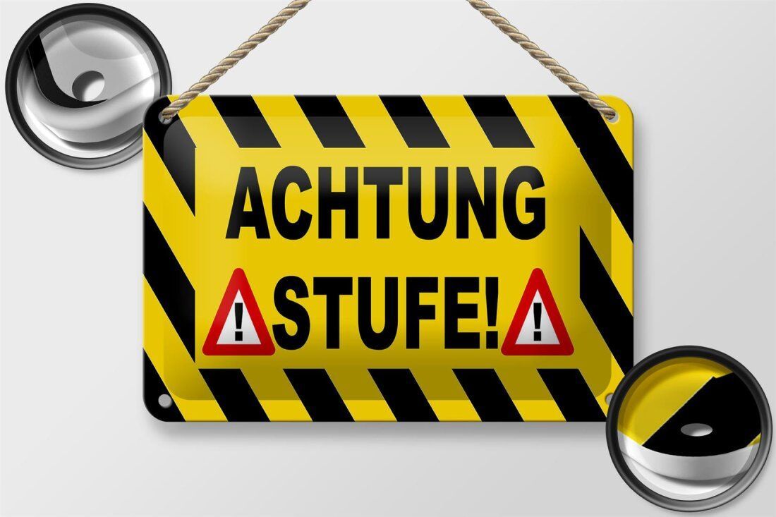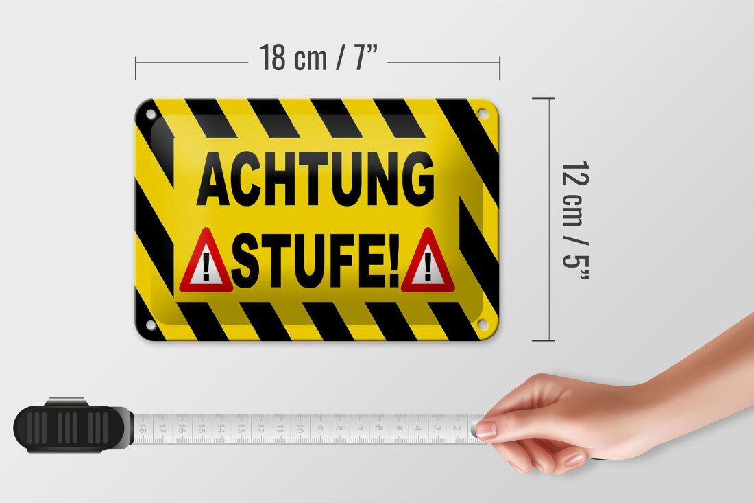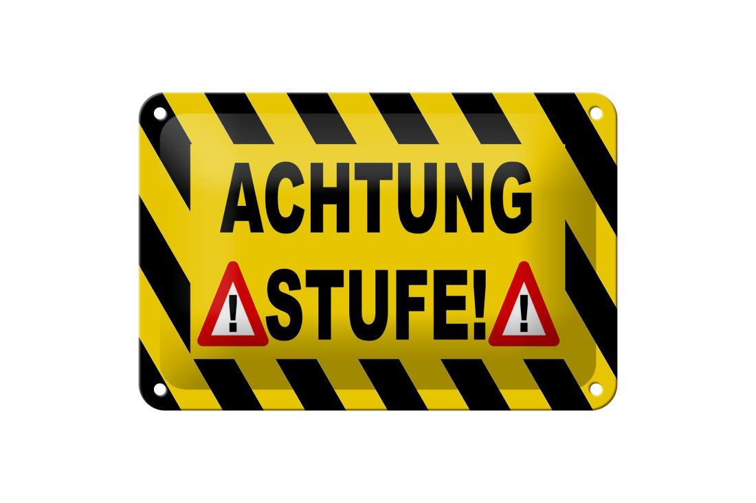 Blechschild Hinweis "Achtung Stufe!" 18x12cm gelb schwarz gewölbt