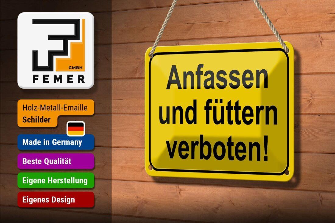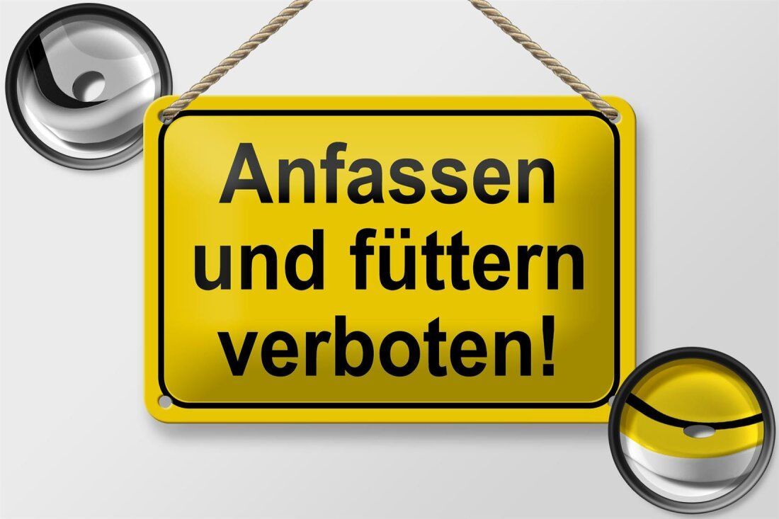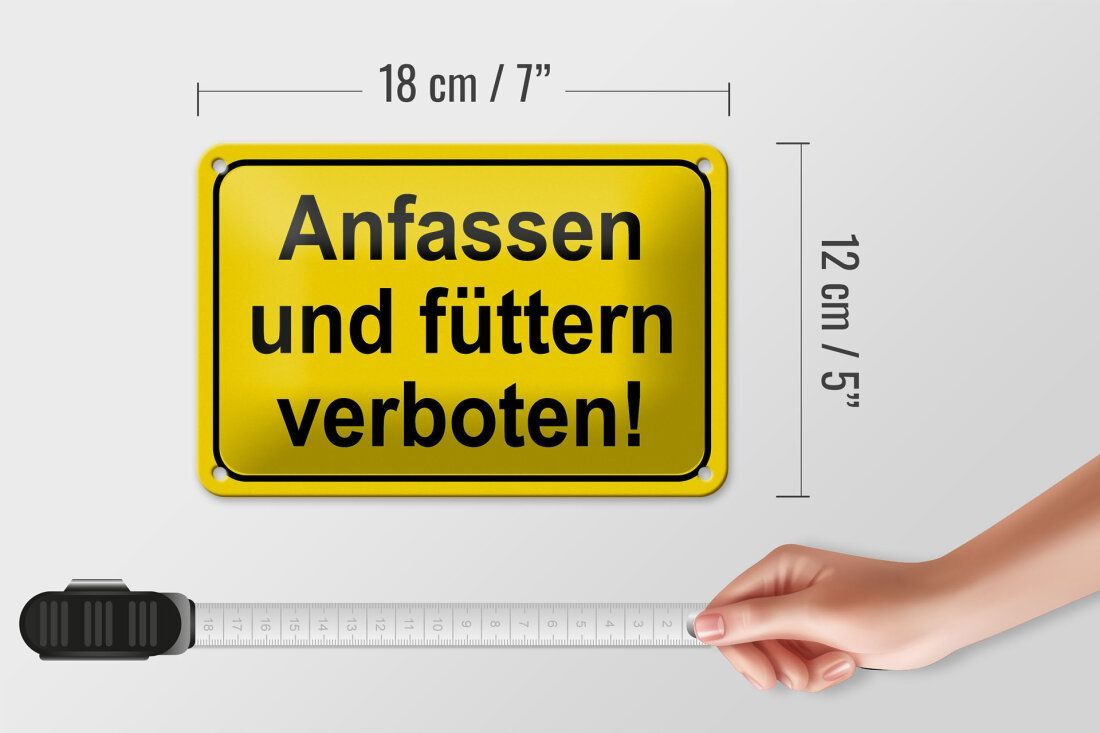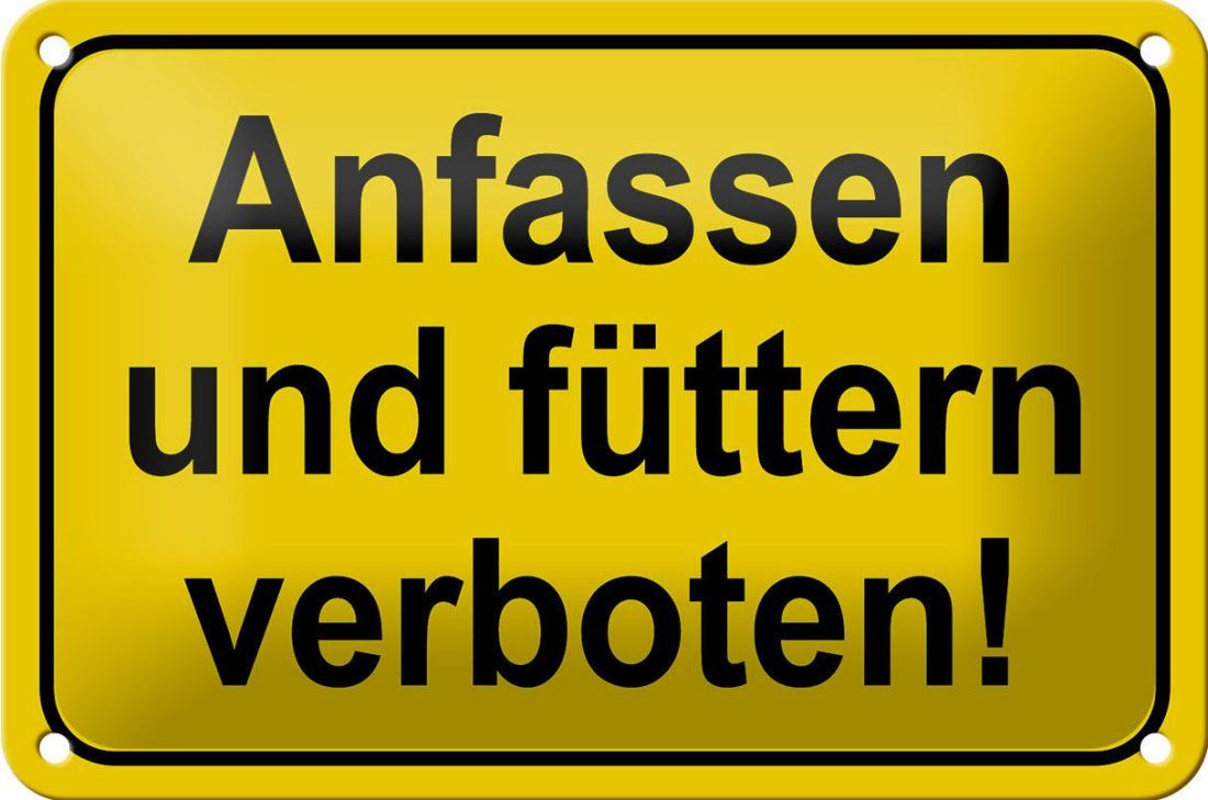Blechschild Hinweis "Anfassen und füttern verboten!" 18x12cm gelb schwarz gewölbt