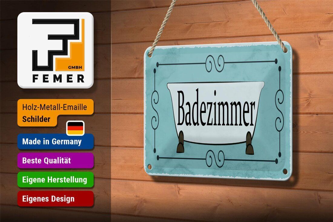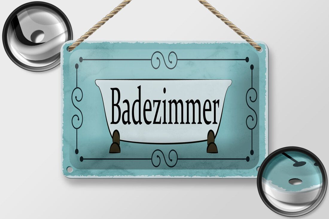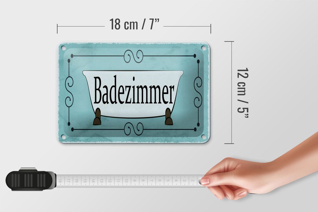 Blechschild Hinweis "Badezimmer" 18x12cm Dekoration türkis gewölbt