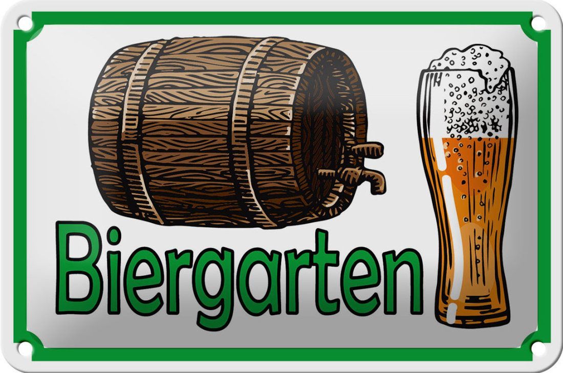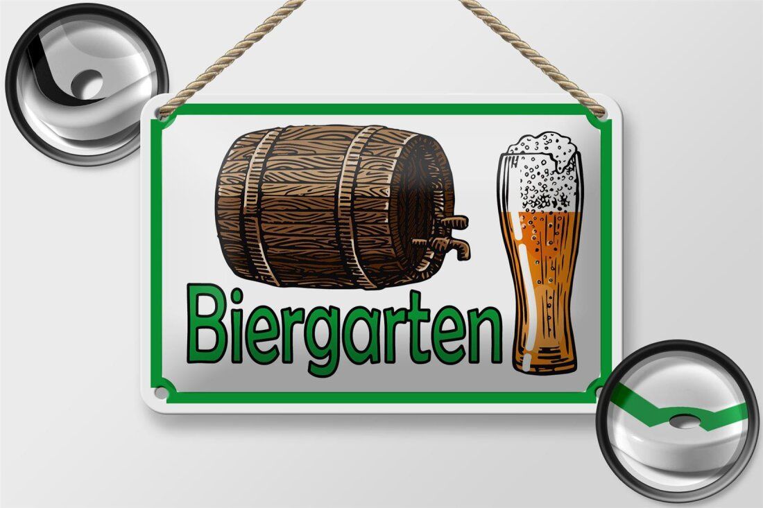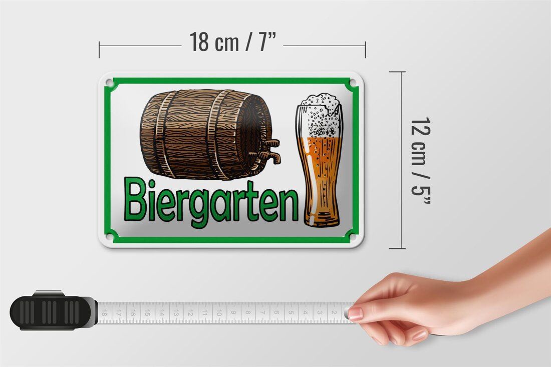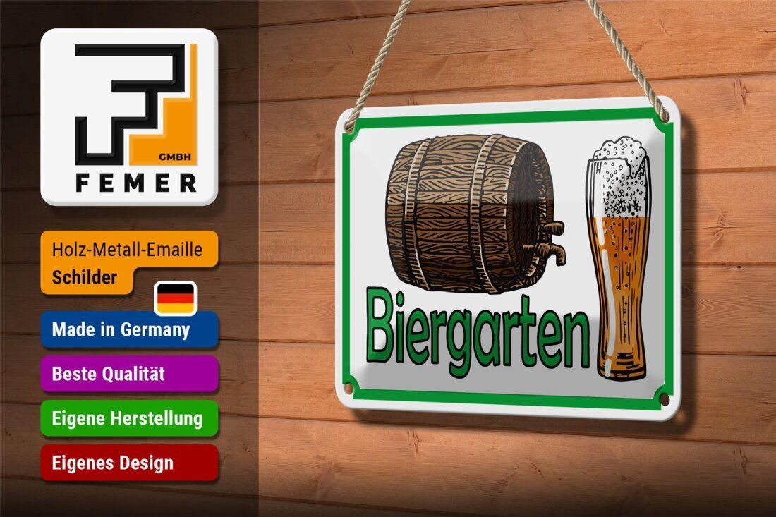 Blechschild Hinweis "Biergarten" 18x12cm Fass- und Bierglas-Motiv gewölbt