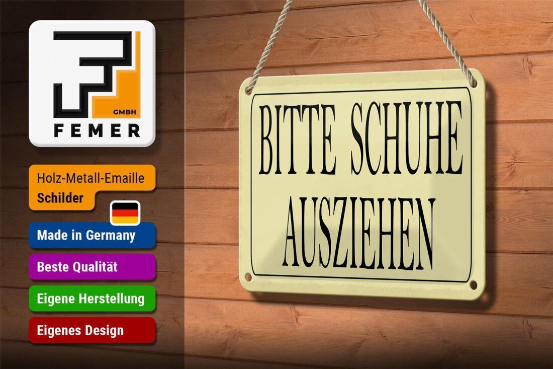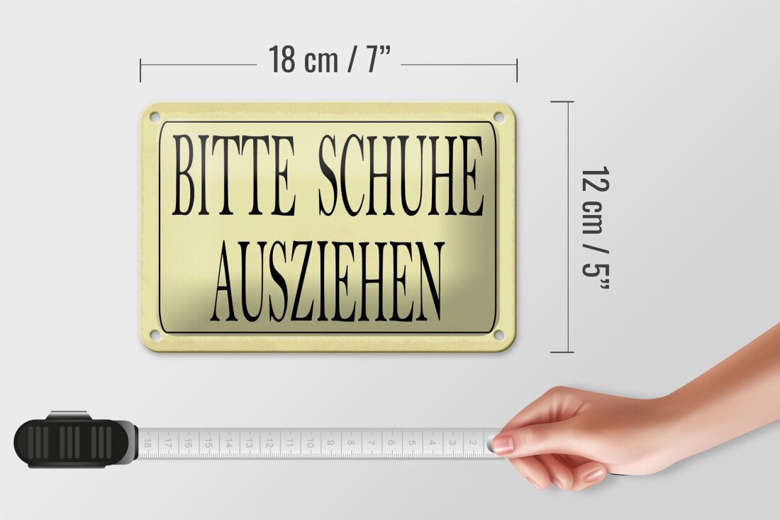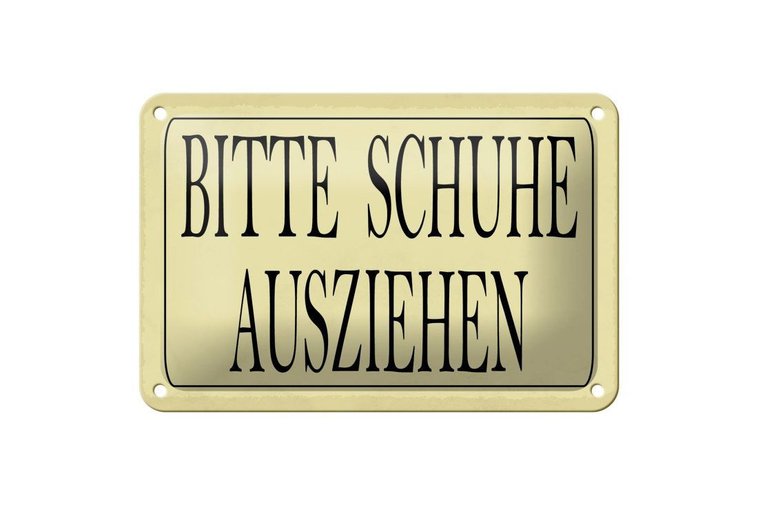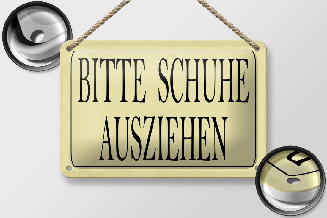 Blechschild Hinweis "Bitte Schuhe ausziehen" 18x12cm Dekoration gewölbt