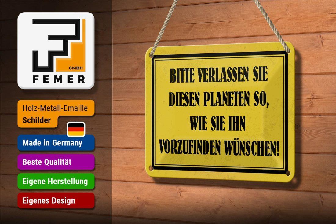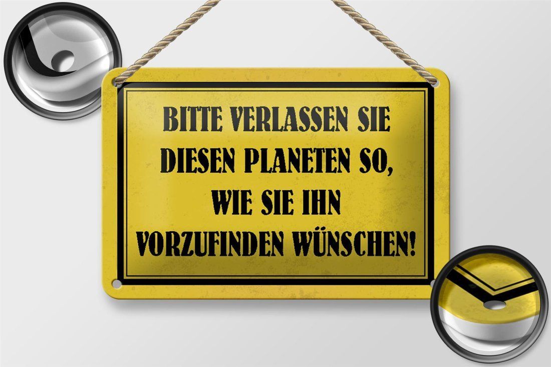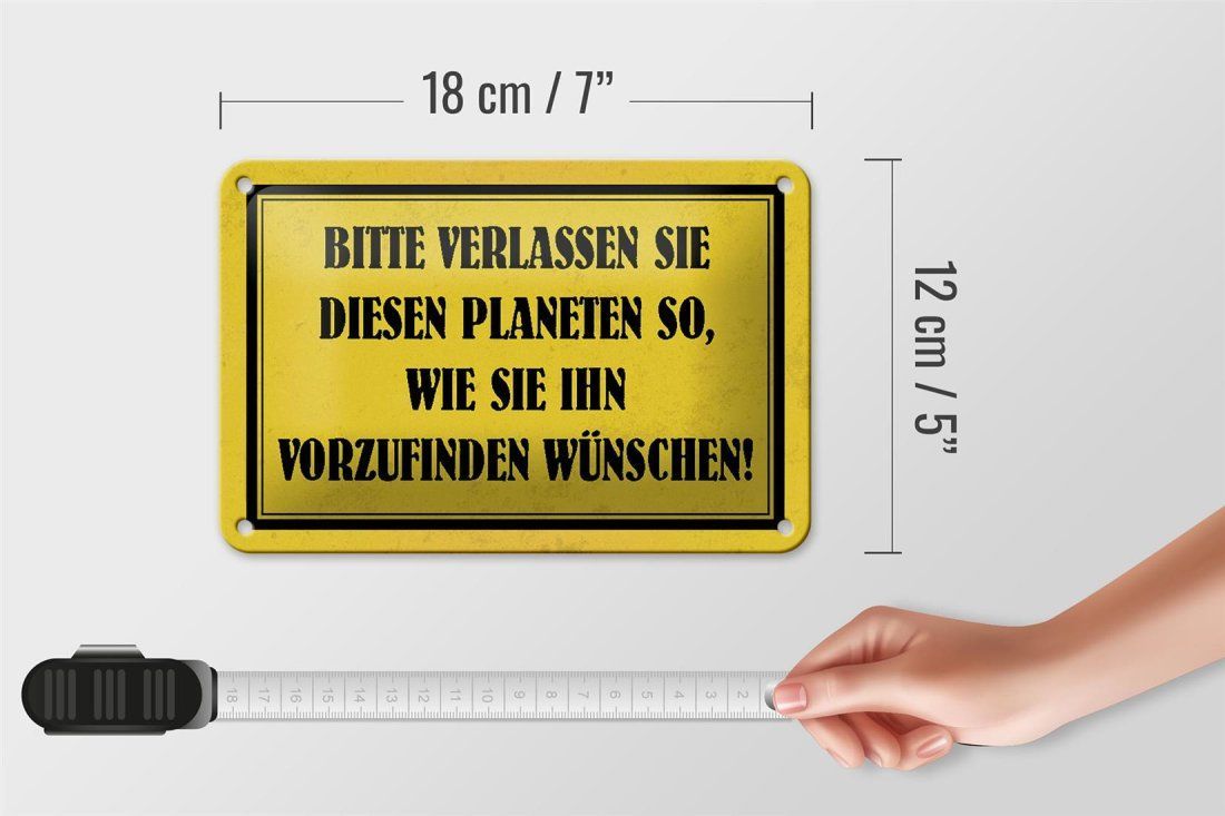 Blechschild Hinweis "Bitte verlassen Sie den Planeten so wie..." 18x12cm gelb gewölbt