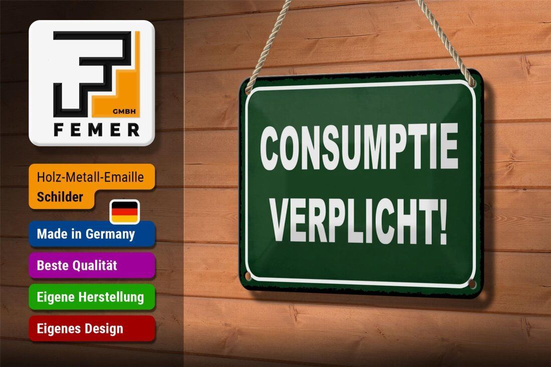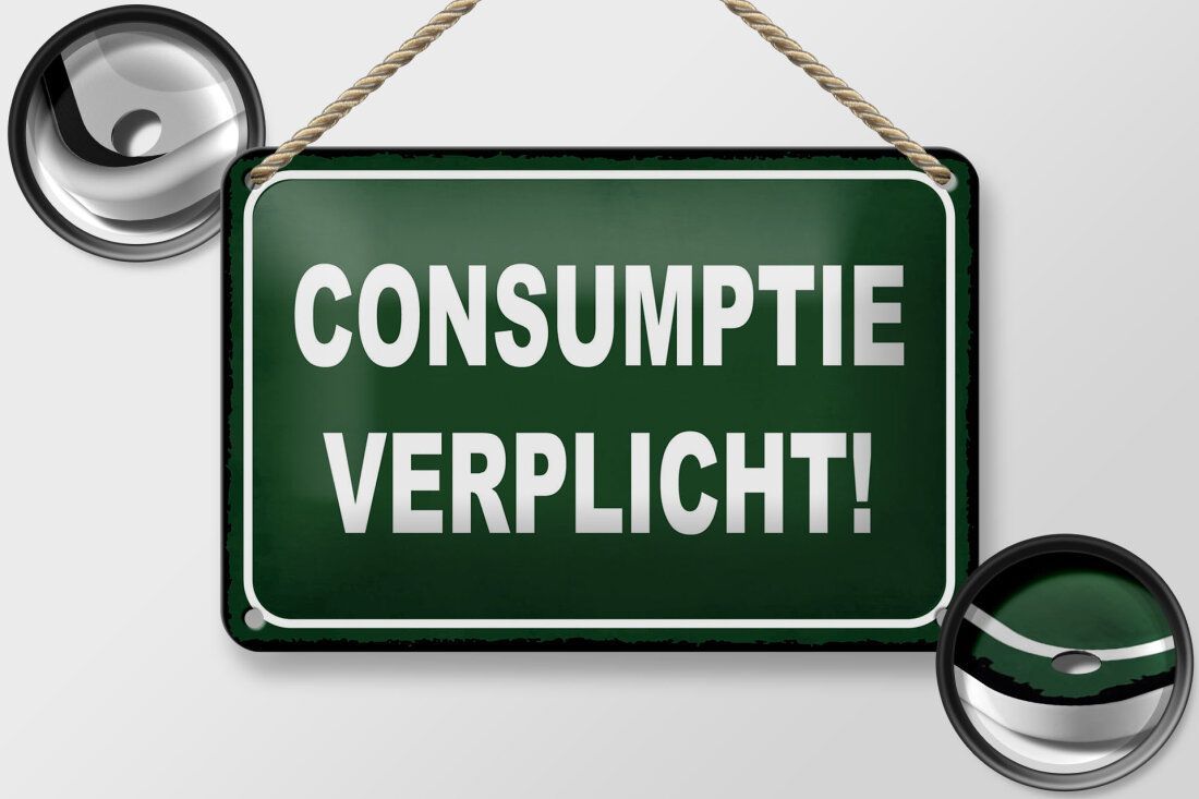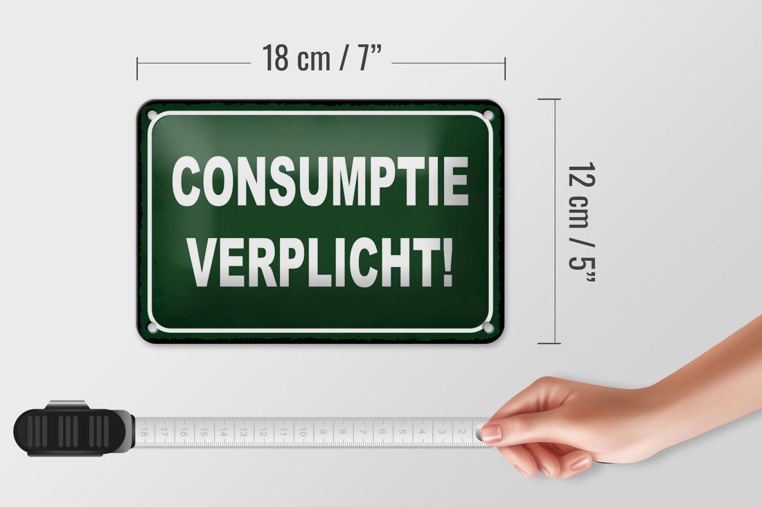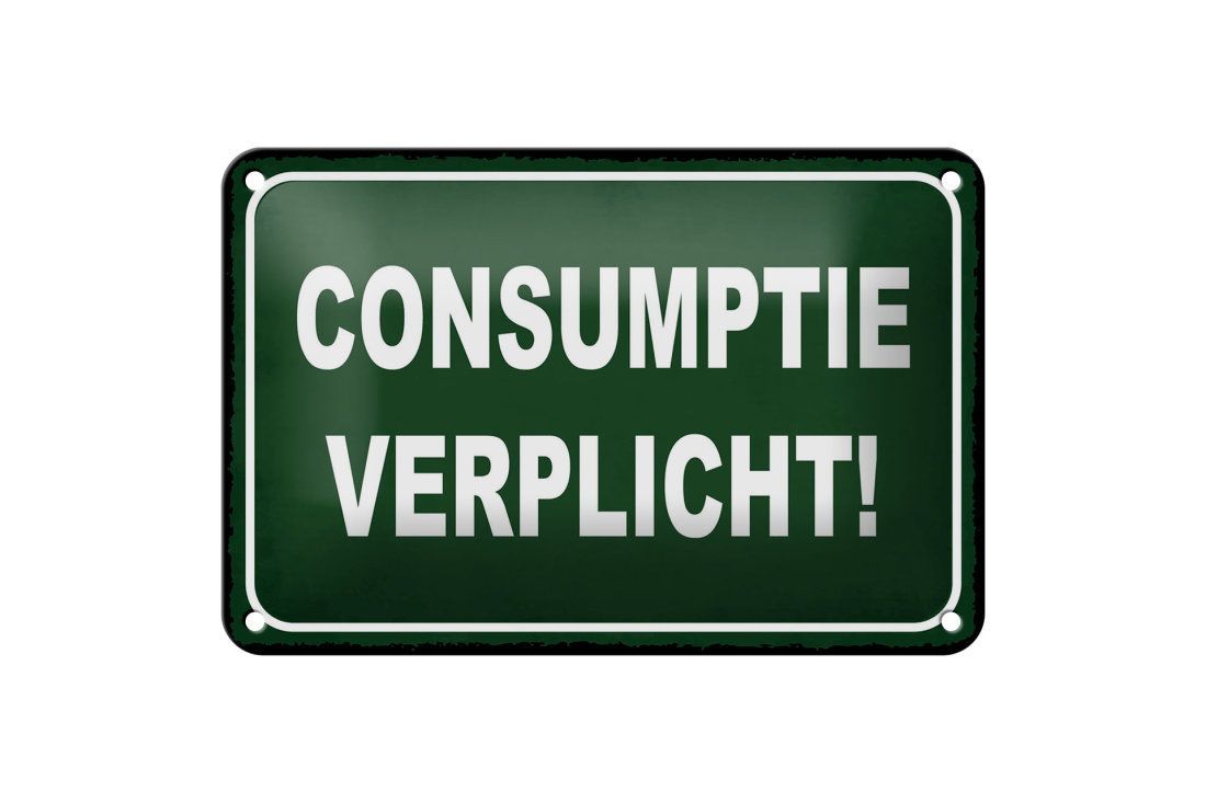 Blechschild Hinweis "Consumptie verplicht" Restaurant 18x12cm grün weiß gewölbt