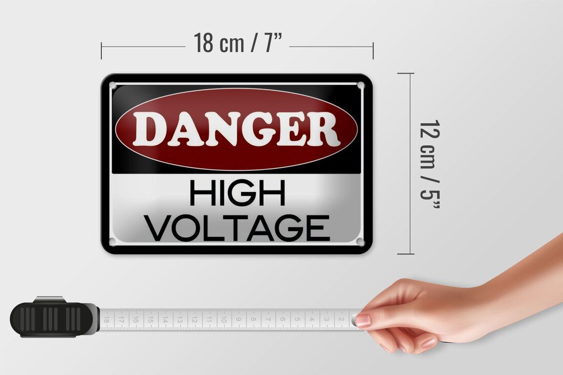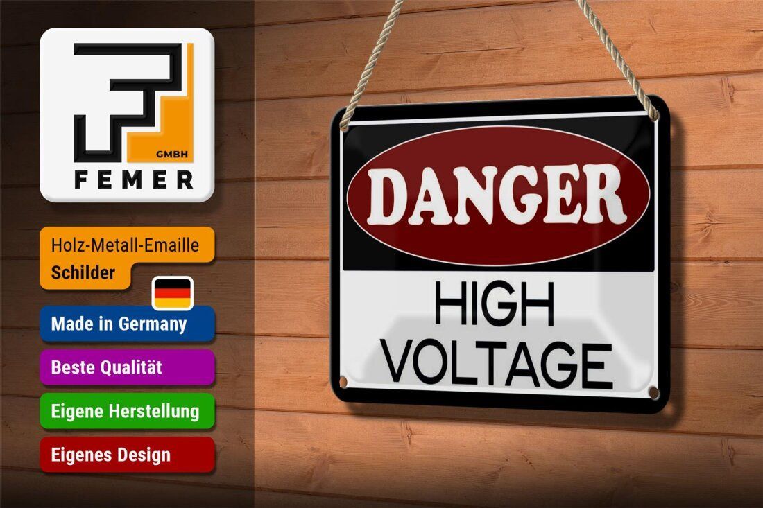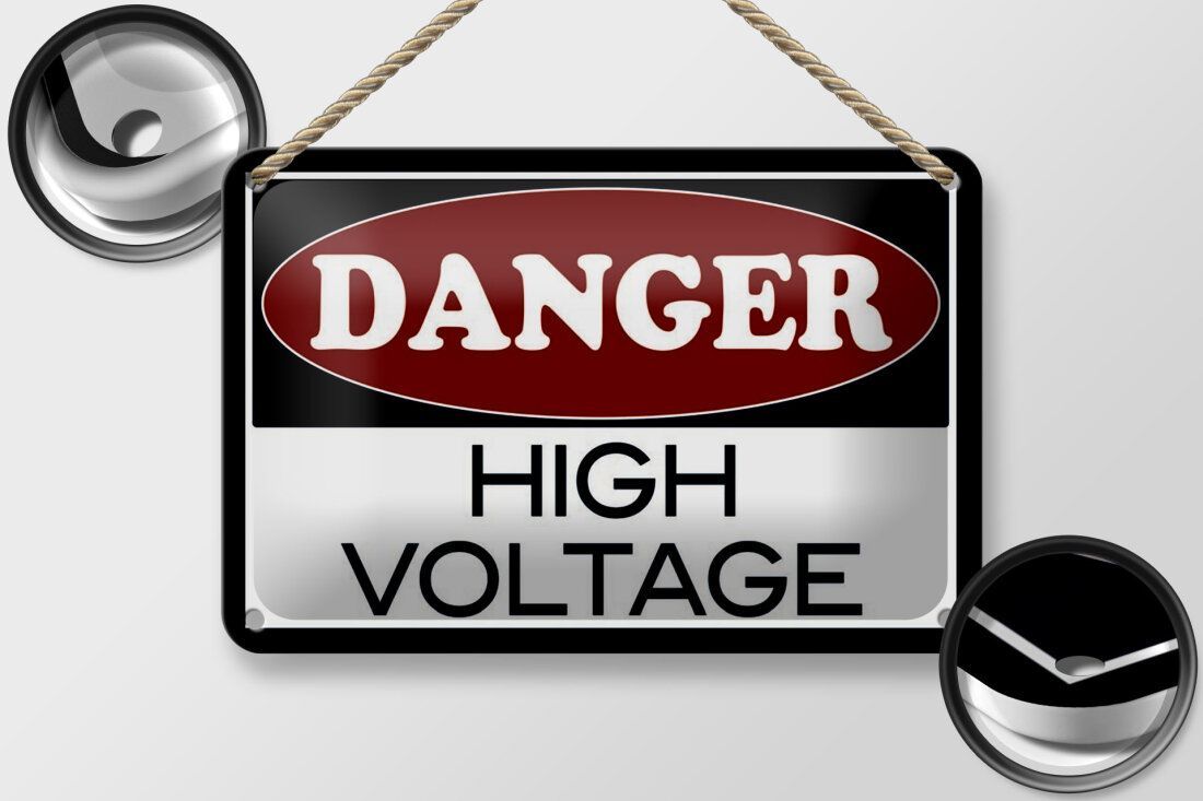 Blechschild Hinweis „DANGER - high voltage“ 18x12cm Industrie-Design gewölbt