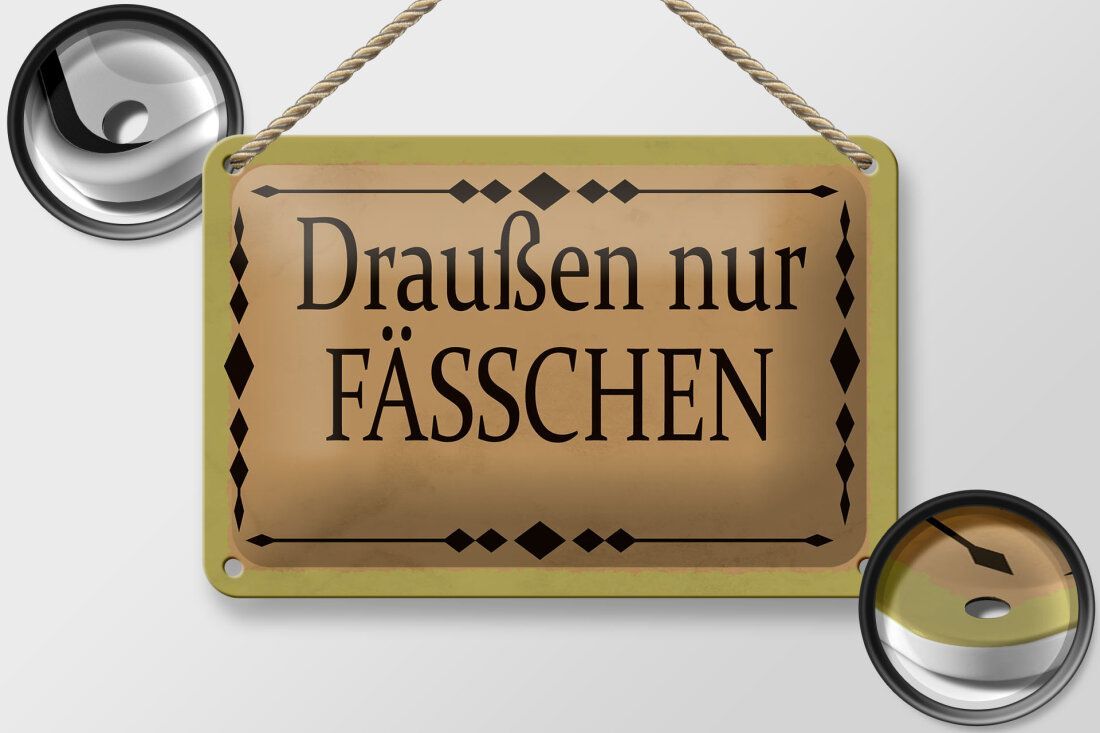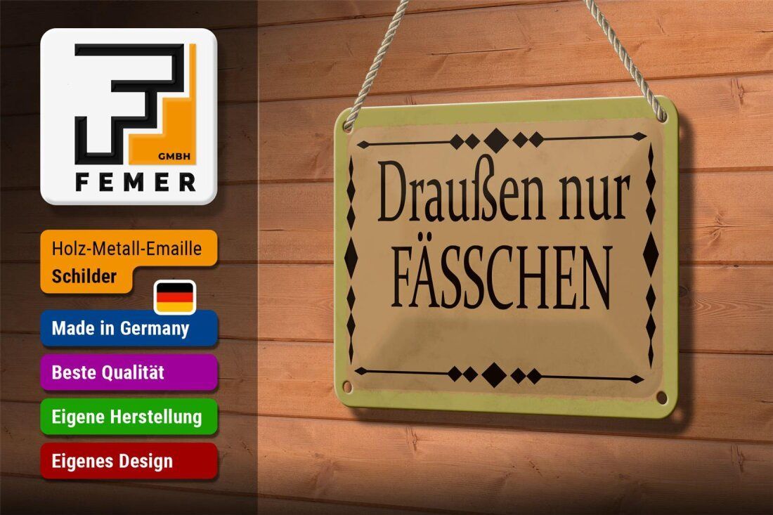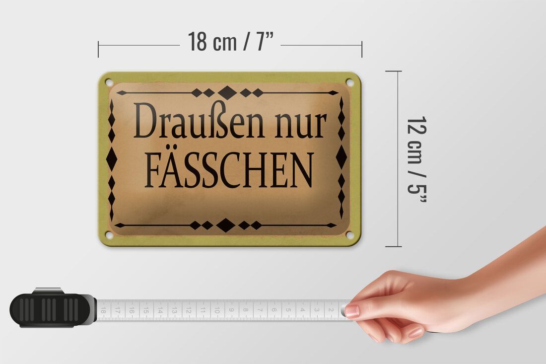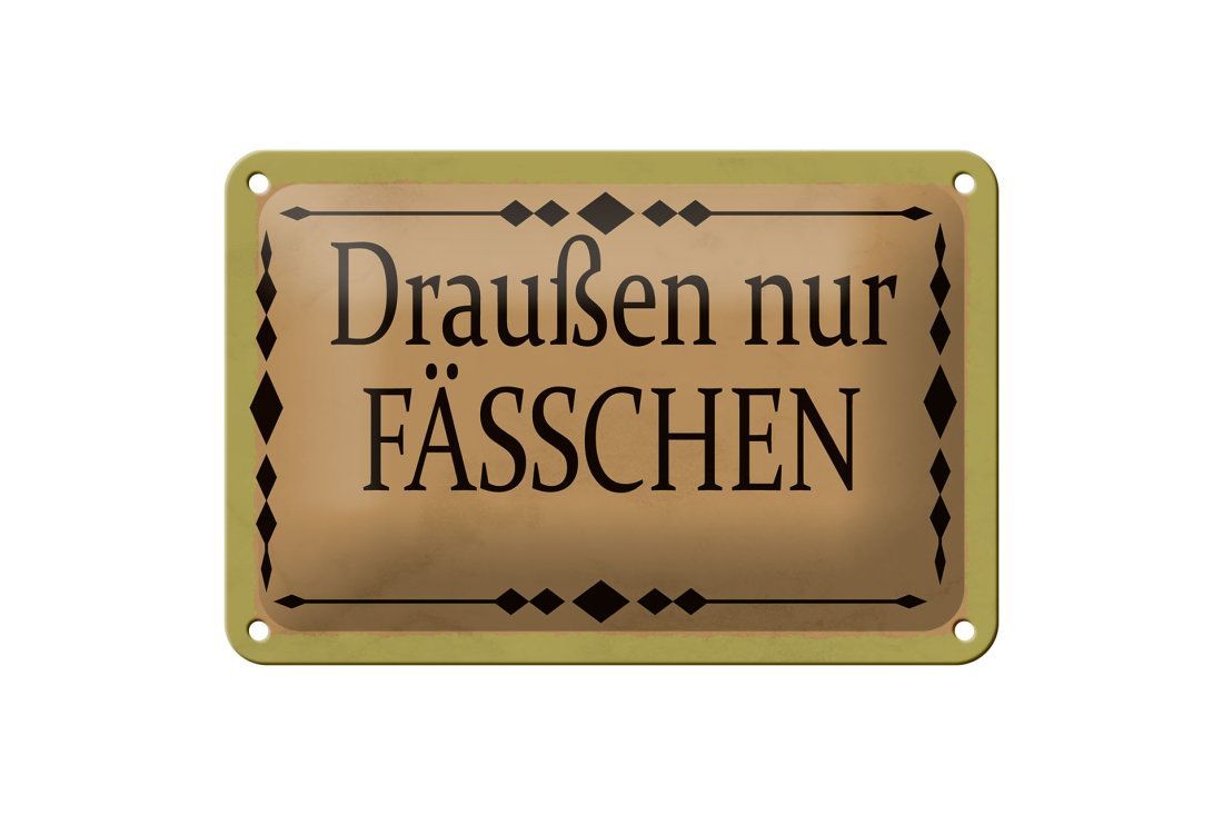 Blechschild Hinweis „Draußen nur Fässchen“ 18x12cm Dekoration gewölbt