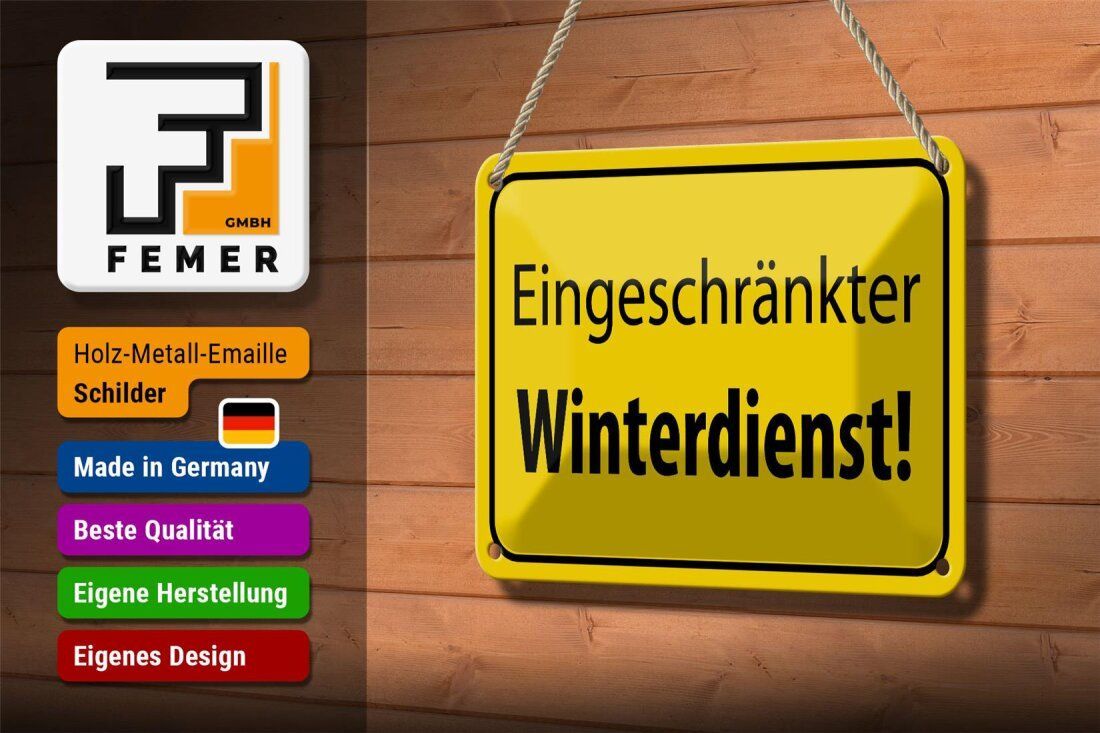 Blechschild Hinweis „Eingeschränkter Winterdienst“ 18x12cm gelb schwarz gewölbt