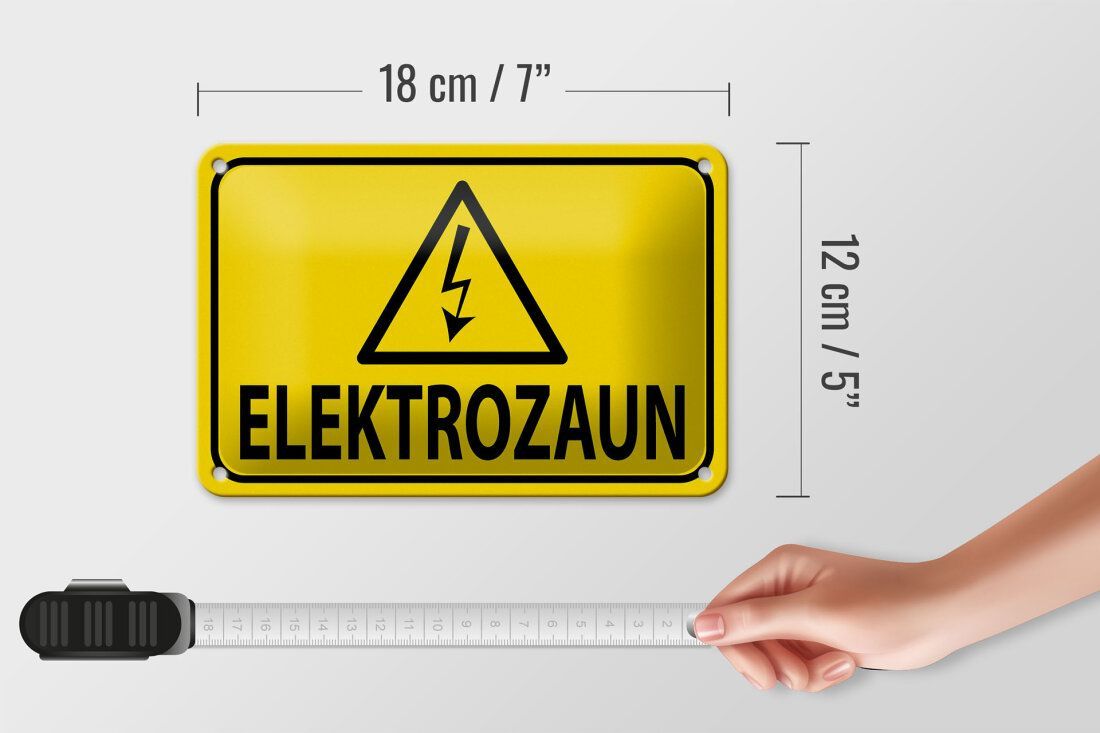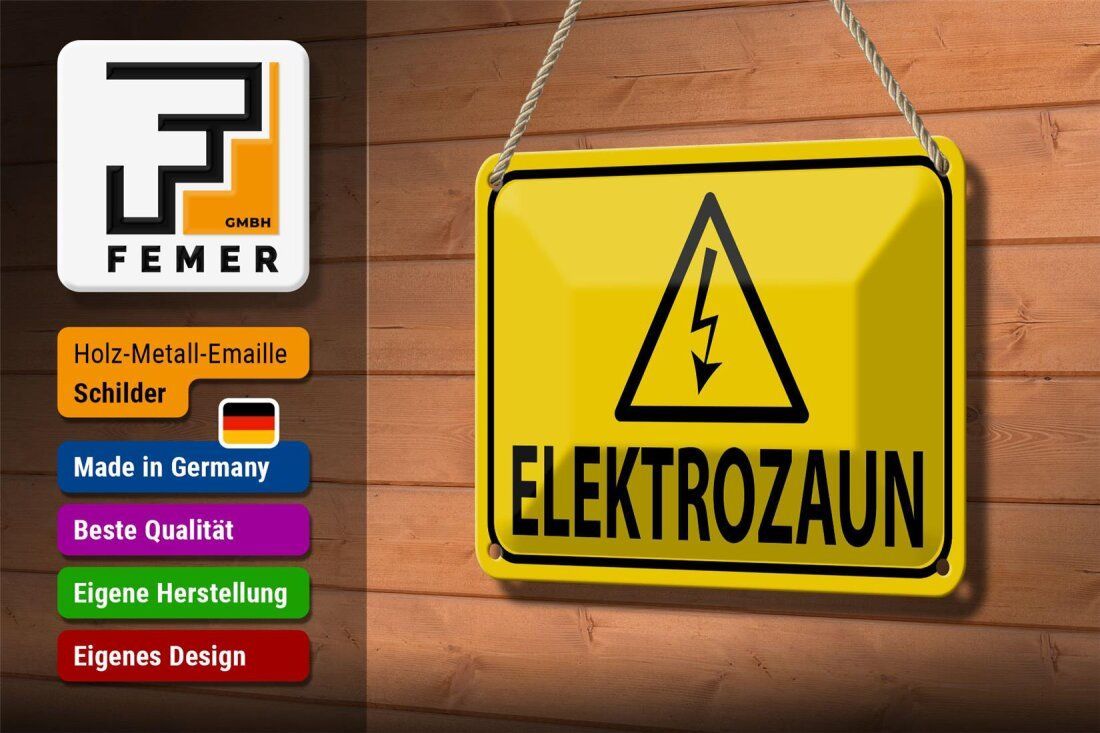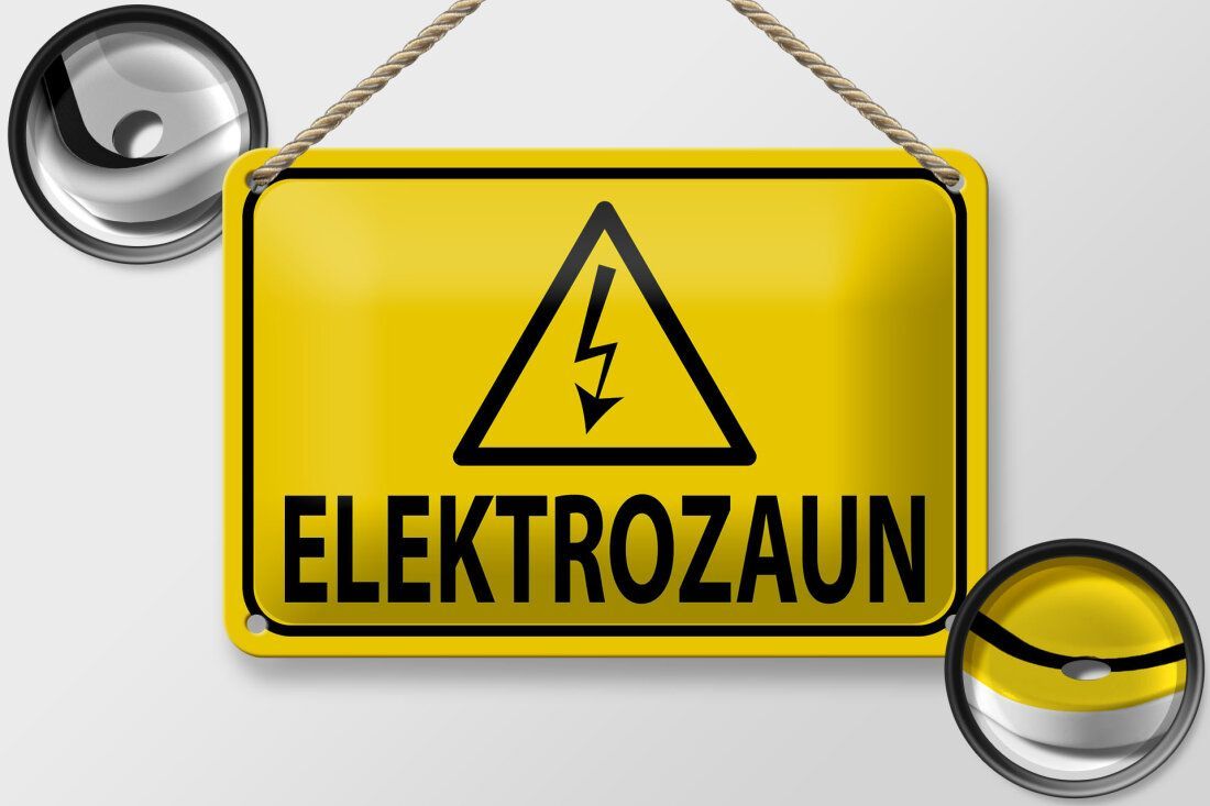 Blechschild Hinweis „Elektrozaun“ Warnschild 18x12cm gelb schwarz gewölbt