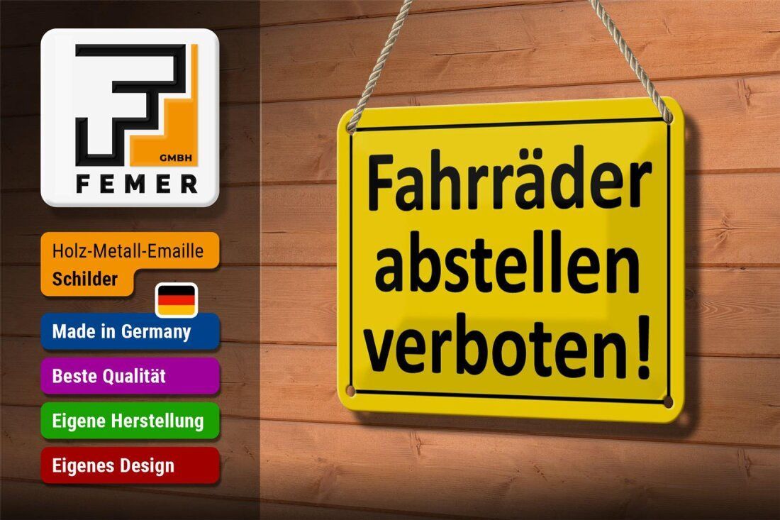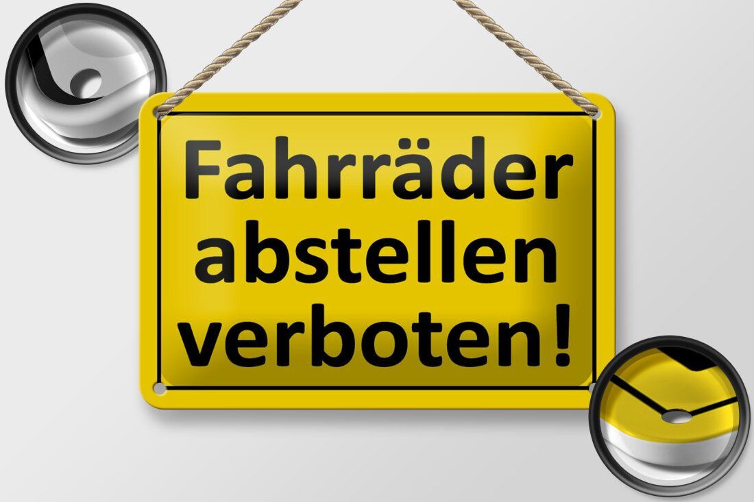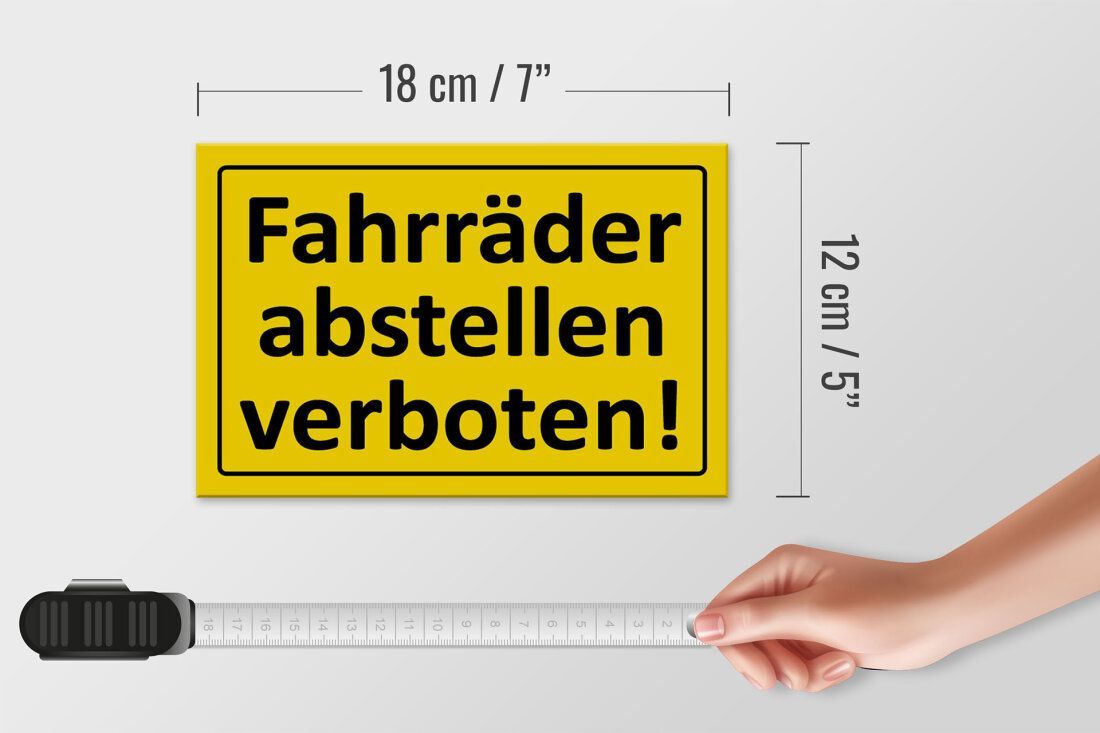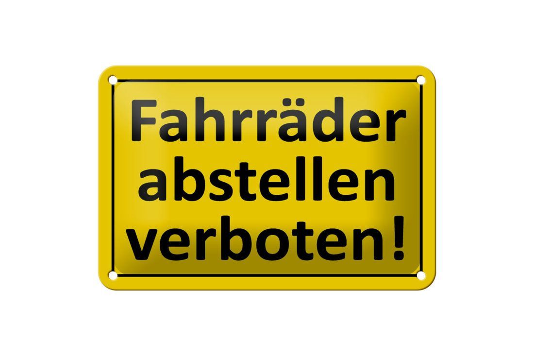 Blechschild Hinweis "Fahrräder abstellen verboten" 18x12cm gelb schwarz gewölbt