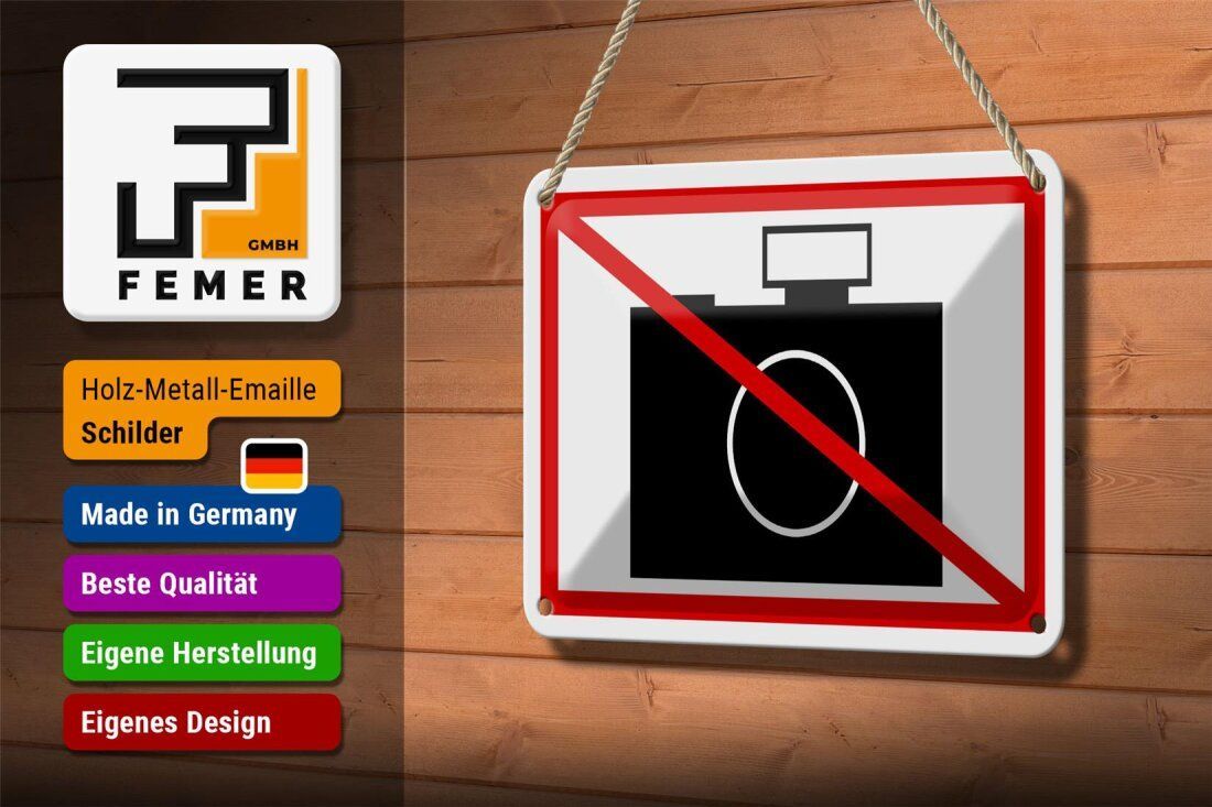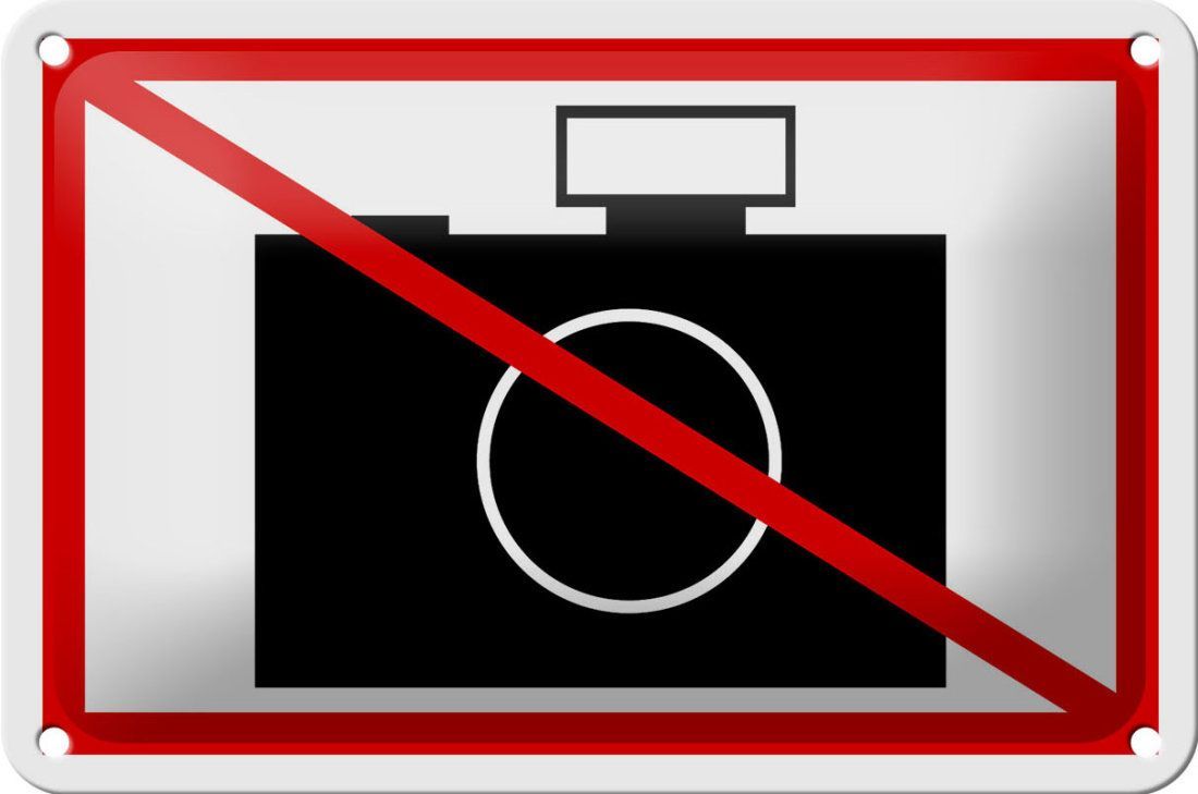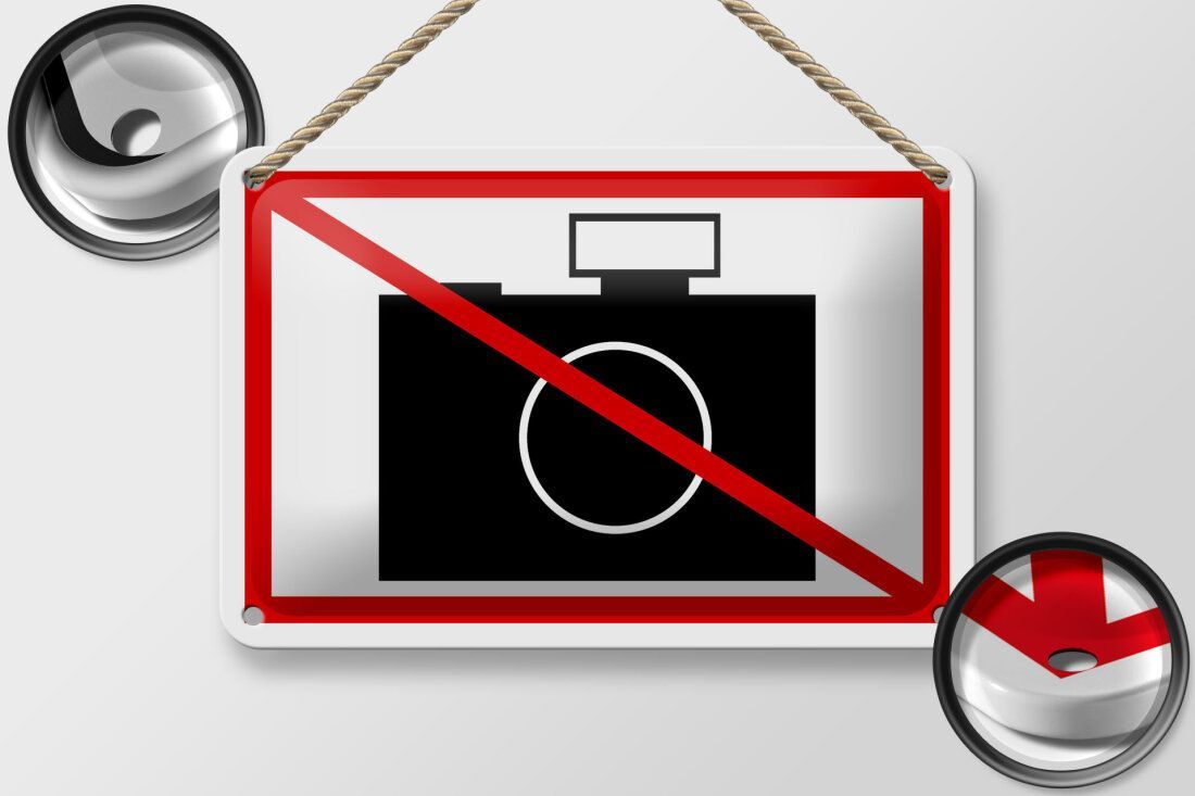 Blechschild Hinweis Fotografieren verboten Symbol 18x12cm weiß schwarz rot gewölbt