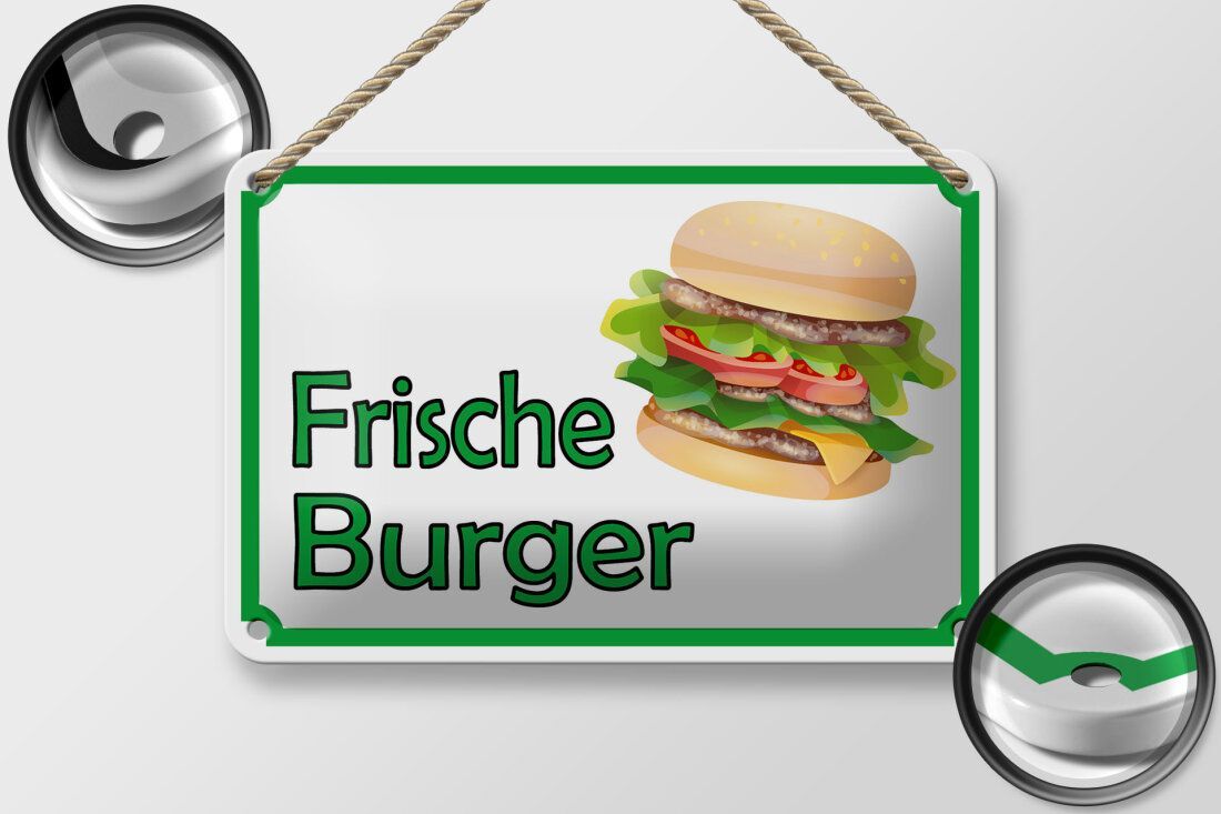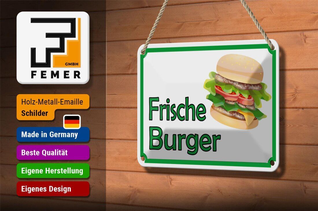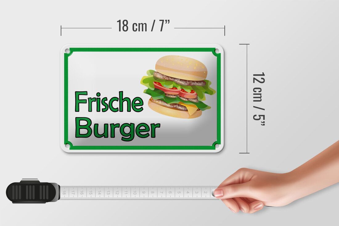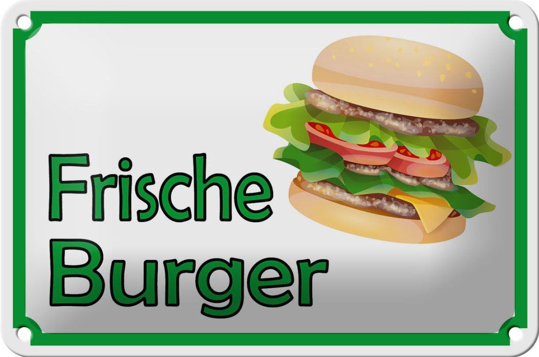 Blechschild Hinweis frische Burger Restaurant 18x12cm grün weiß gewölbt
