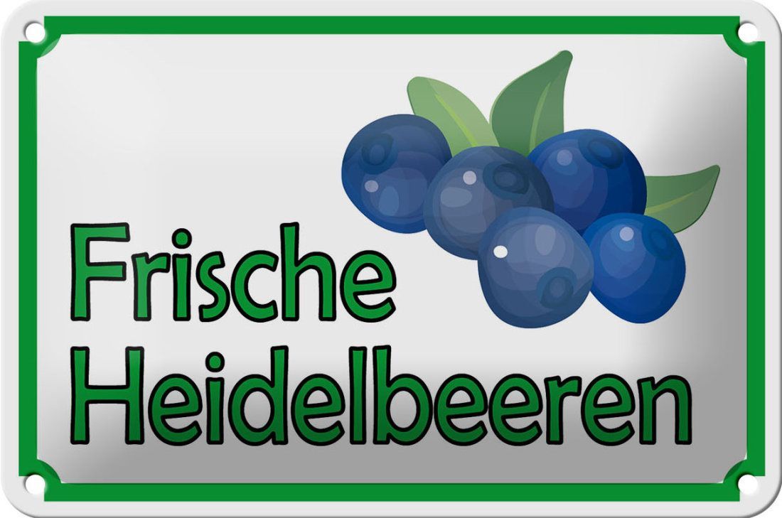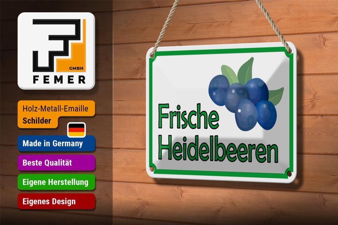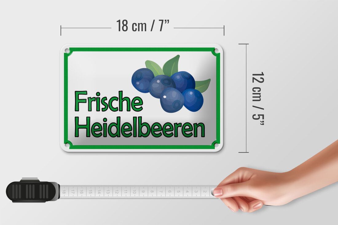 Blechschild Hinweis frische Heidelbeeren Verkauf Hofladen 18x12cm grün weiß gewölbt