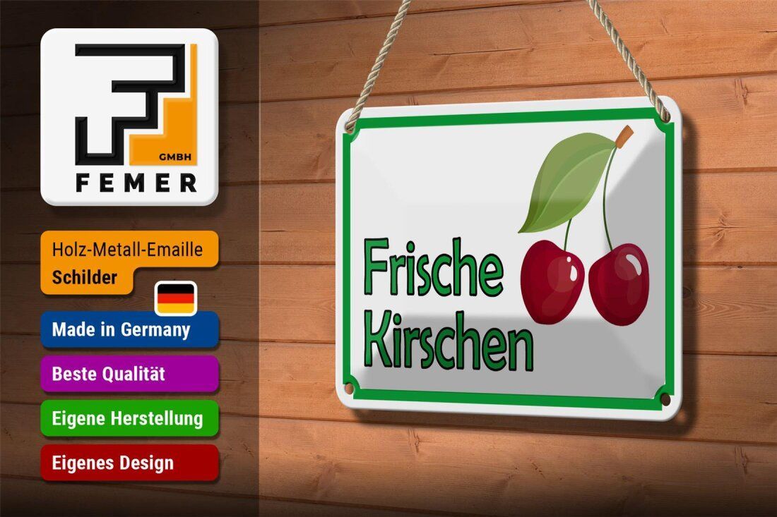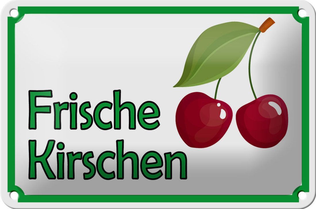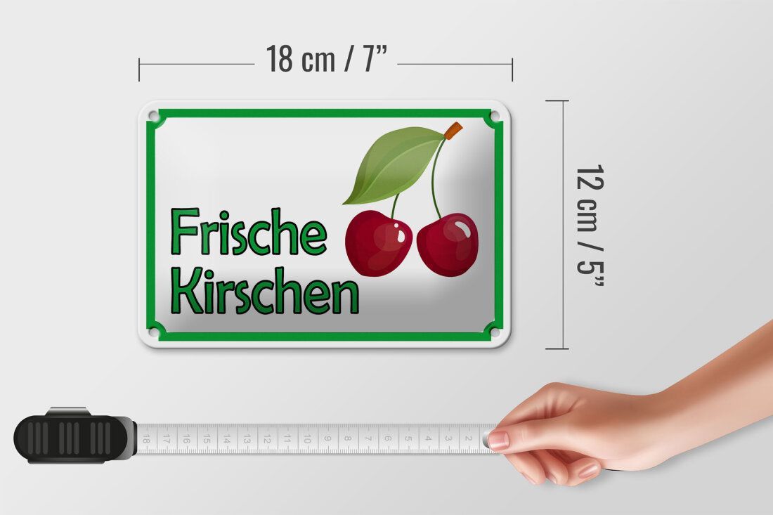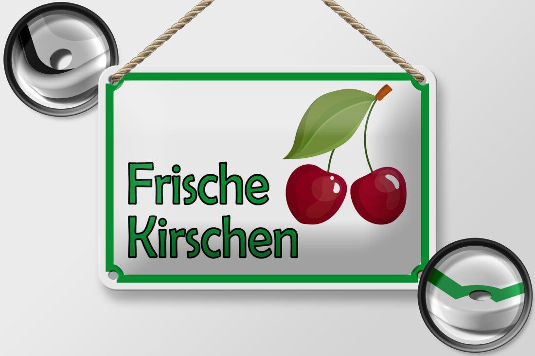 Blechschild Hinweis frische Kirschen Verkauf Hofladen 18x12cm grün weiß gewölbt