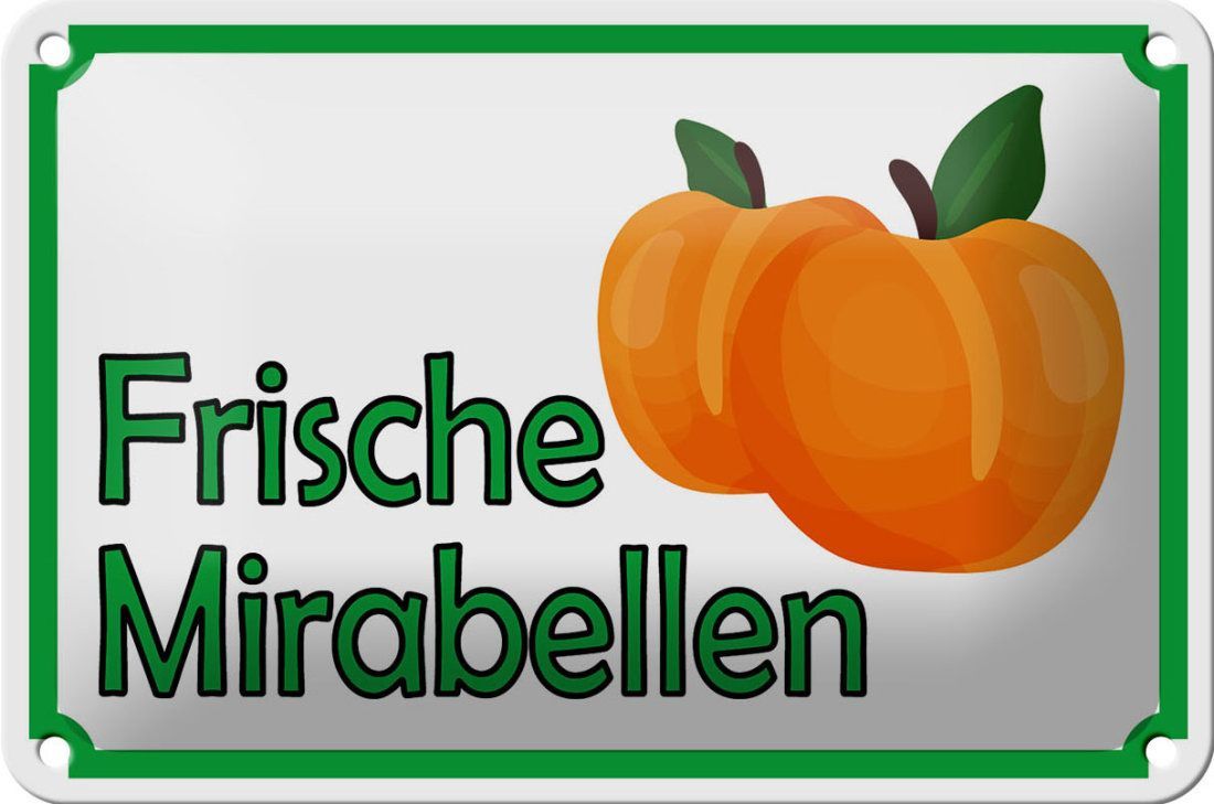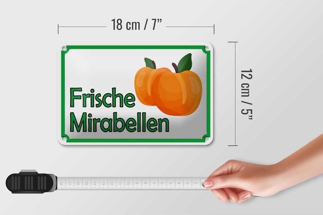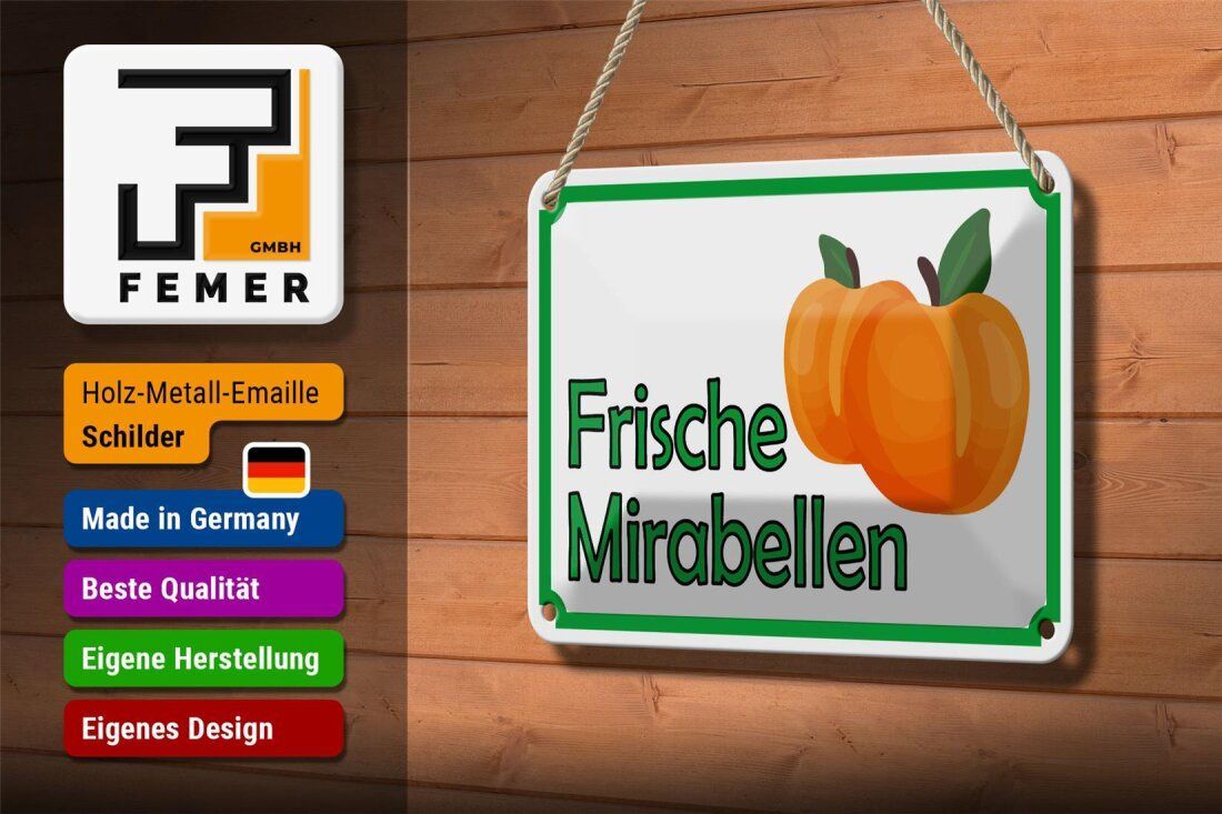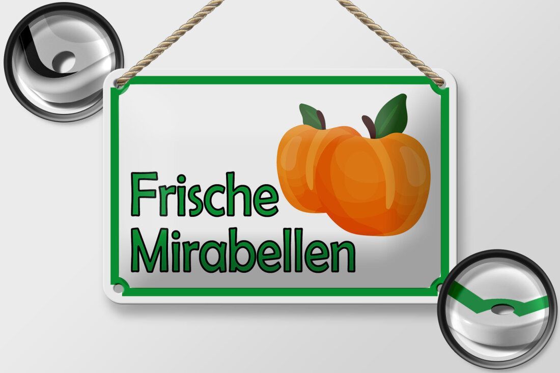 Blechschild Hinweis frische Mirabellen Verkauf Hofladen 18x12cm grün weiß gewölbt