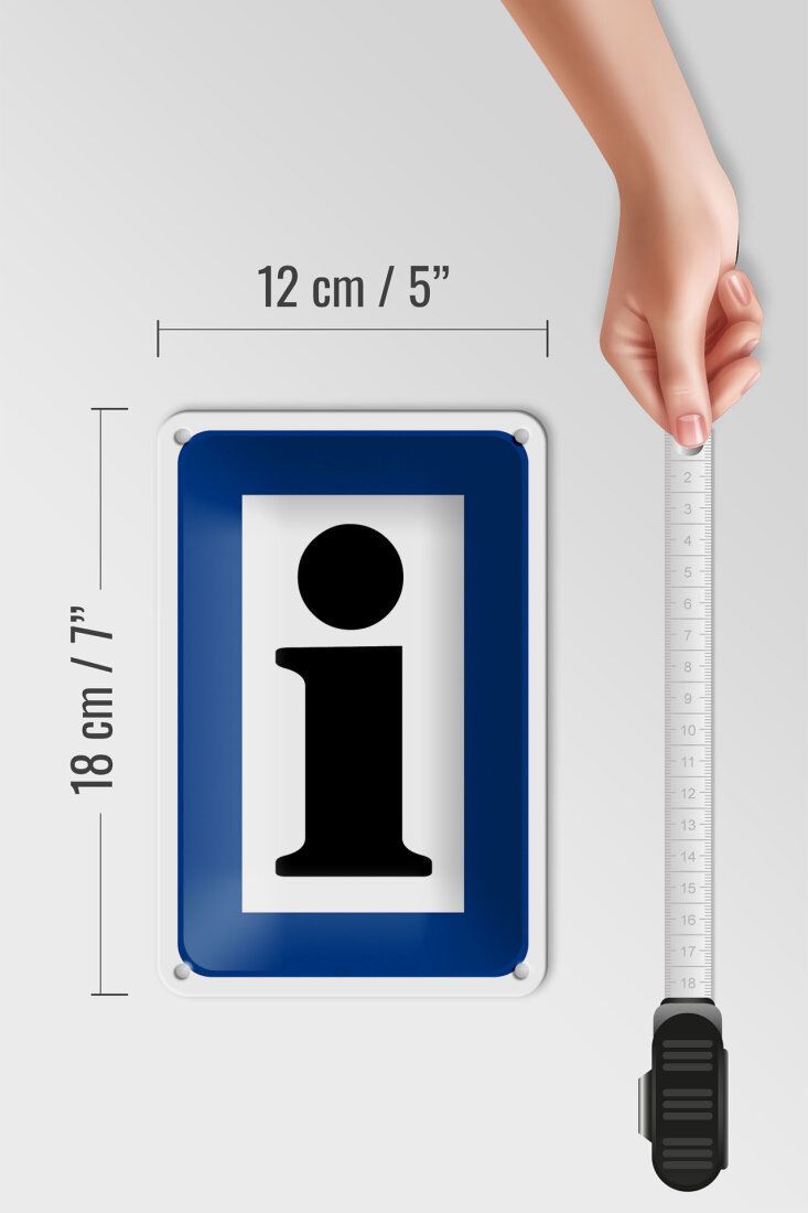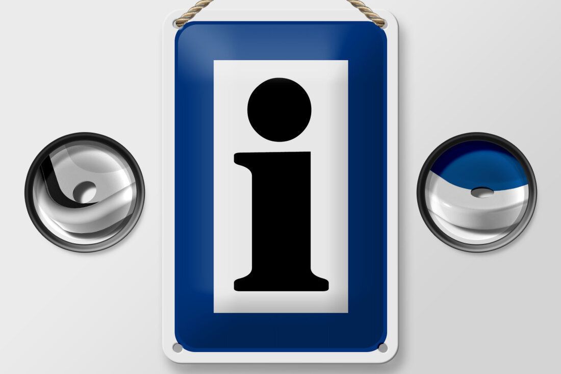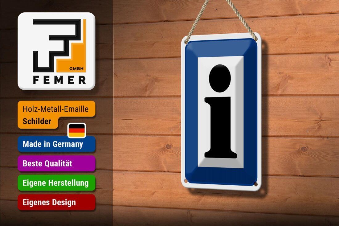 Blechschild Hinweis Information Touristinformation - 12x18 cm weiß blau gewölbt