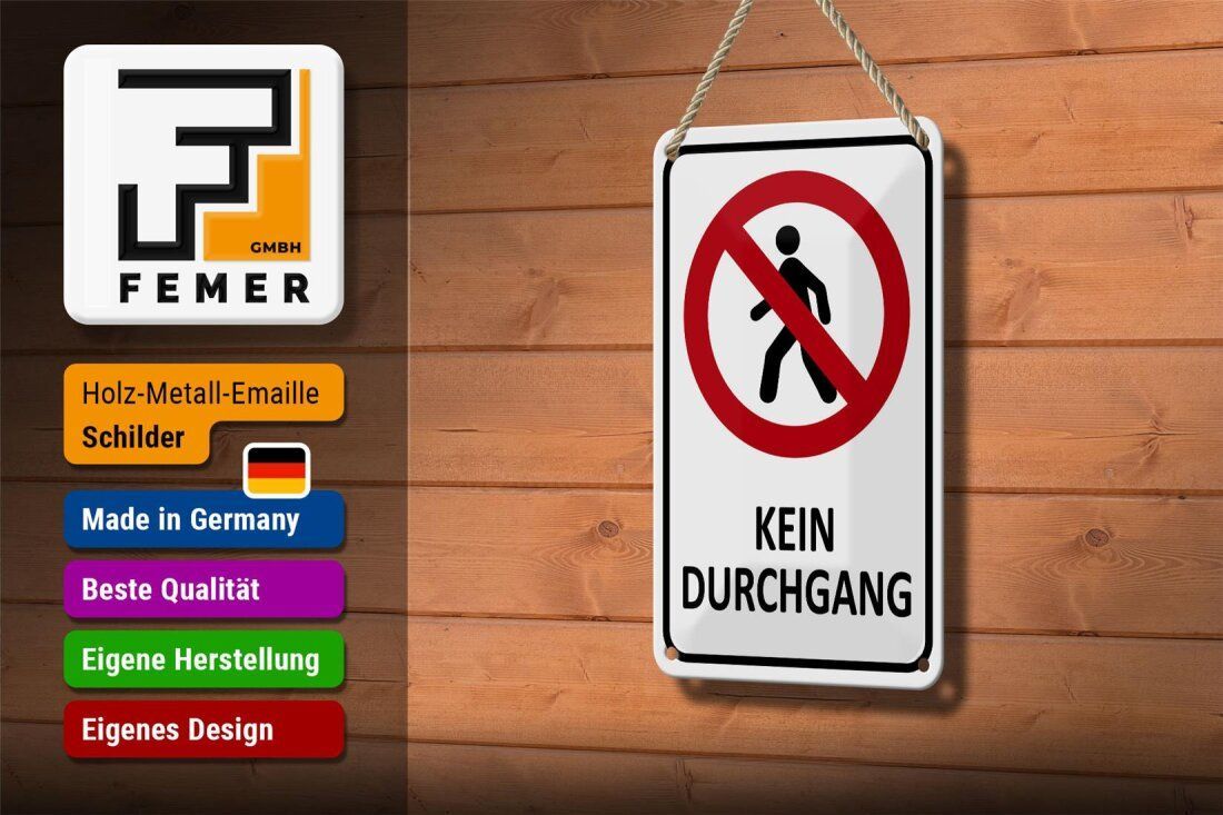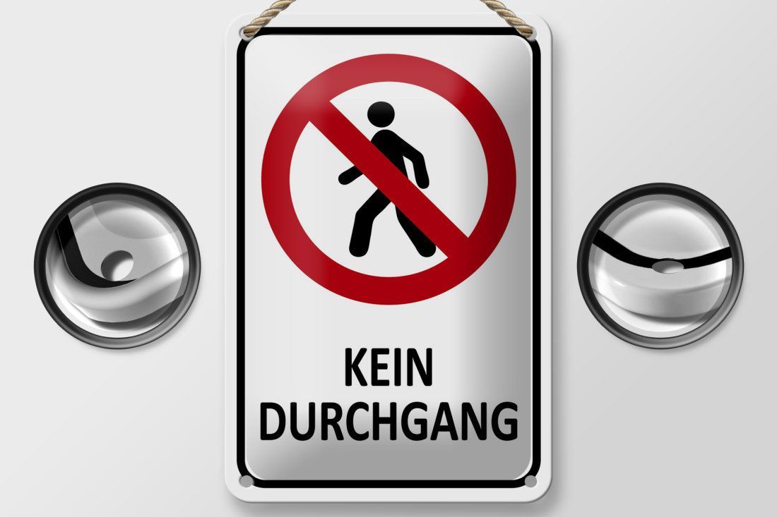 Blechschild Hinweis "Kein Durchgang" - 12x18 cm weiß rot gewölbt