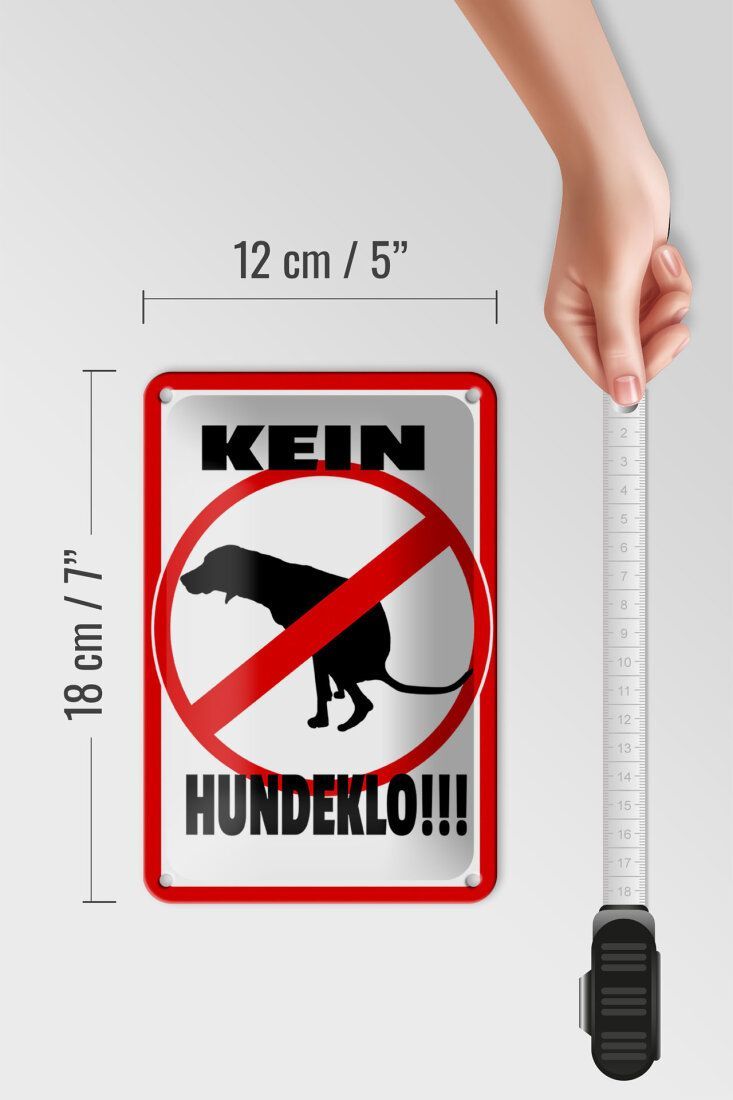 Blechschild Hinweis "Kein Hundeklo!!!" II - 12x18 cm weiß rot schwarz gewölbt