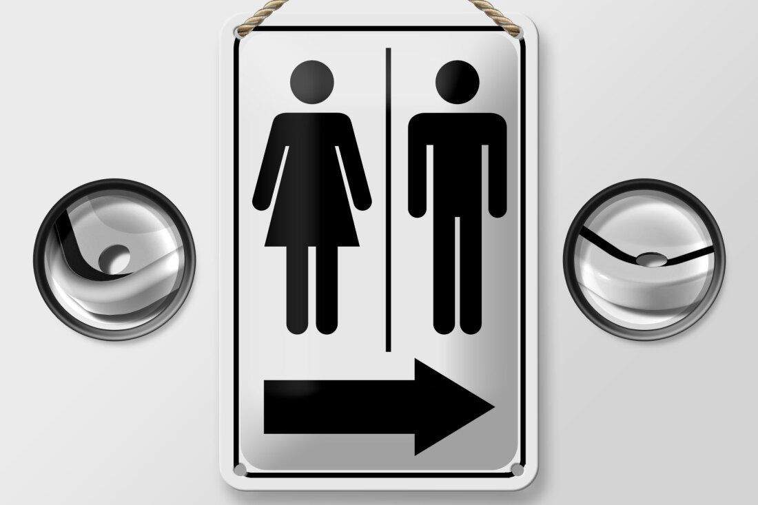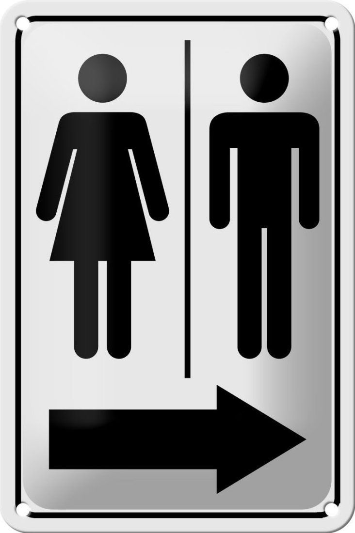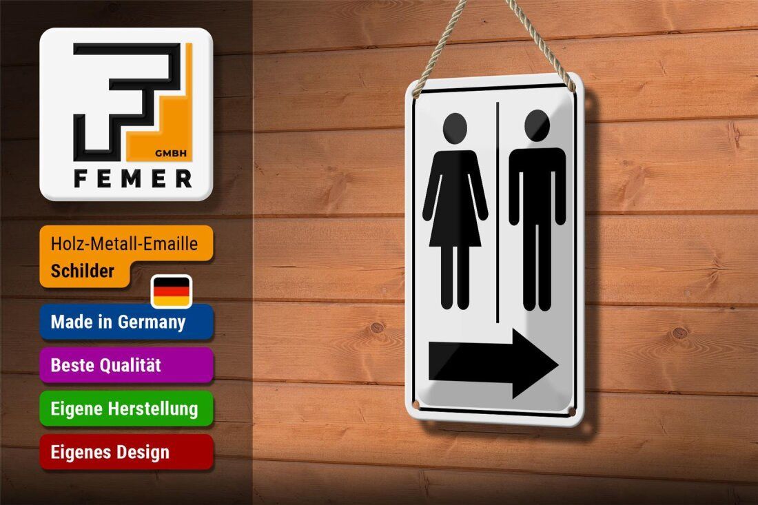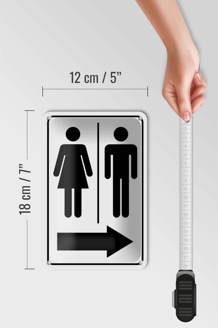 Blechschild Hinweis Toilettenfiguren Pfeil rechts 12x18cm schwarz weiß gewölbt