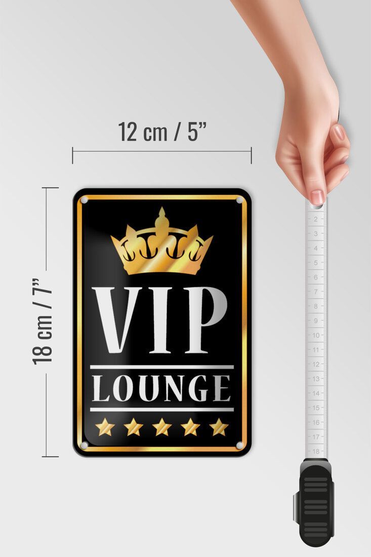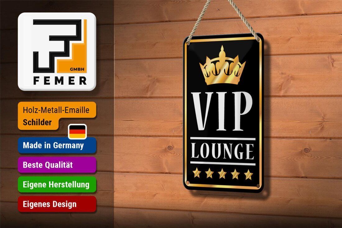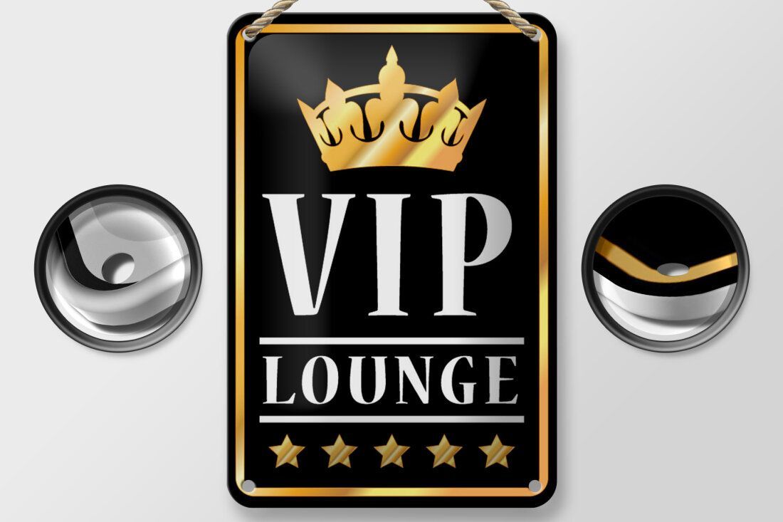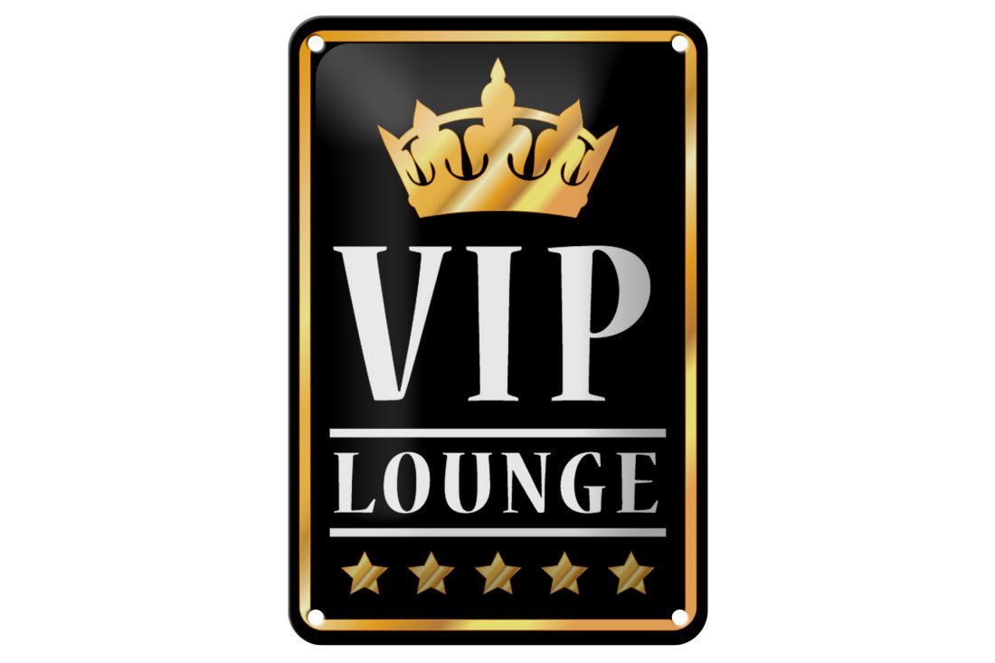 Blechschild Hinweis VIP Lounge schwarz gold weiß 12x18cm gewölbt