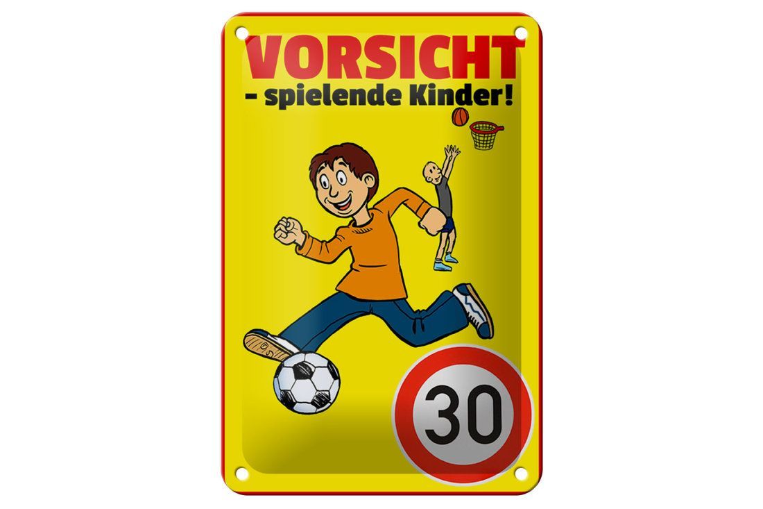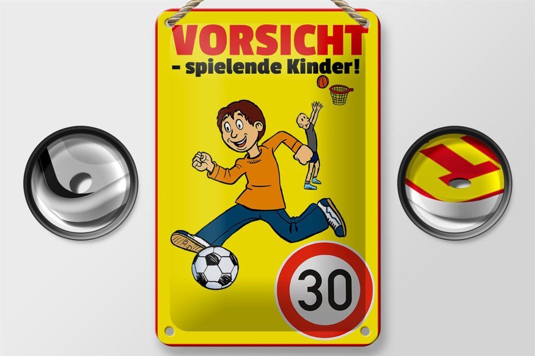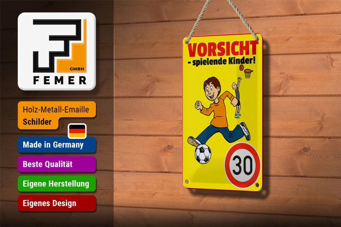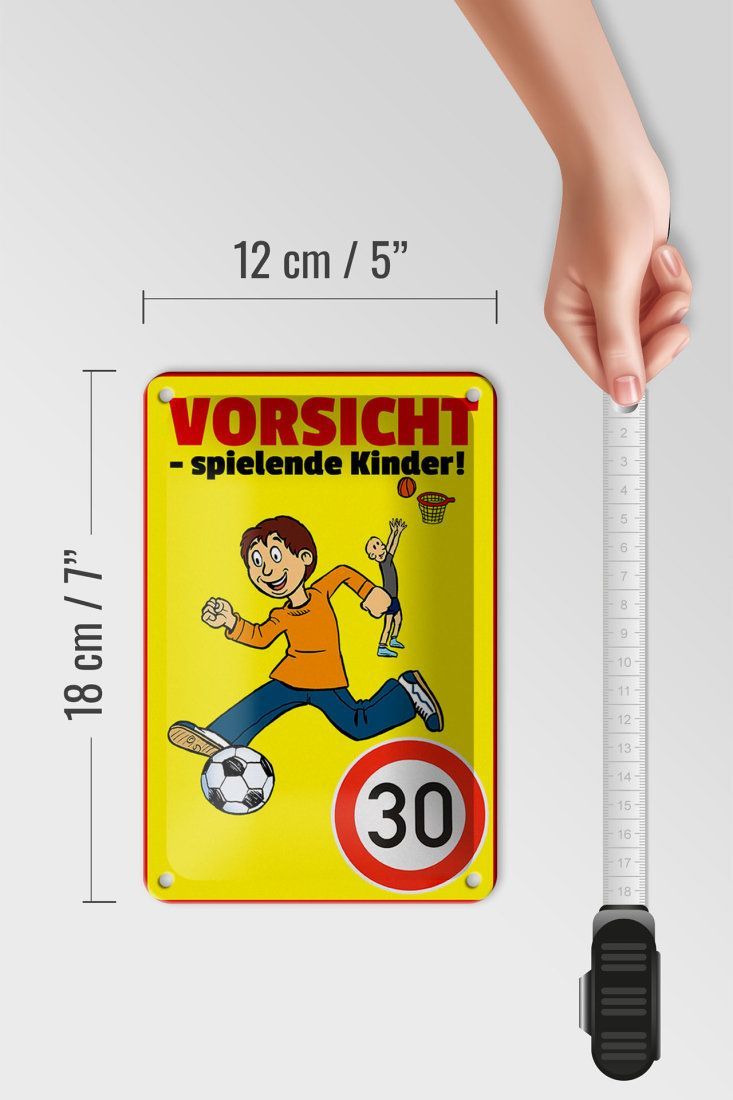 Blechschild Hinweis "Vorsicht - spielende Kinder 30Kmh" 12x18cm gelb gewölbt