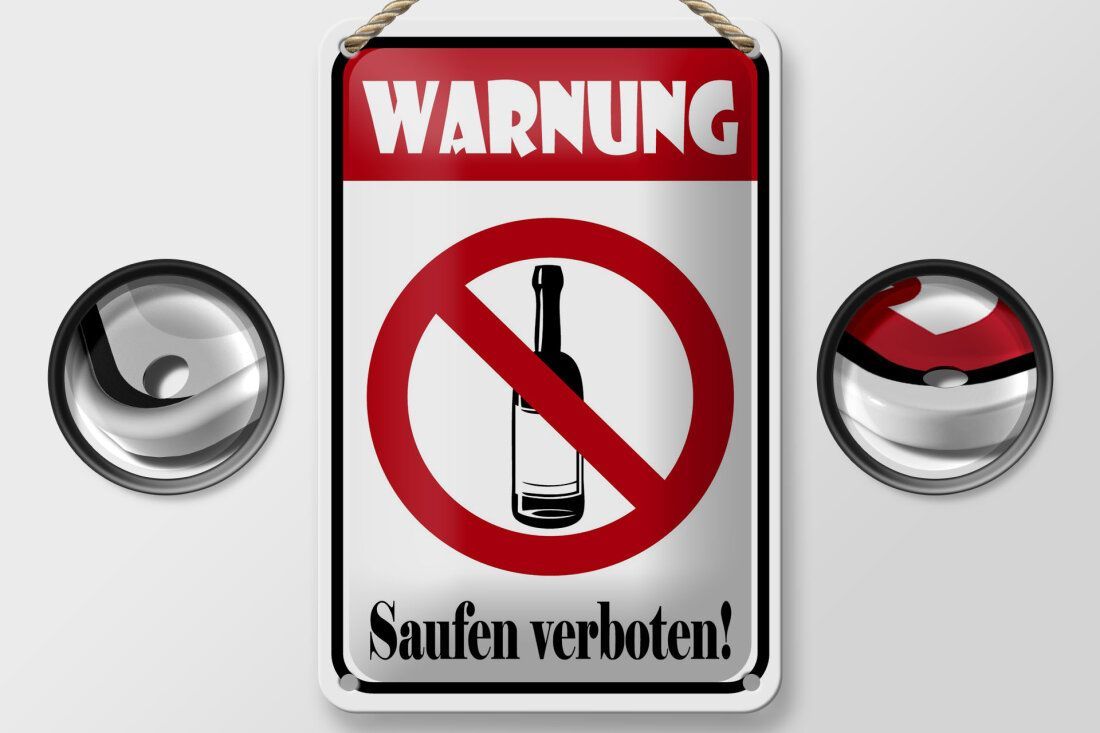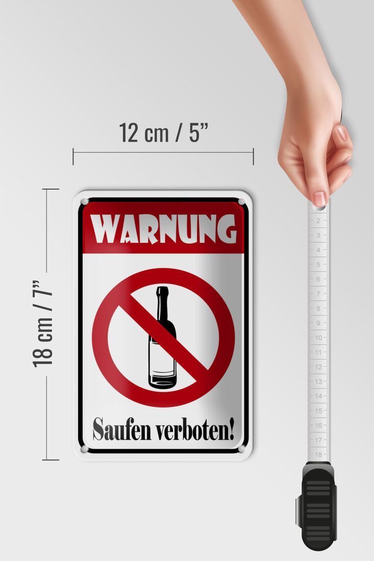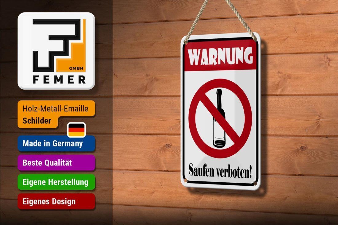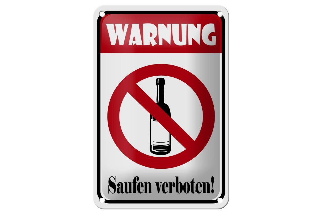 Blechschild Hinweis "Warnung Saufen verboten" 12x18cm weiß rot gewölbt