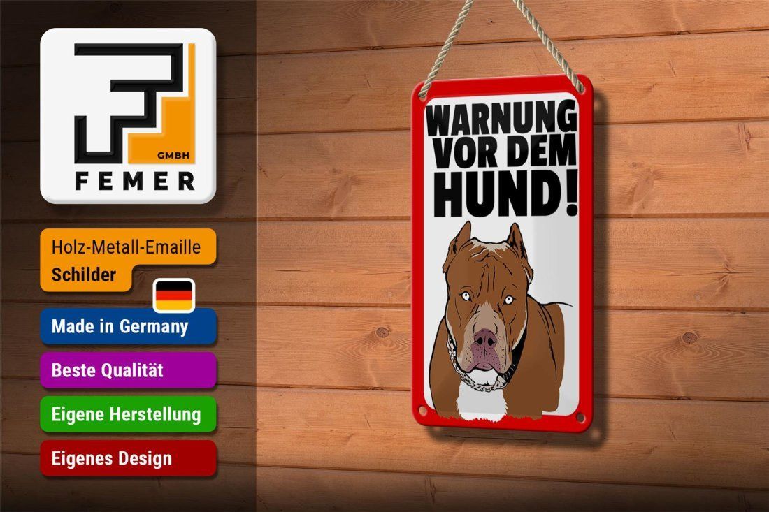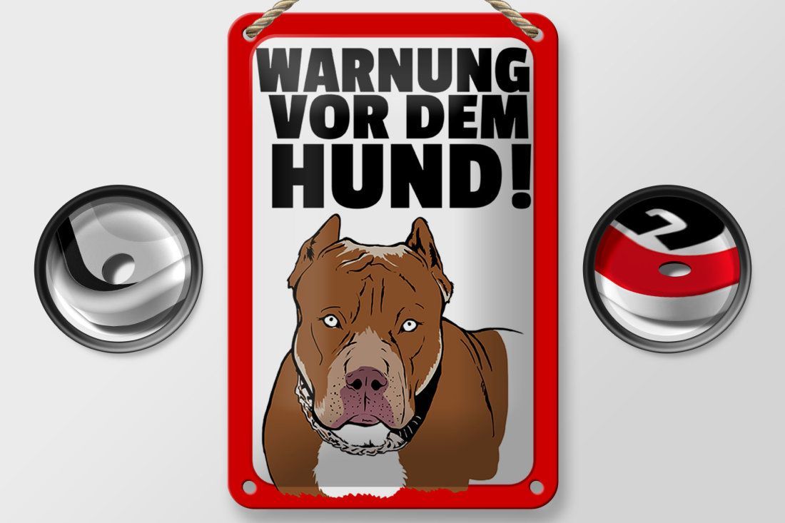 Blechschild Hinweis "Warnung vor dem Hund!" 12x18cm weiß rot gewölbt
