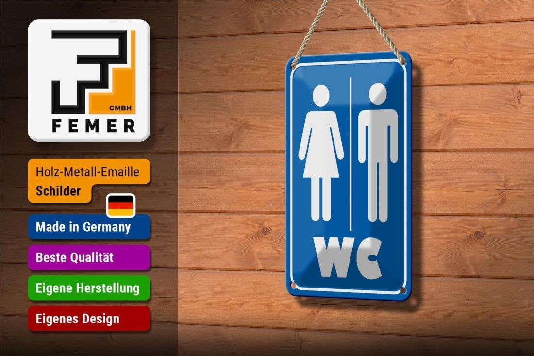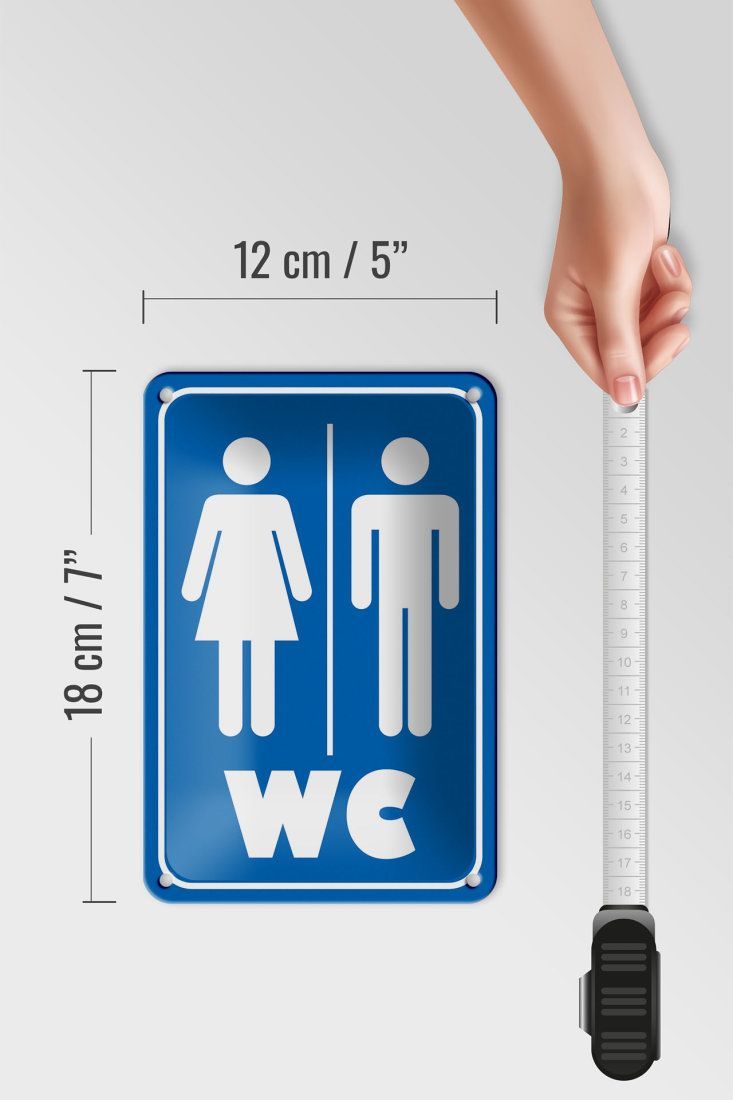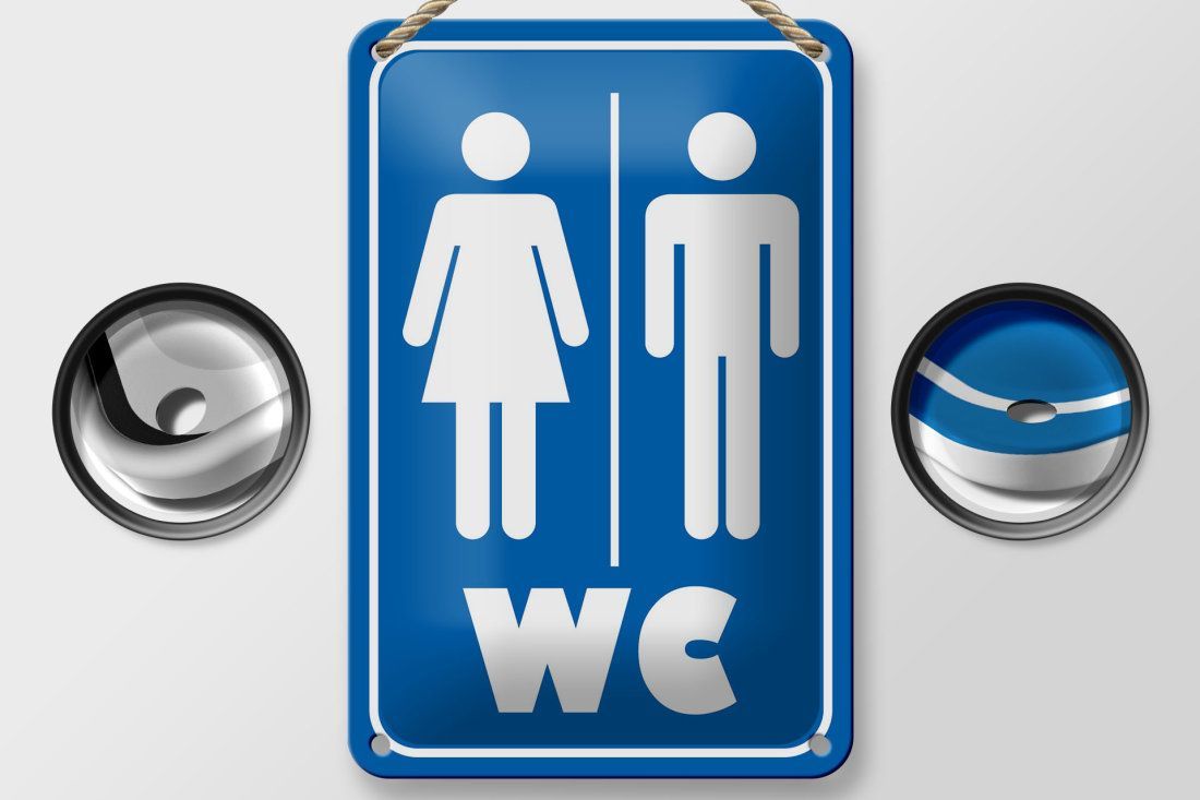 Blechschild Hinweis WC Piktogramm w/m Toilette 12x18cm blau weiß gewölbt