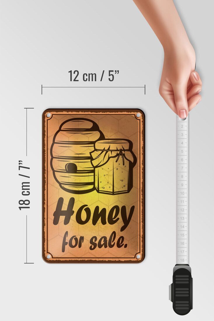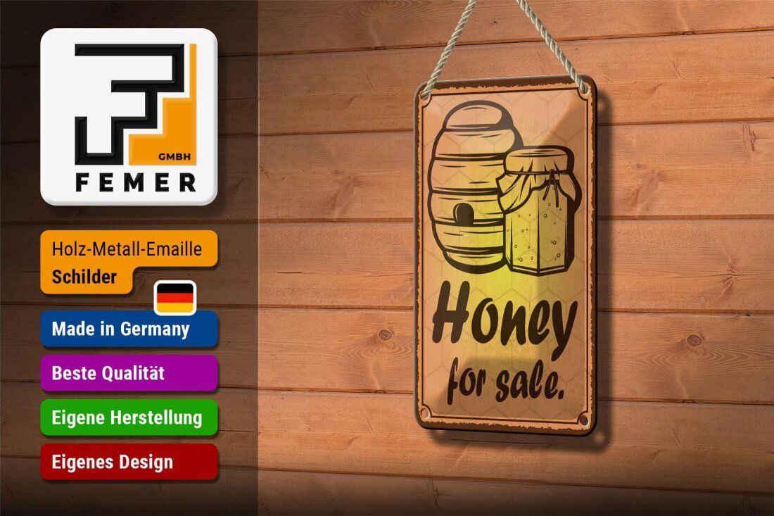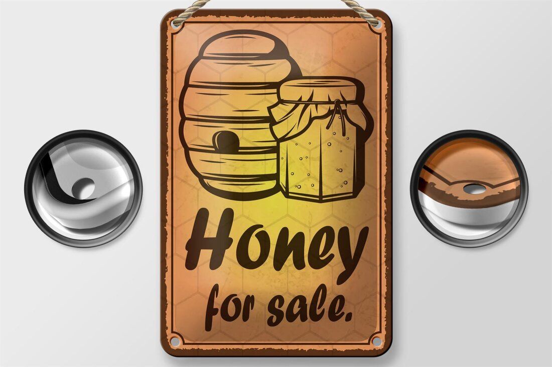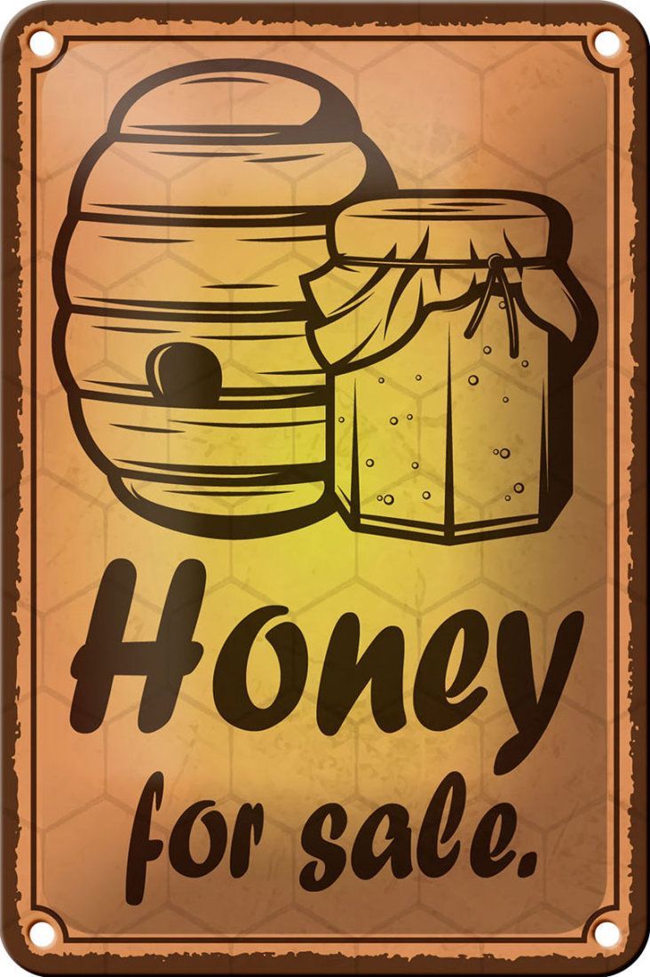 Blechschild "Honey for sale" - 12x18 cm gelb gewölbt Honig Imkerei