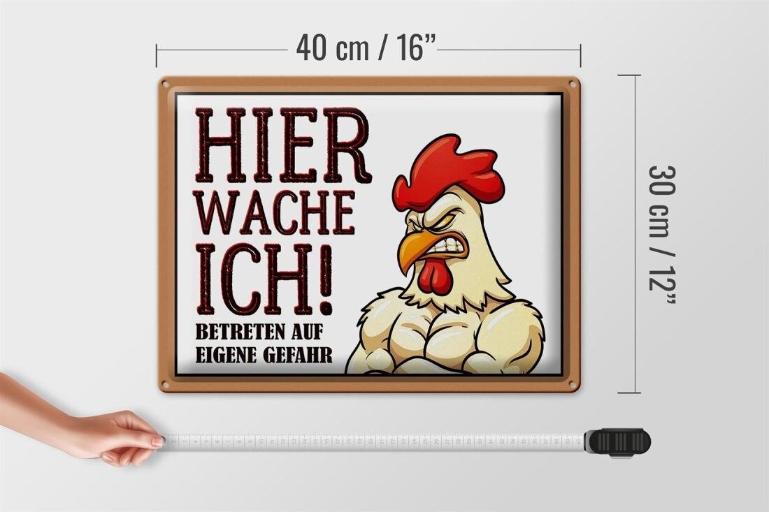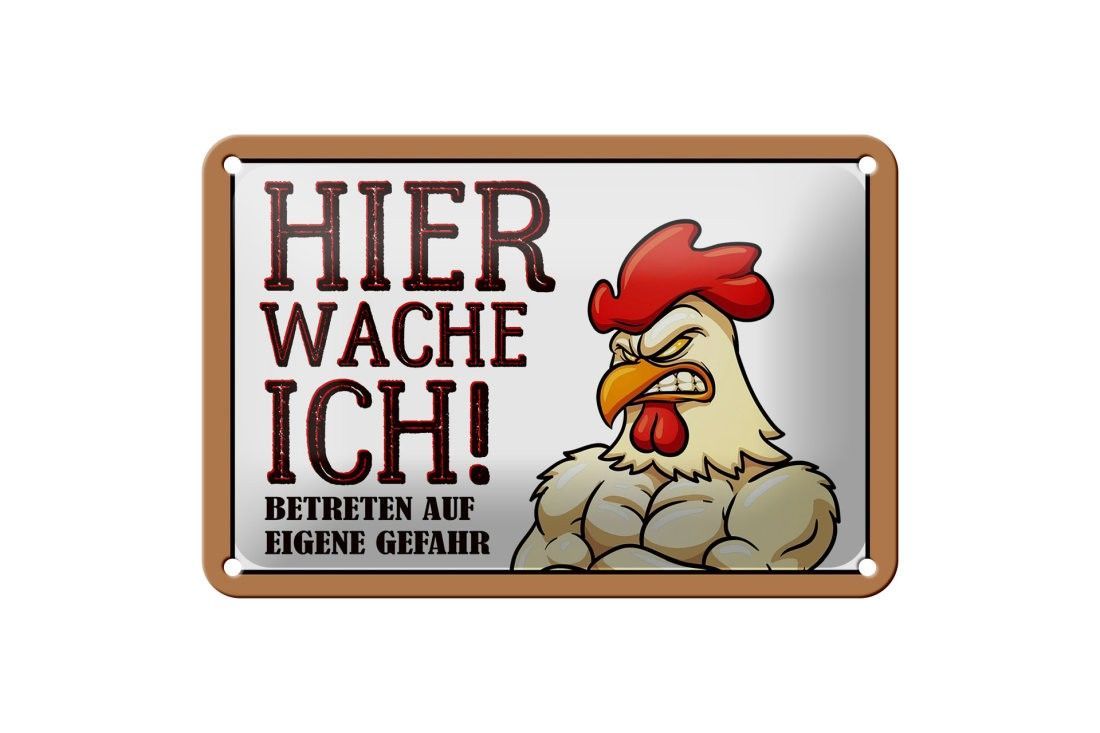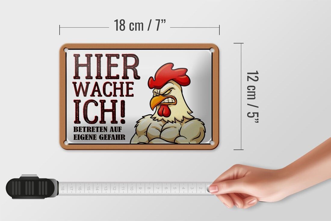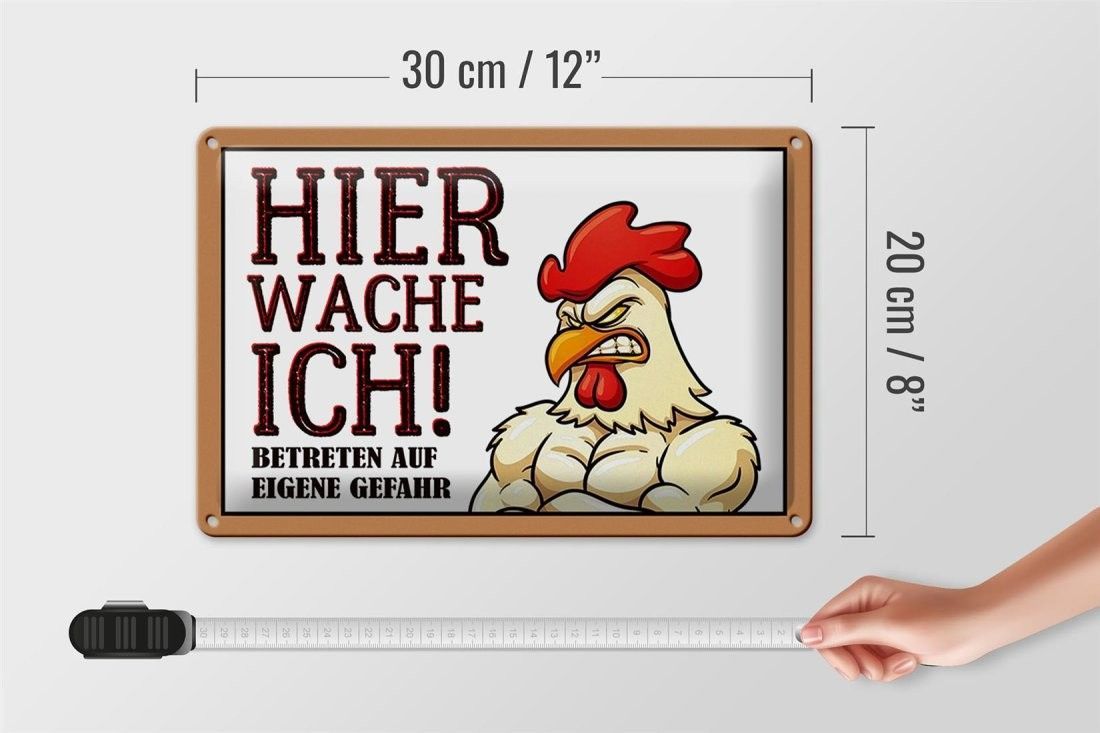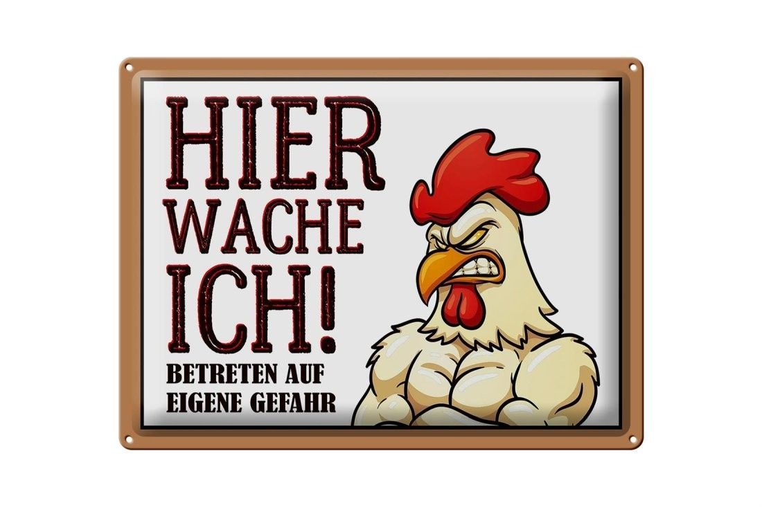 Blechschild Huhn, Hier wache ich, 3 verschied Größen, Blechschilder Spruch Hahn Tier