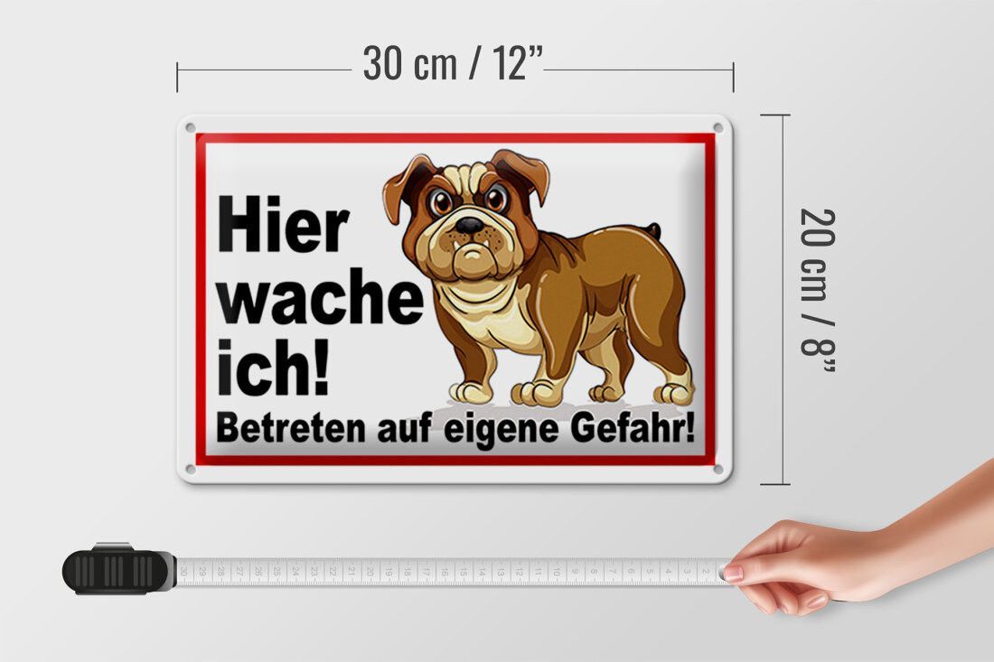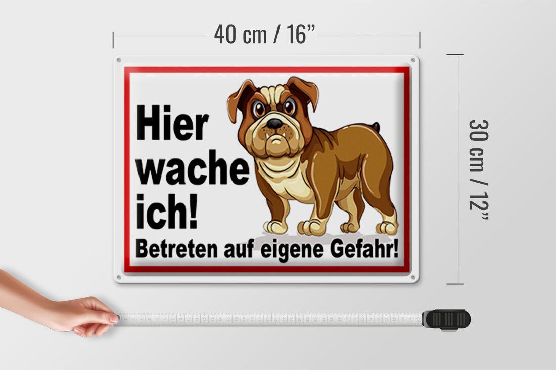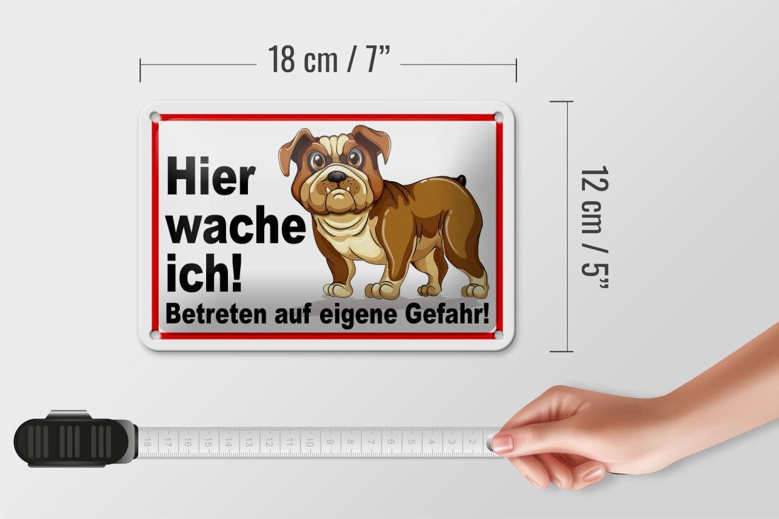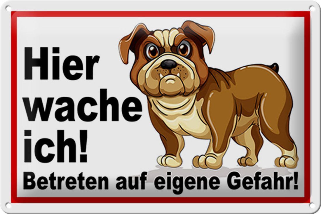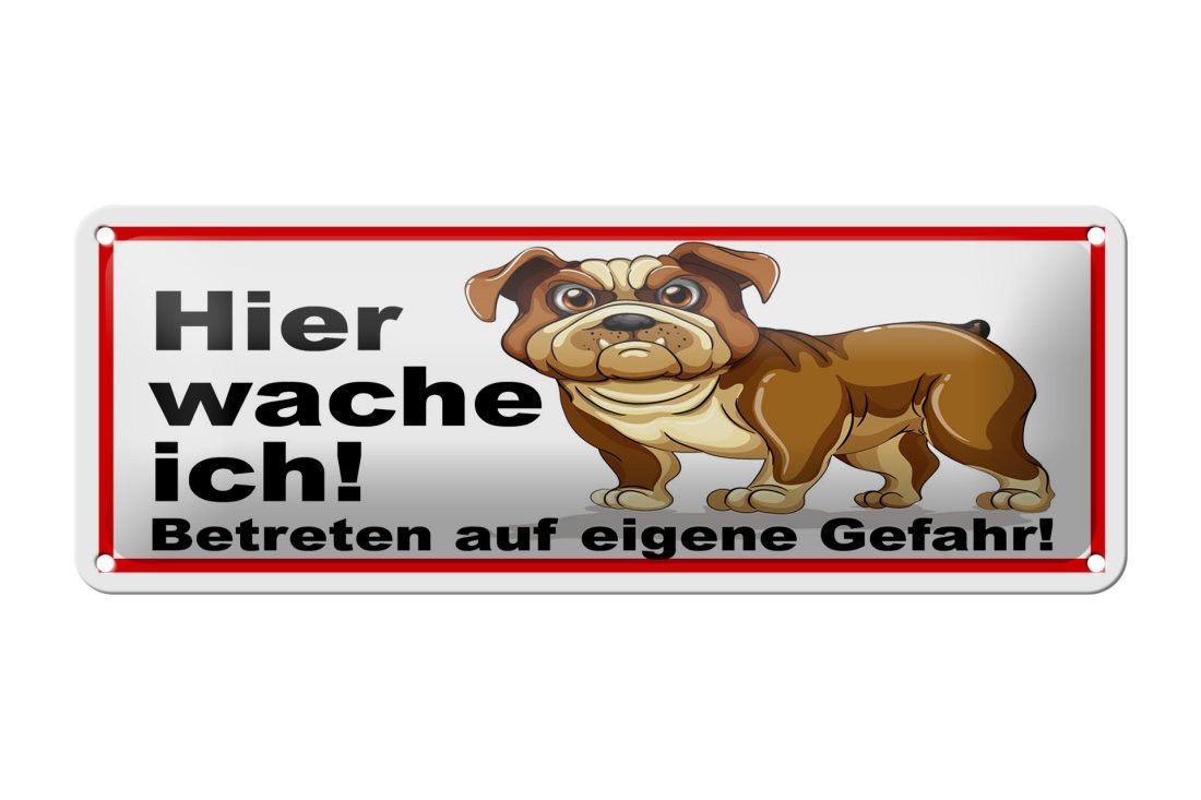 Blechschild Hund, Hier wache ich, 5 verschied Größen, Blechschilder Spruch Hunde Tier