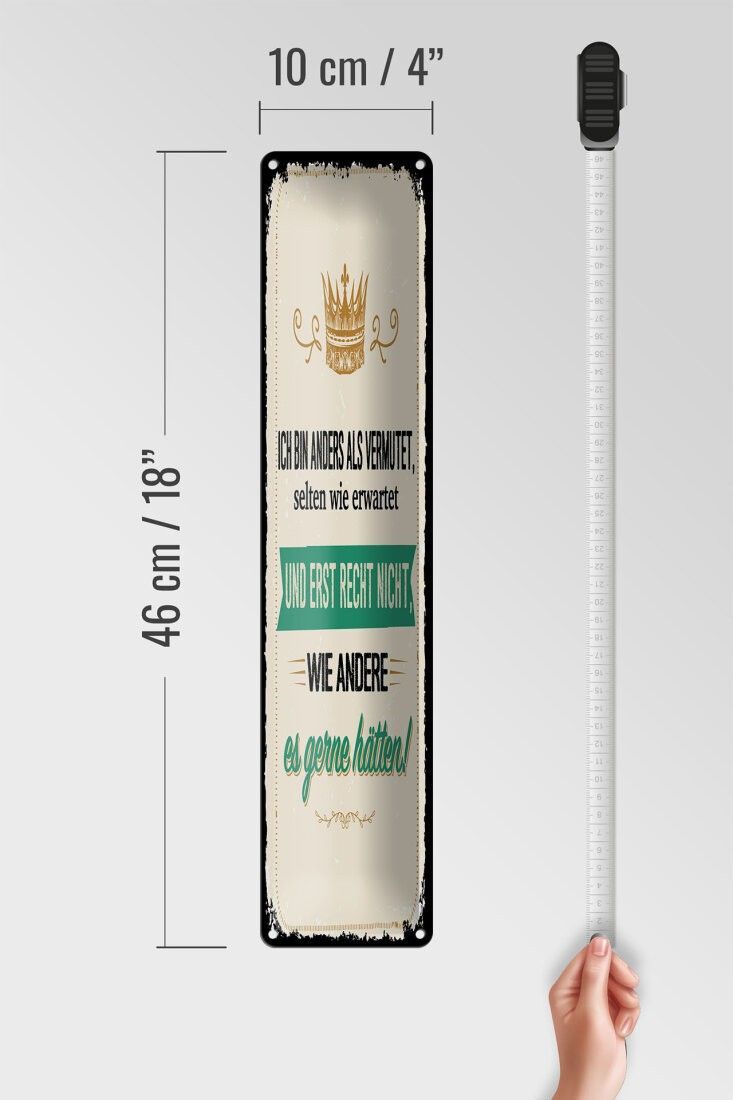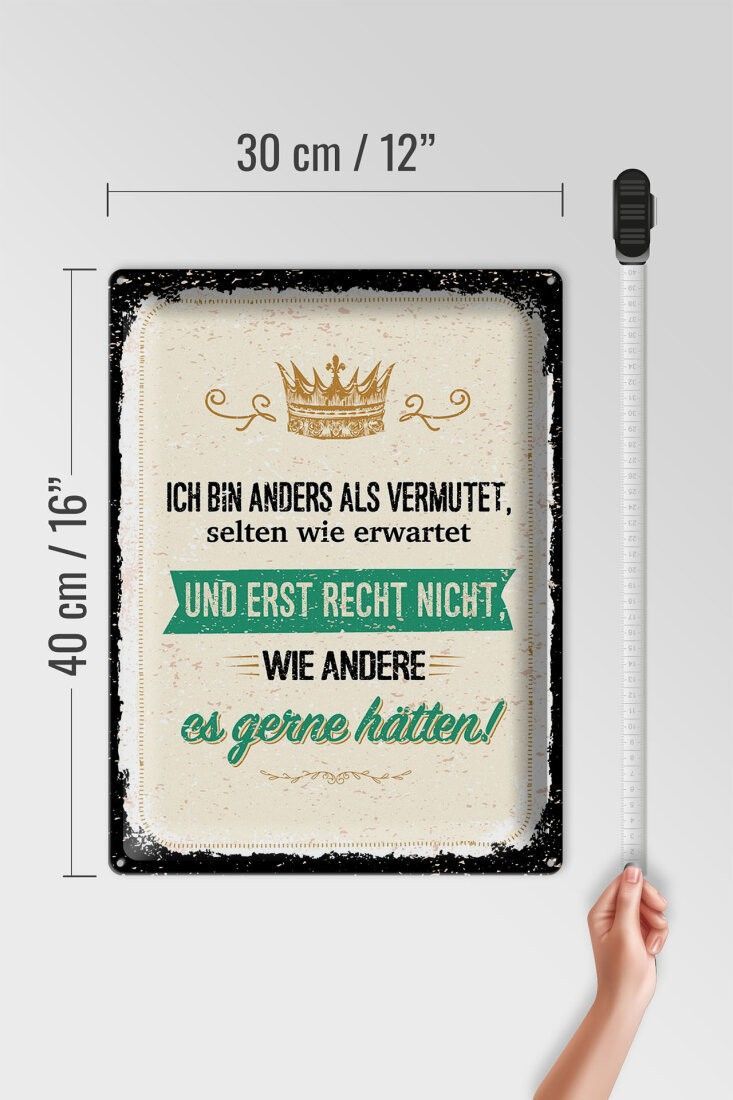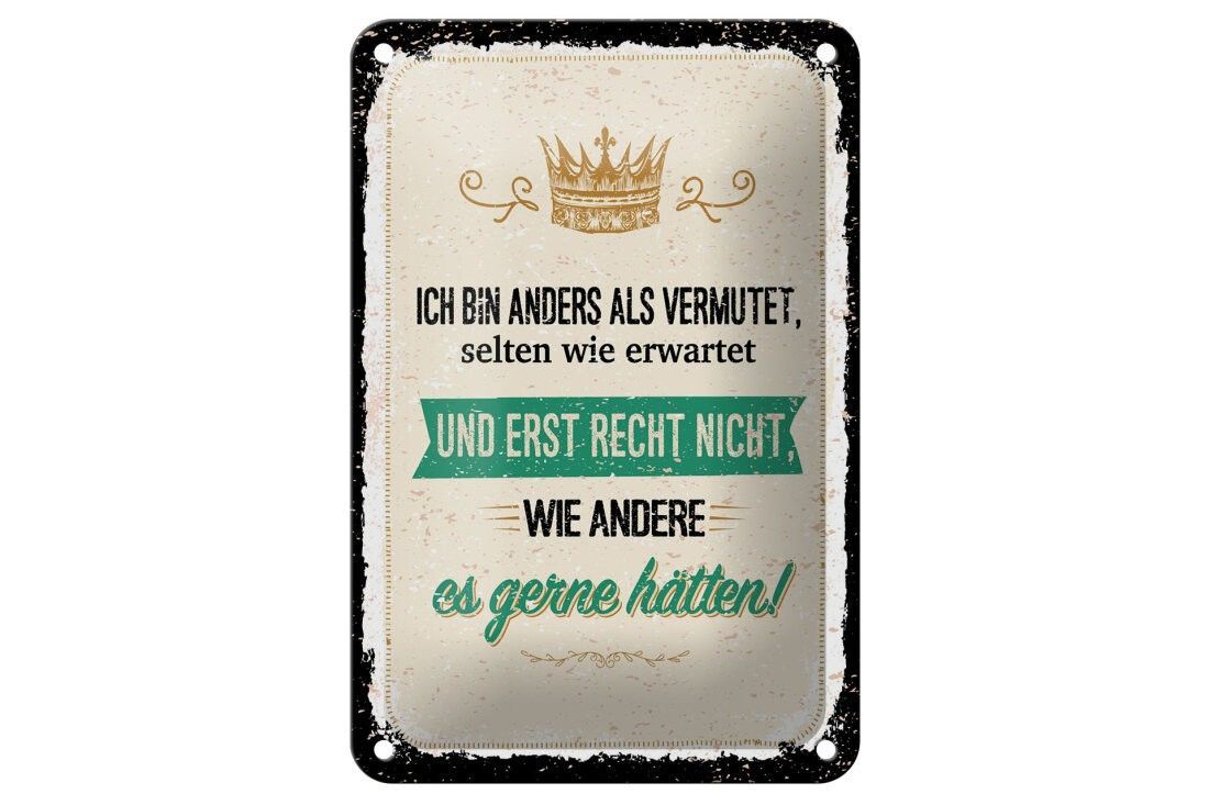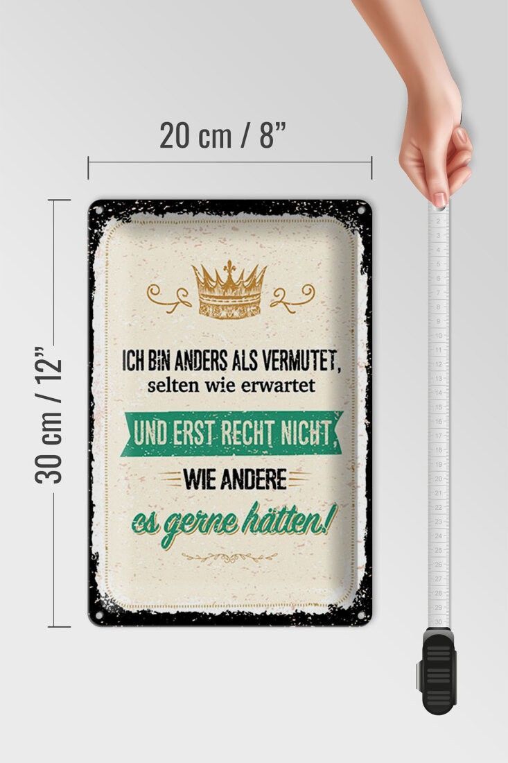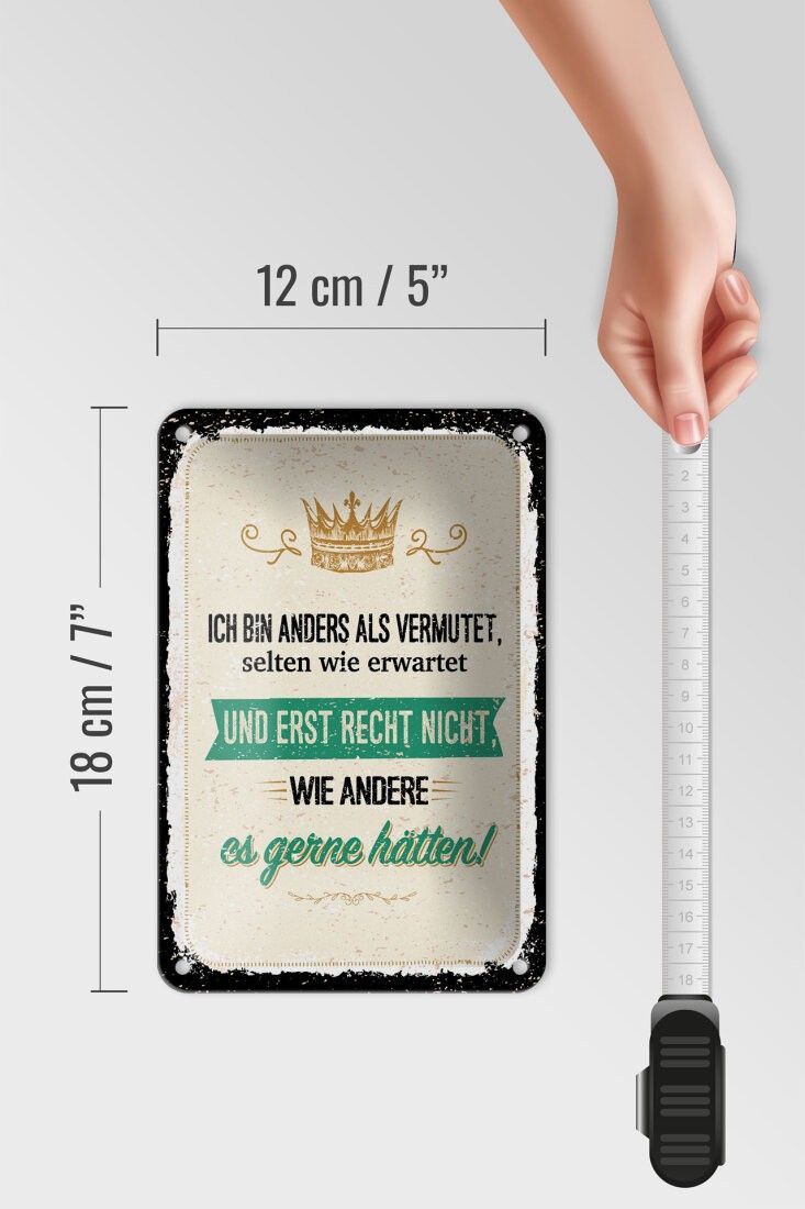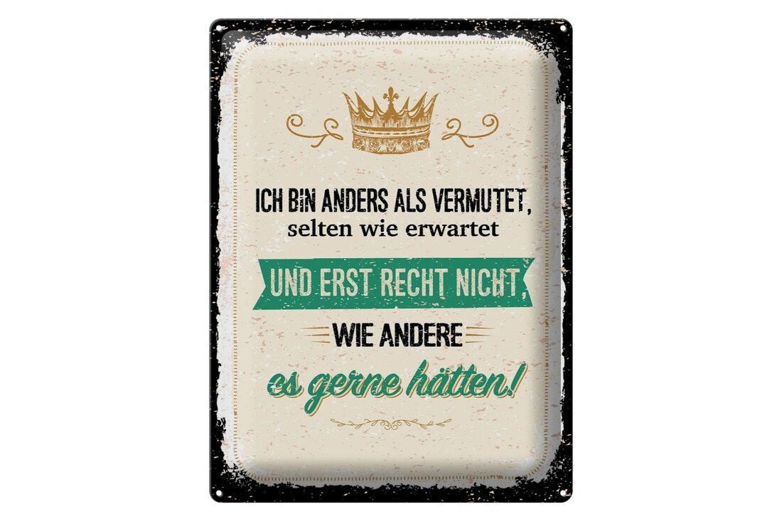 Blechschild Ich bin anders als vermutet, 4 verschied Größen, Spruch