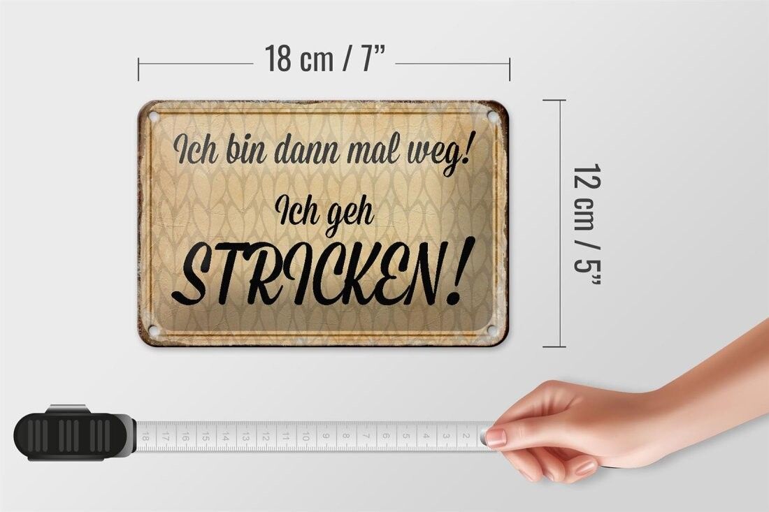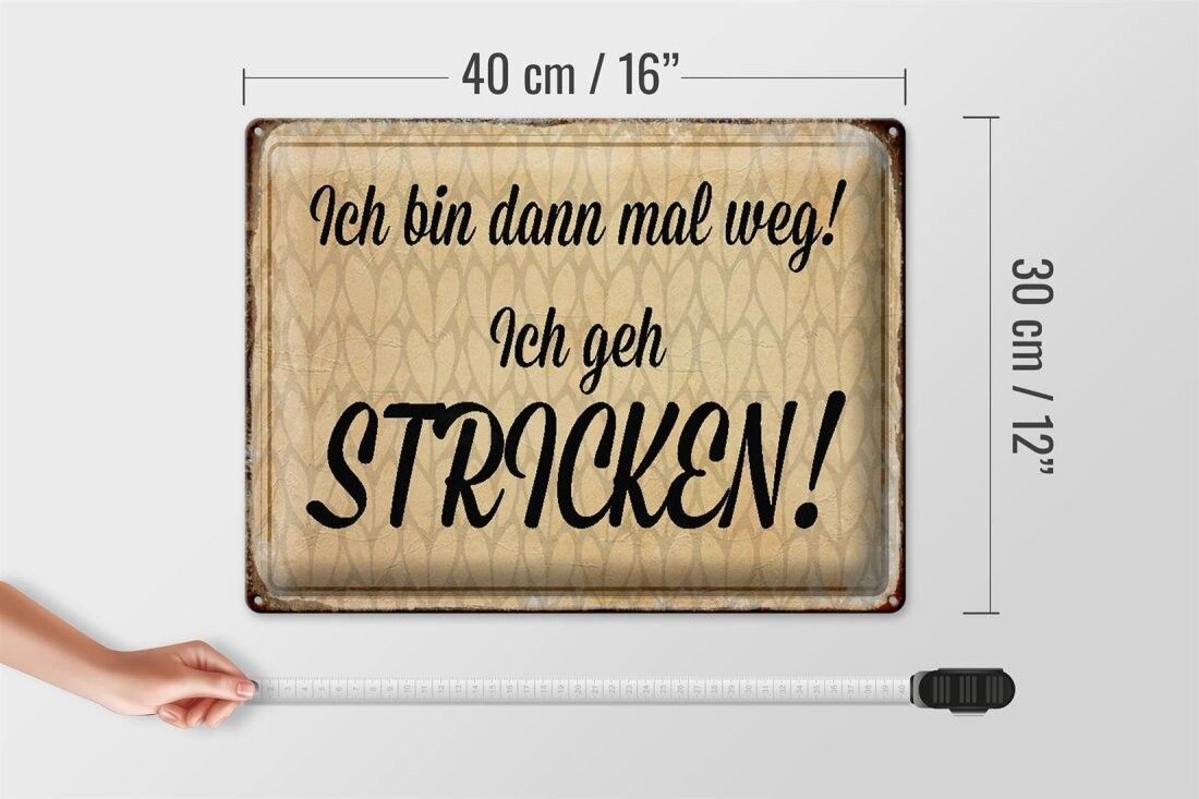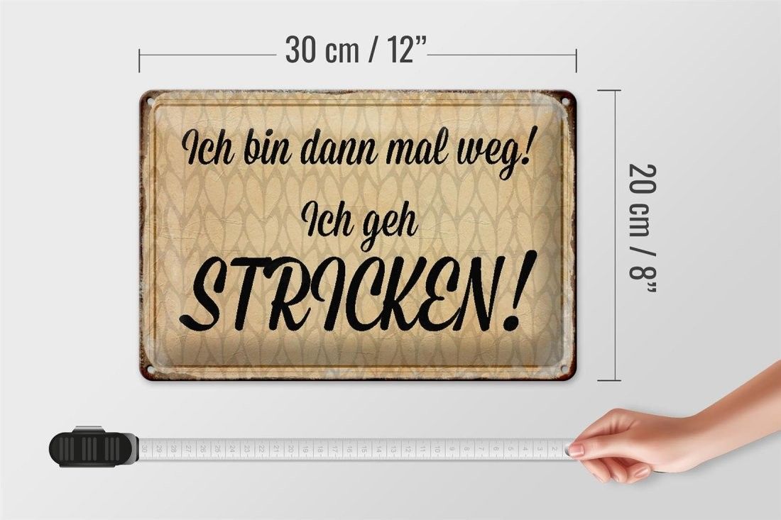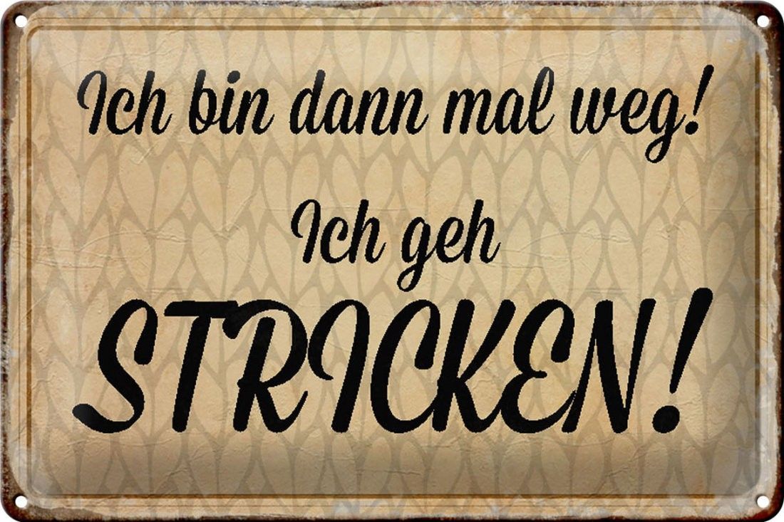 Blechschild ich bin dann weg geh stricken, 3 verschied Größen Blechschilder