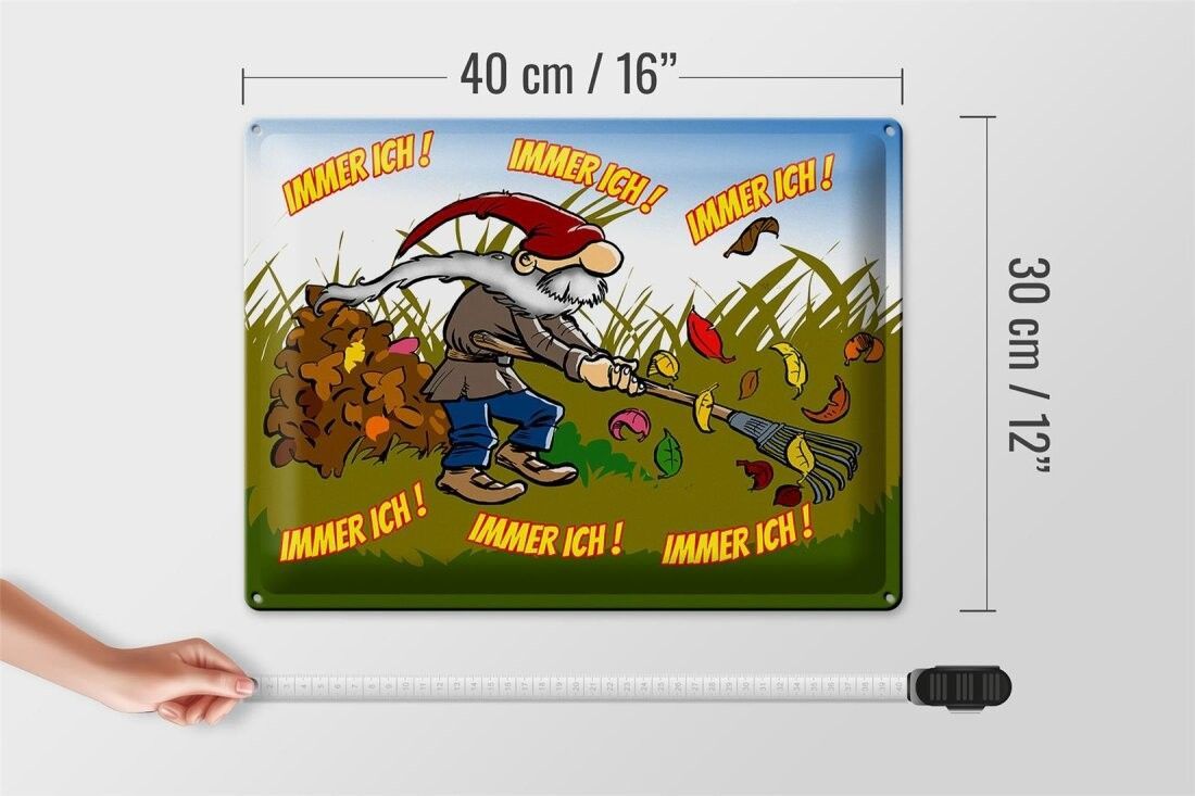 Blechschild immer ich Gnom im Garten, 3 verschied Größen, Spruch