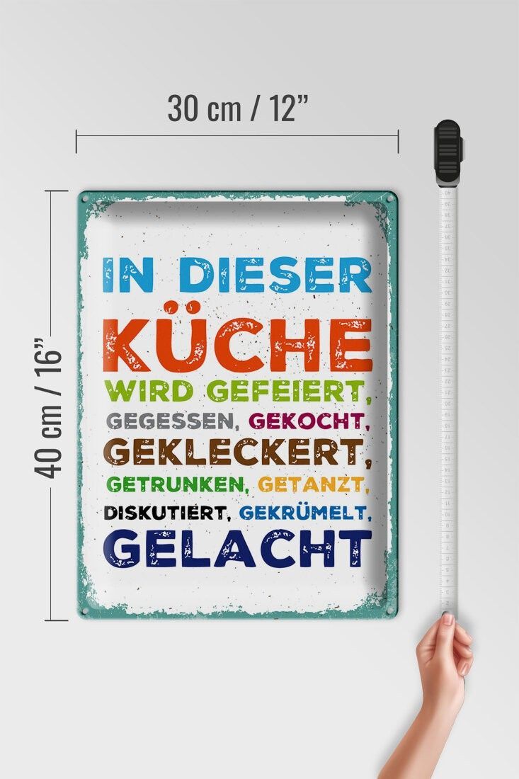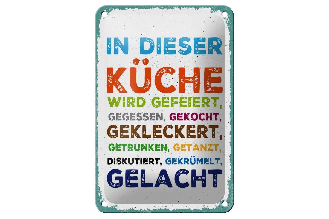Blechschild In dieser Küche wird gefeiert, gegessen, 4 verschied Größen Blechschilder